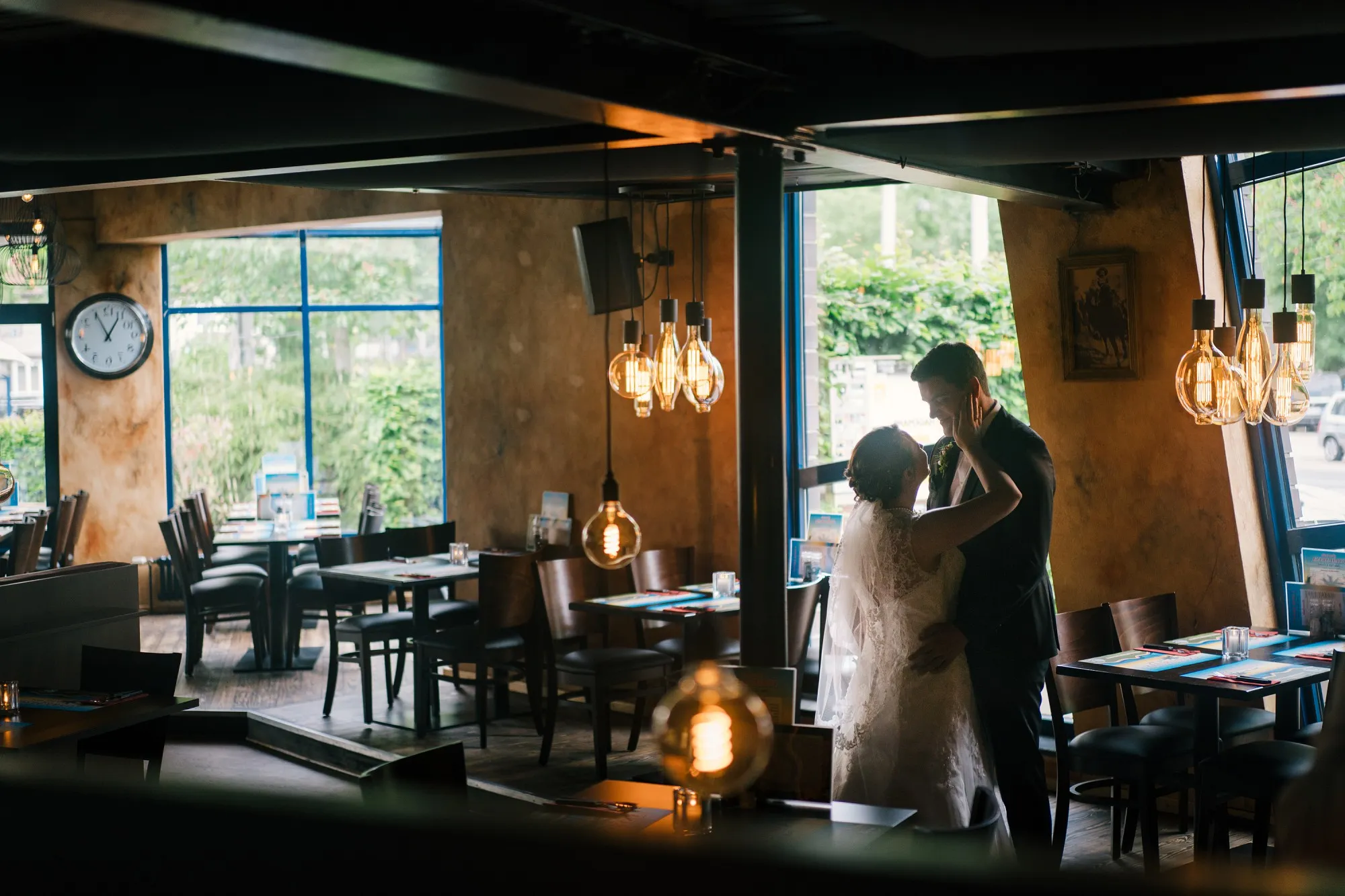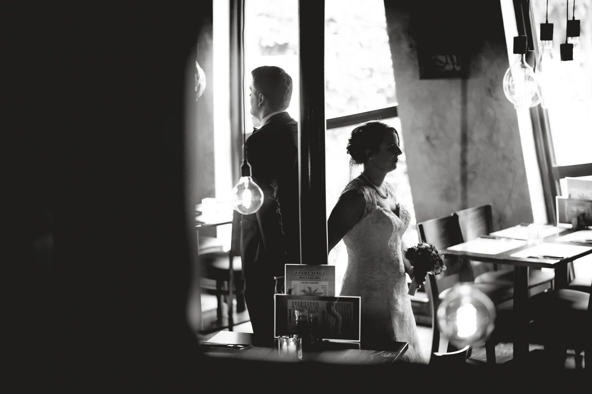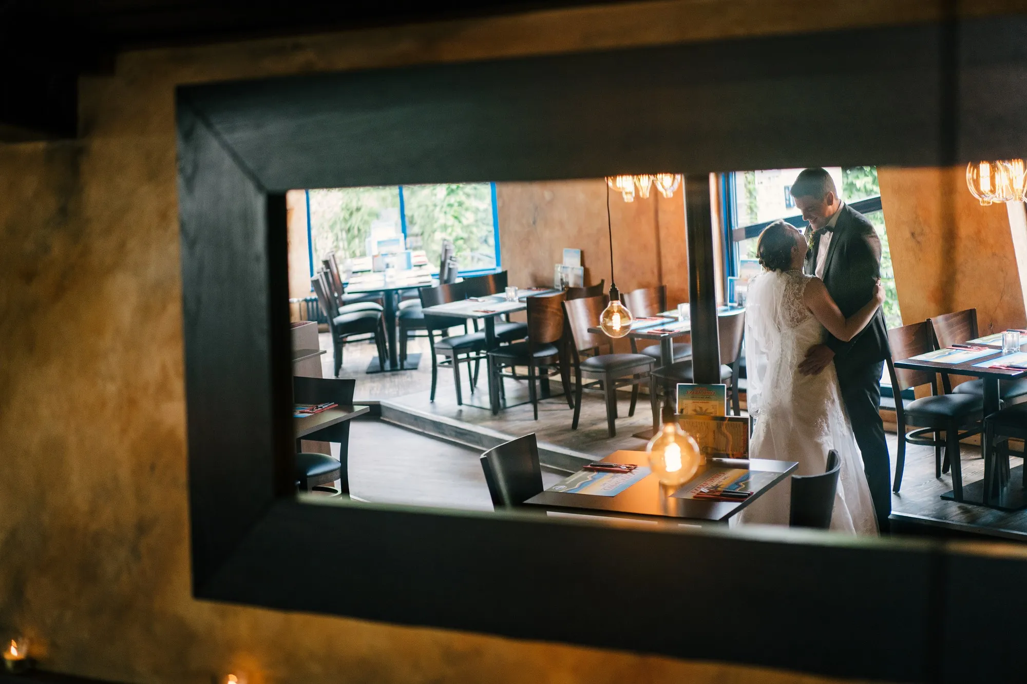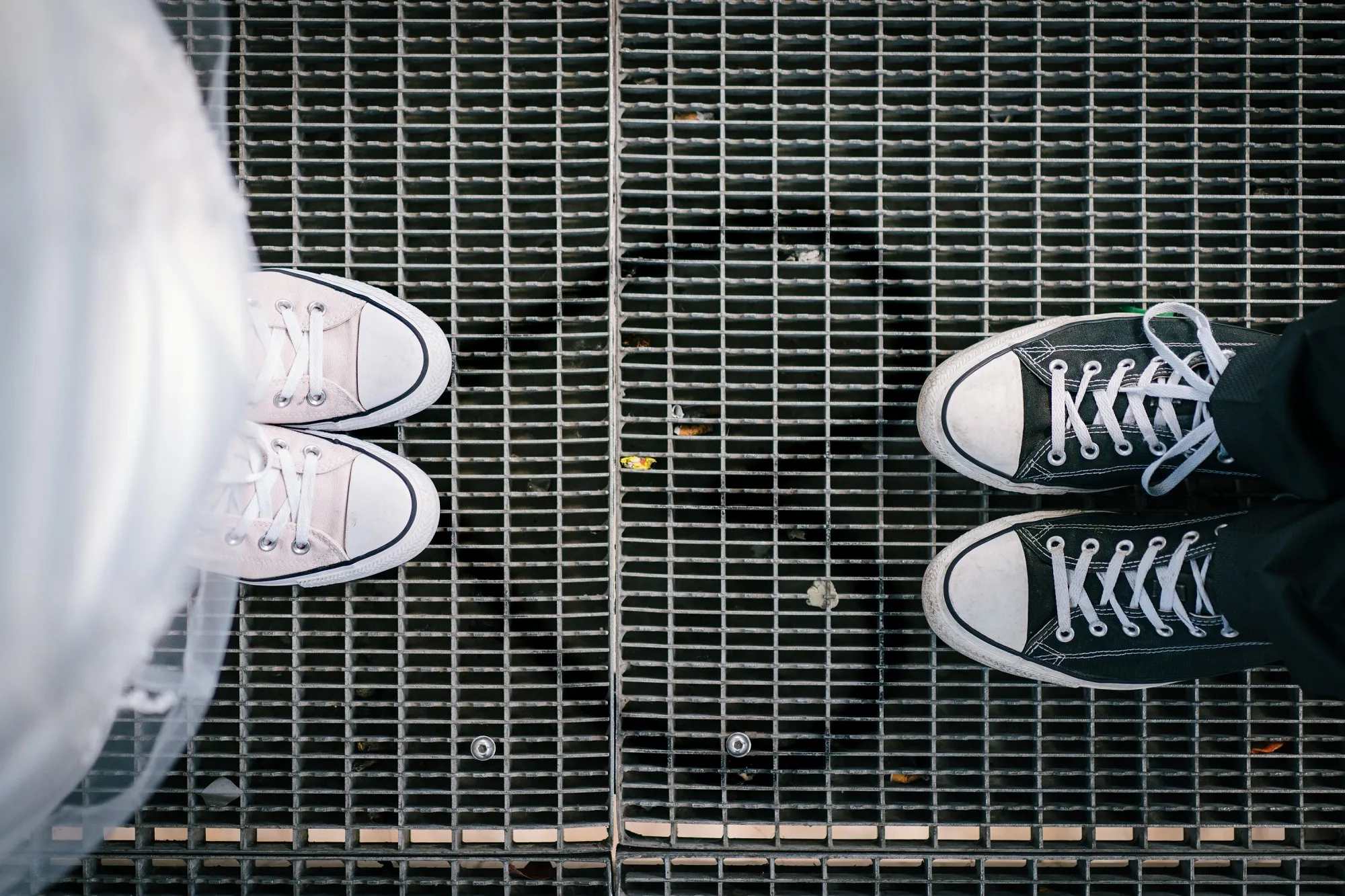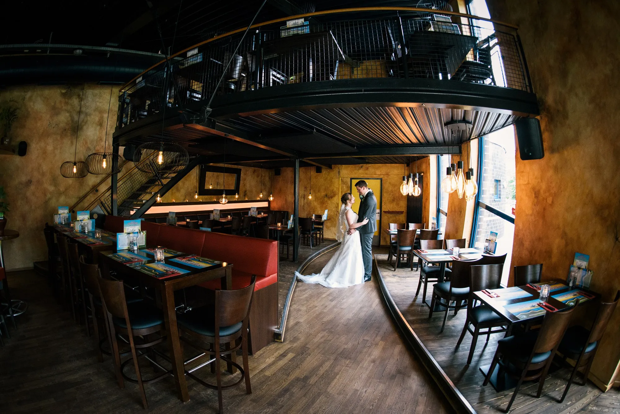 Mein Brautpaar ist damals nach der Schule immer zum „Logo“ Jugendtreff am Ahauser Bahnhof (heute: https://www.copacabana-logo.de/) gegangen um auf den Bus zu warten und dort haben sie sich kennen gelernt. An ihrem Hochzeitstag waren sie genau an diesem Ort zum First Look verabredet. Wunderbare, liebevolle Bilder in einer tollen Location. Sogar den Tisch von damals haben sie wiedergefunden und die runden Fenster sind fürs Logo sehr charakteristisch. Da der Bahnhof so nahe ist, haben wir ihn auch in die Bilder eingebaut. Chucks und diese Metalltreppe mit gelben Streifen. Cool. Und immer wieder haben die Beiden mich als Hochzeitsfotografen vergessen und sich als Paar, wunderbar liebevoll miteinander gezeigt.