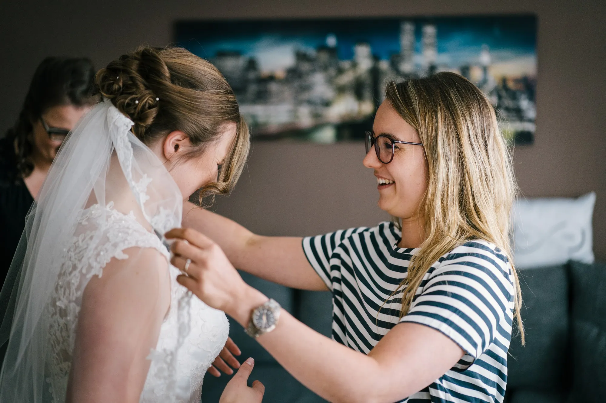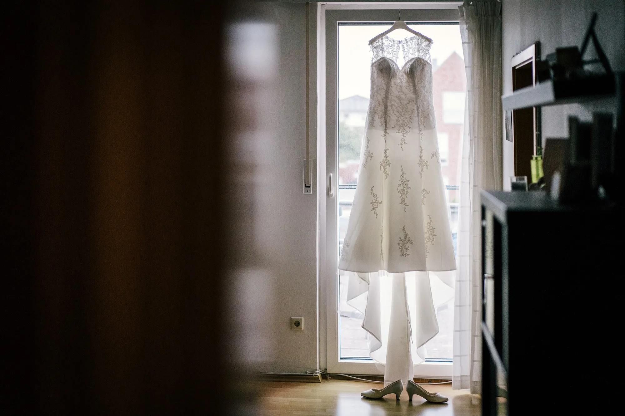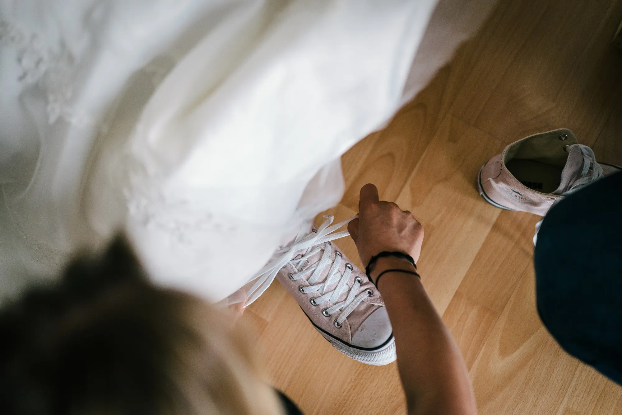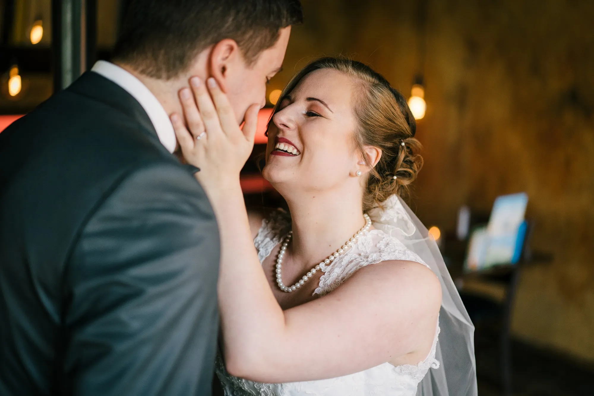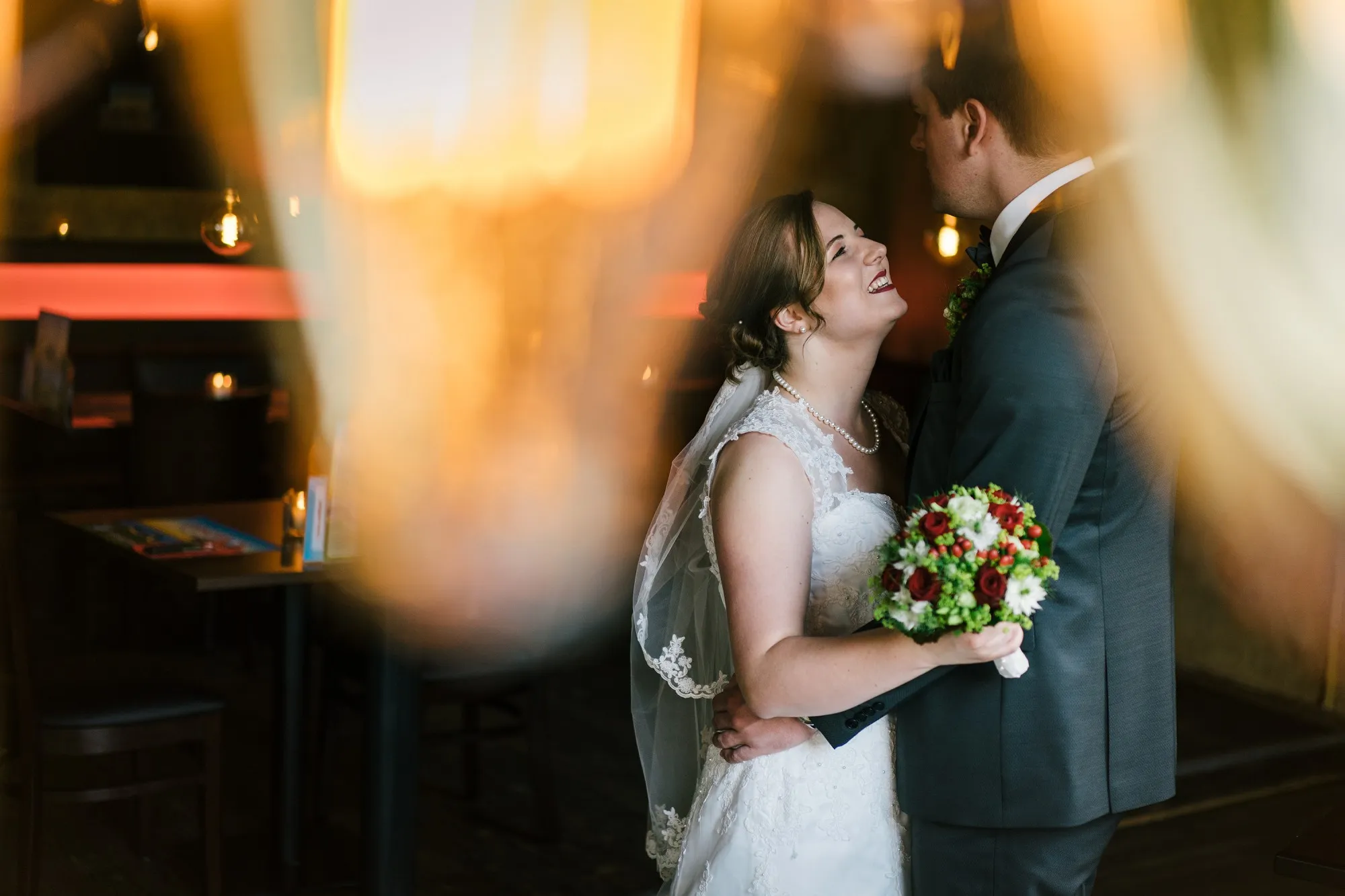 Mein Brautpaar ist damals nach der Schule immer zum „Logo“ Jugendtreff am Ahauser Bahnhof (heute: https://www.copacabana-logo.de/) gegangen um auf den Bus zu warten und dort haben sie sich kennen gelernt. An ihrem Hochzeitstag waren sie genau an diesem Ort zum First Look verabredet. Wunderbare, liebevolle Bilder in einer tollen Location. Sogar den Tisch von damals haben sie wiedergefunden und die runden Fenster sind fürs Logo sehr charakteristisch. Da der Bahnhof so nahe ist, haben wir ihn auch in die Bilder eingebaut. Chucks und diese Metalltreppe mit gelben Streifen. Cool. Und immer wieder haben die Beiden mich als Hochzeitsfotografen vergessen und sich als Paar, wunderbar liebevoll miteinander gezeigt.