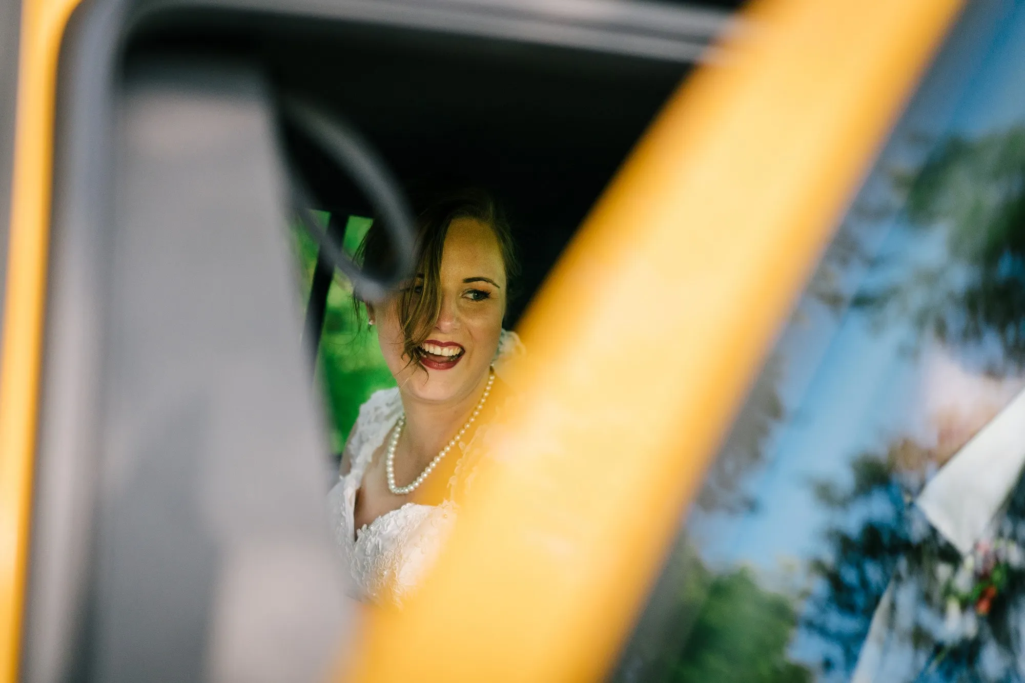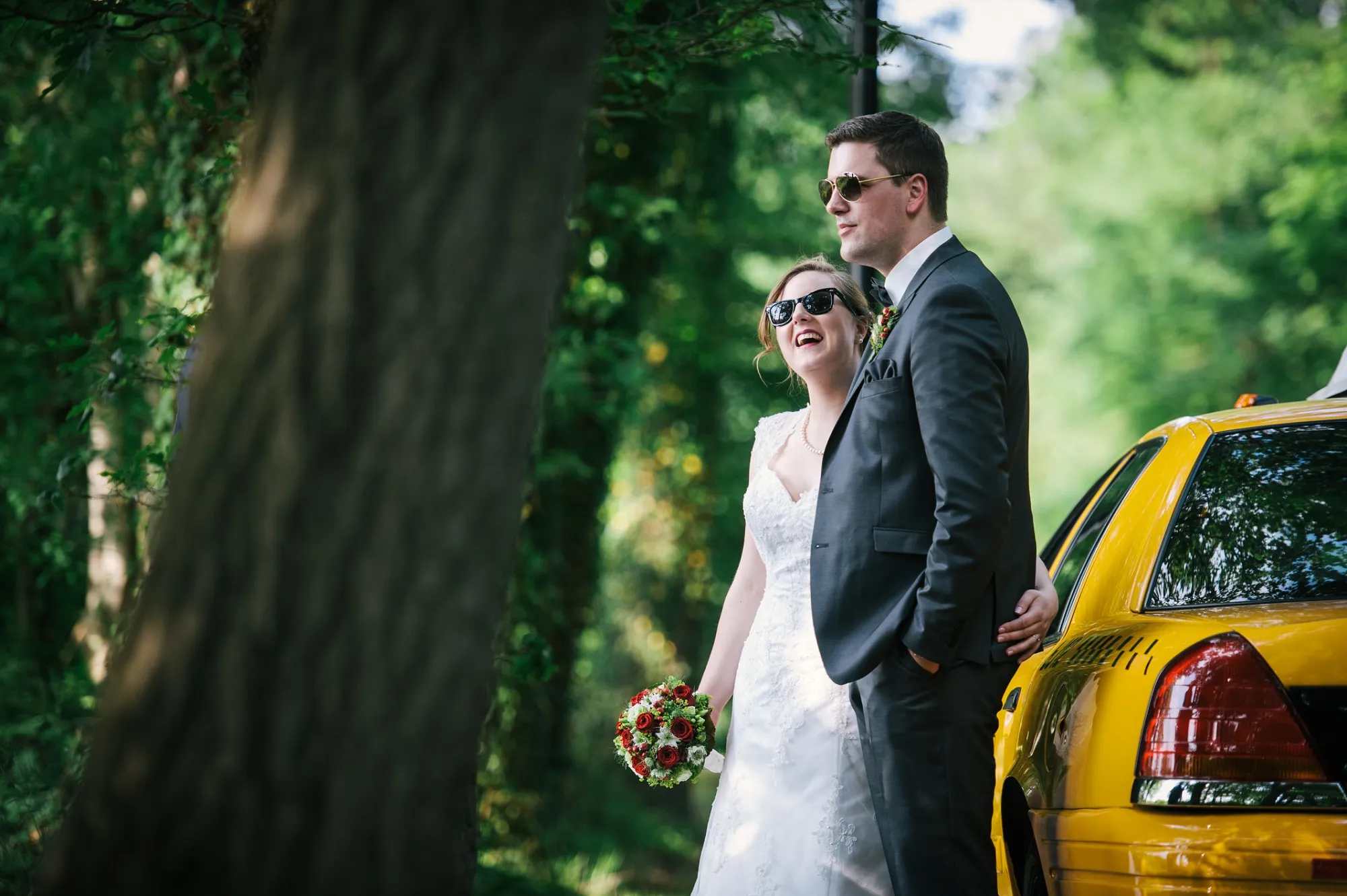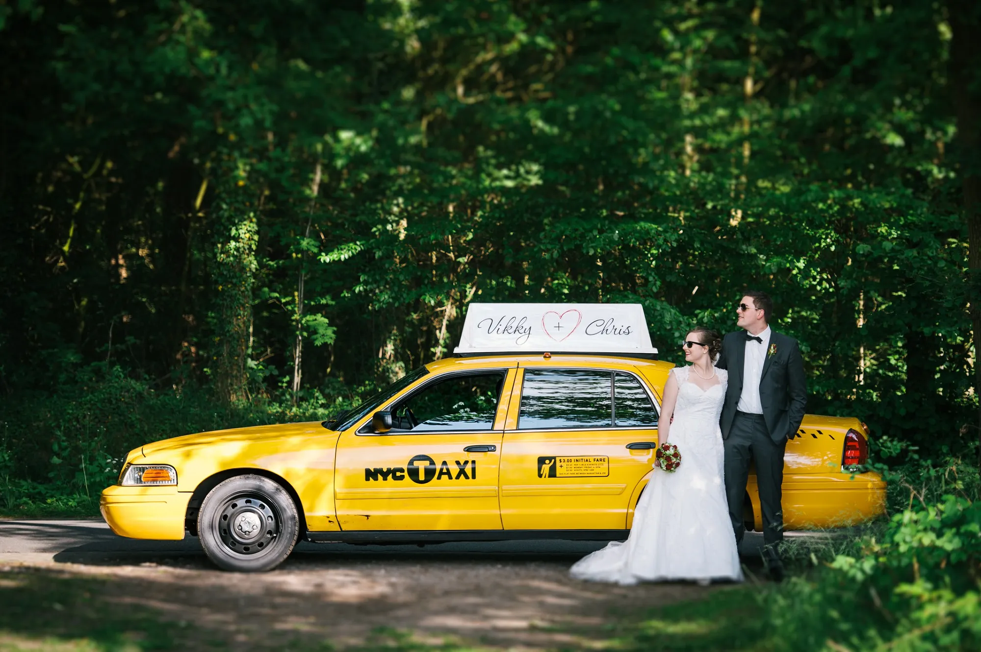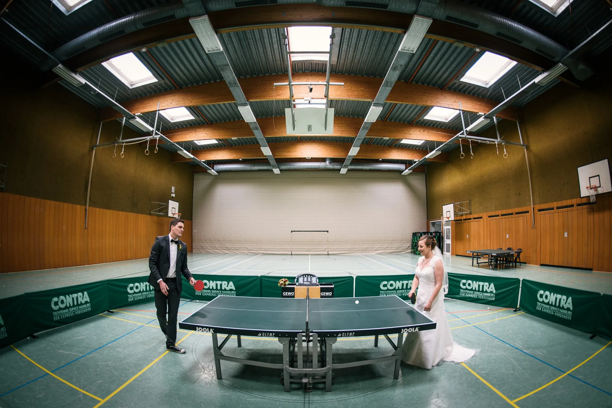Sein Trauzeuge hatte in der Sporthalle eine Tischtennisplatte aufstellen lassen um ihm einen Wunsch zu erfüllen. Eine kleine Partie Tischtennis mit seiner Braut! (Er spielt professionell und sie schaut als Fan oft dabei zu.) Cool! Und dann dieses Brautauto, ein echtes New Yorker Taxi!
