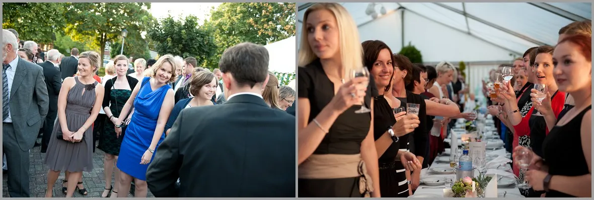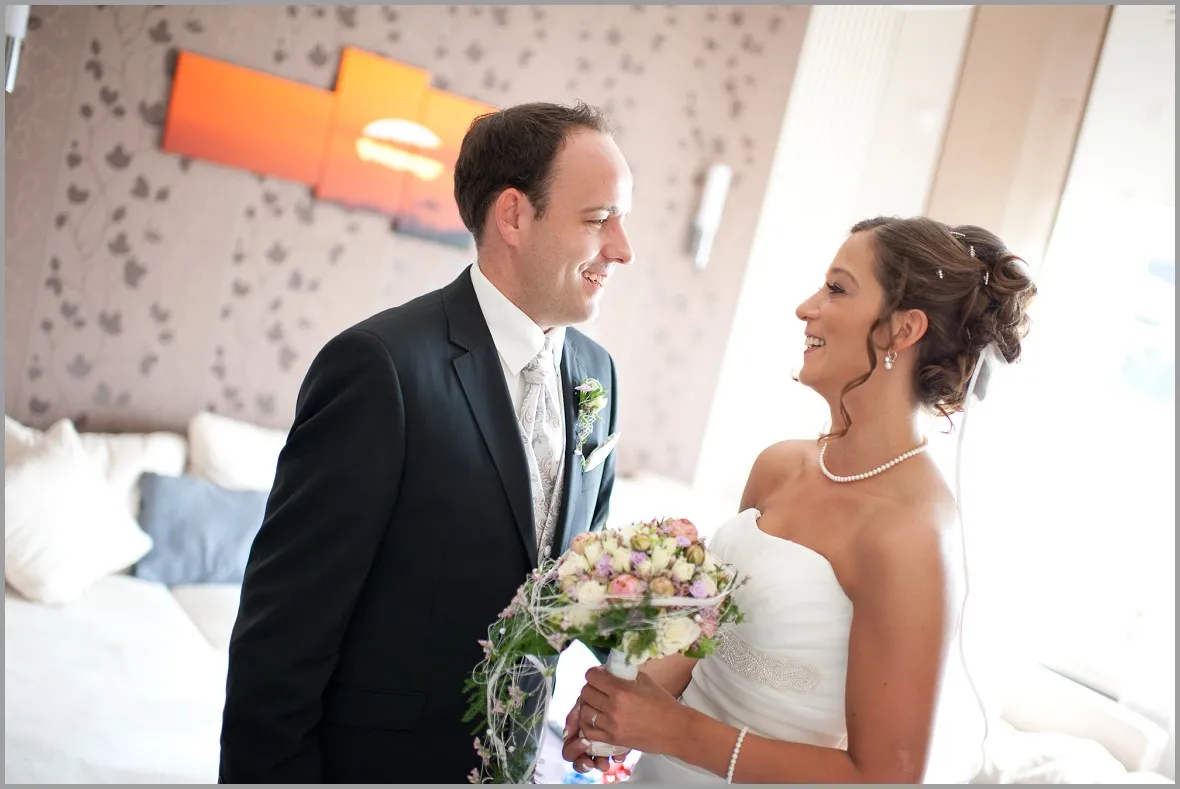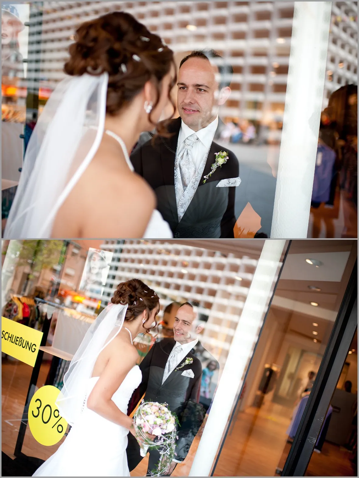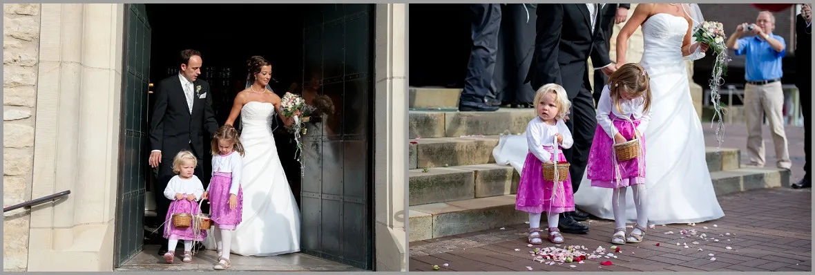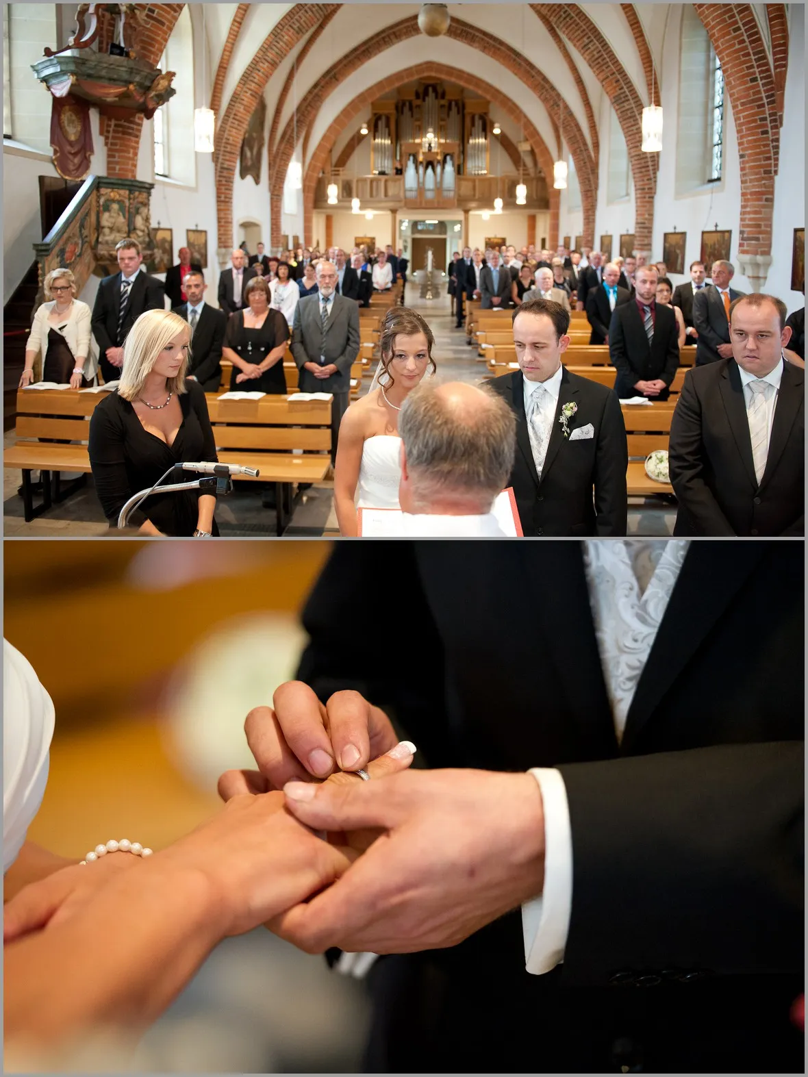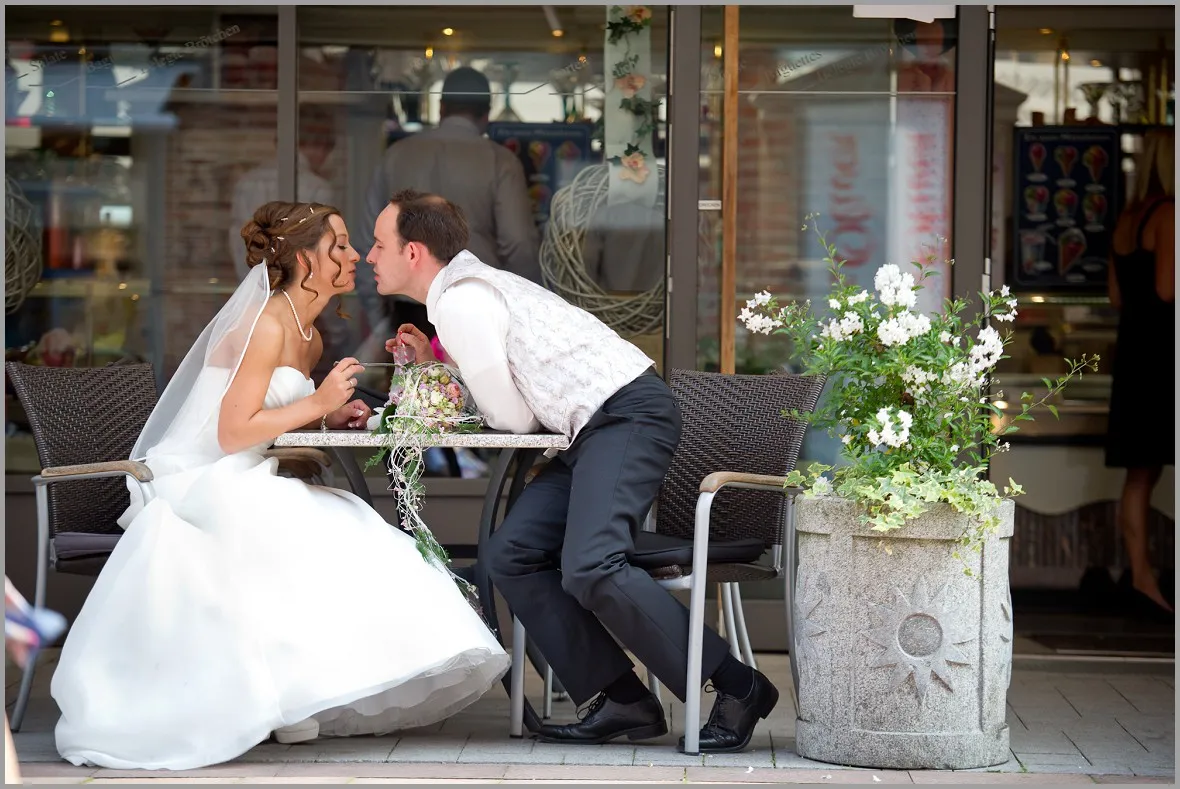 Street-Hochzeitsfotografie! Ja, das beschreibt es am Besten, was mein Brautpaar und ich in Ahaus gemacht haben. Ja genau. Wir waren in der Ahauser Innenstadt unterwegs um Hochzeitsbilder zu machen. Mitten in diesem hektischen Alltag, mein Brautpaar. Irgendwie ein schöner Kontrast. Wenn ich daran denke, wie die Passanten auf uns reagierten, bekomme ich ein Lachen auf mein Gesicht gezaubert. Und dann kam das „Ganz Große KINO“ nur für uns! Geil. Das war noch nicht alles… Einmal die „Ganze Welt“ fotografieren, in einem einzigen Bild, das hatte ich schon immer mal vor. Jetzt hatte ich die Gelegenheit dazu! 40m Feuerwehrleiter! Und ich stellte fest, Höhenangst? Was ist das? Hab ich nicht. Auf dem Fest sah ich gute Bekannte von andern Hochzeiten wieder. Fühlte sich an wie ein tolles Klassentreffen. O-Ton vom Bräutigam über mich: „Guck mal, der liegt ja schon wieder auf dem Boden“ Ja, so muss das 😉 Yep. Mein Brautpaar, ich sage: Danke, für diesen schönen Tag!