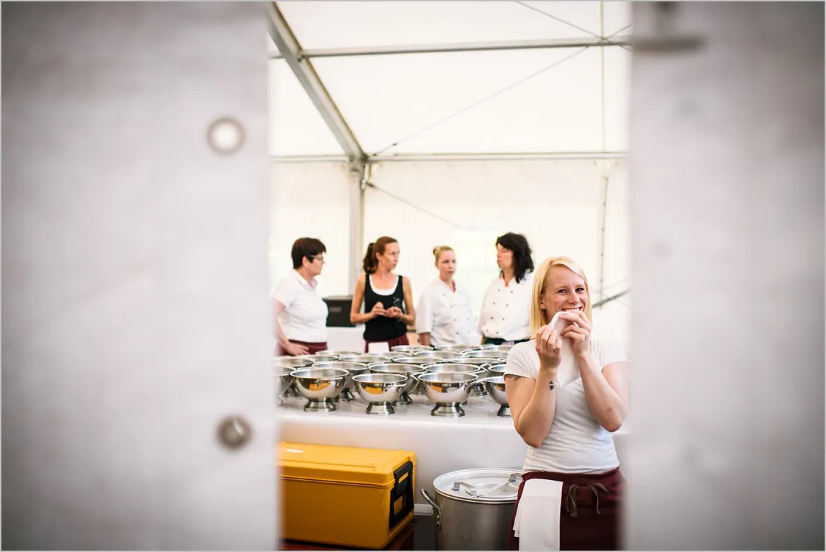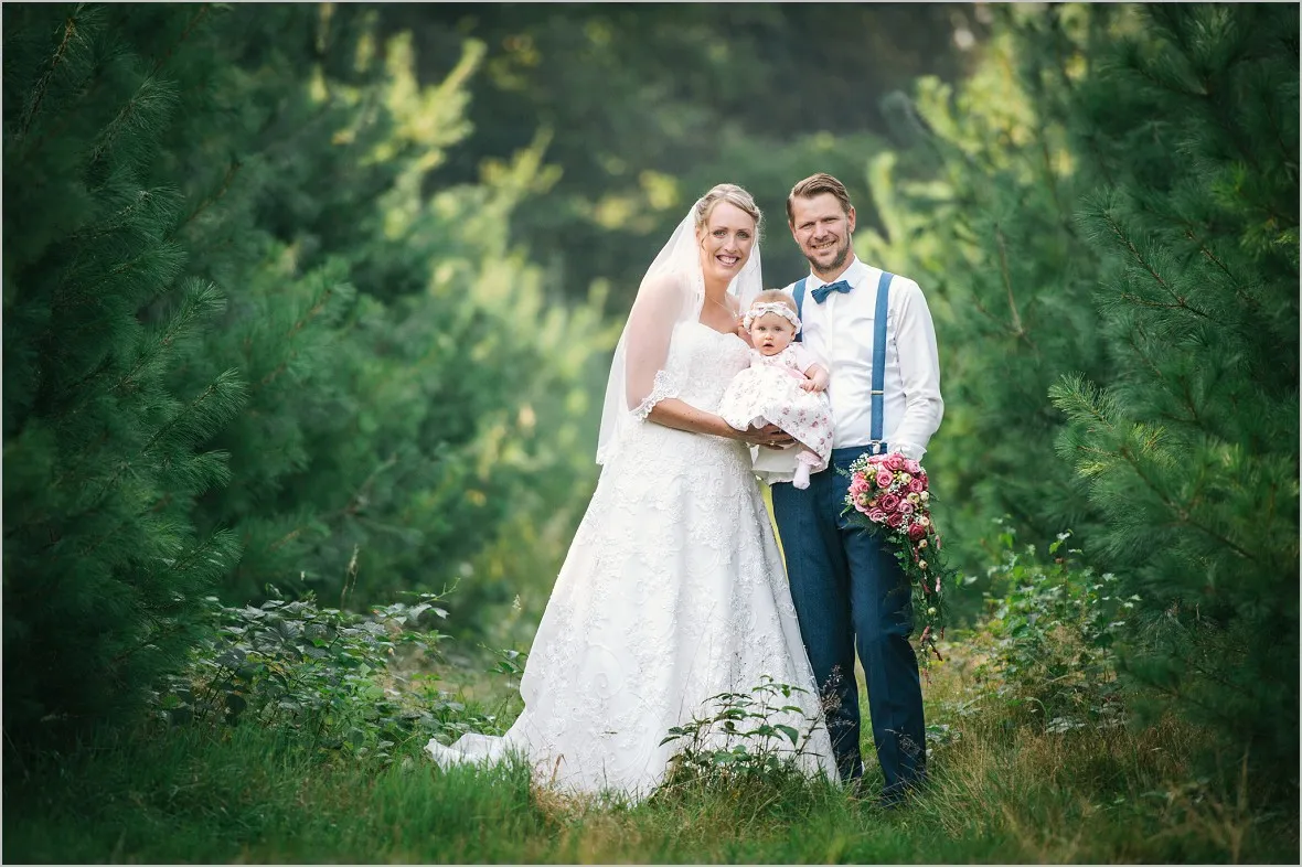 Mein Brautpaar sah sich an diesen Tag das erste Mal an einer kleinen Kapelle in einem kleinen Wald und ich machte wundervolle Bilder. Kurz vor ihrem Mittagsschläfchen verzauberte die kleine Tochter mit ihrem Lachen ihre Eltern. Herrlich. Der Gedanke an dem Lied „Wo ich auch steh“, das nach der Trauung in der St. Andreas Kirche gesungen wurde, erzeugt bei mir immer noch ein großes Gefühl von Glück. Gefeiert wurde natürlich im Zelt! Echt beeindruckende Zeltküche mit vorzüglichem Menü! Und die Thekenmachaft wechselte erst in den Morgenstunden die Seiten 😉 Liebes Brautpaar, Ich sage danke!