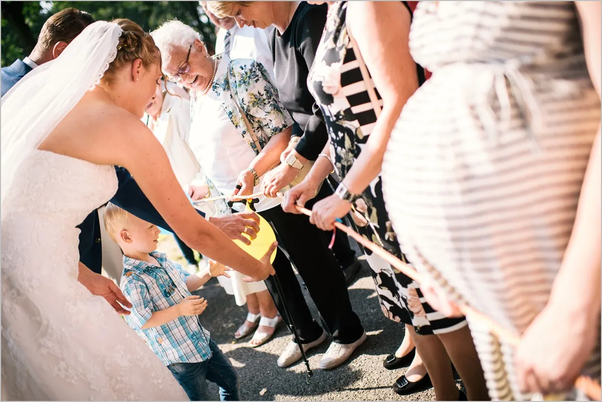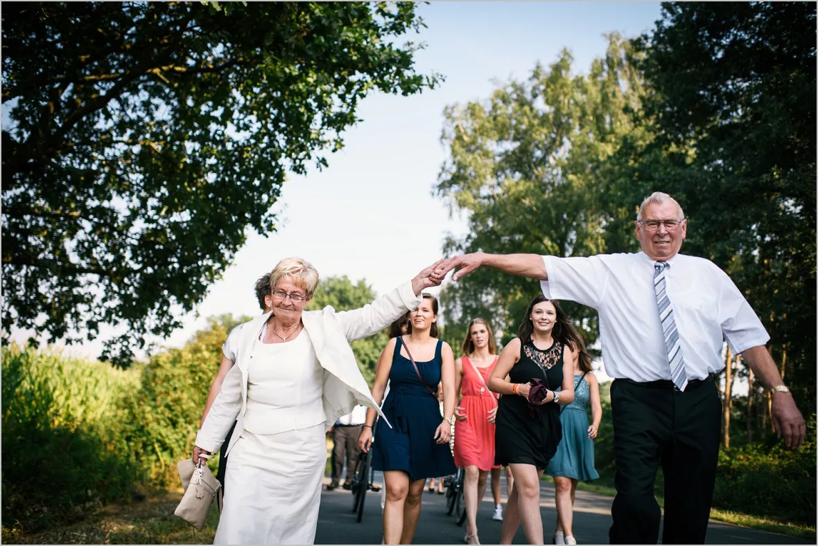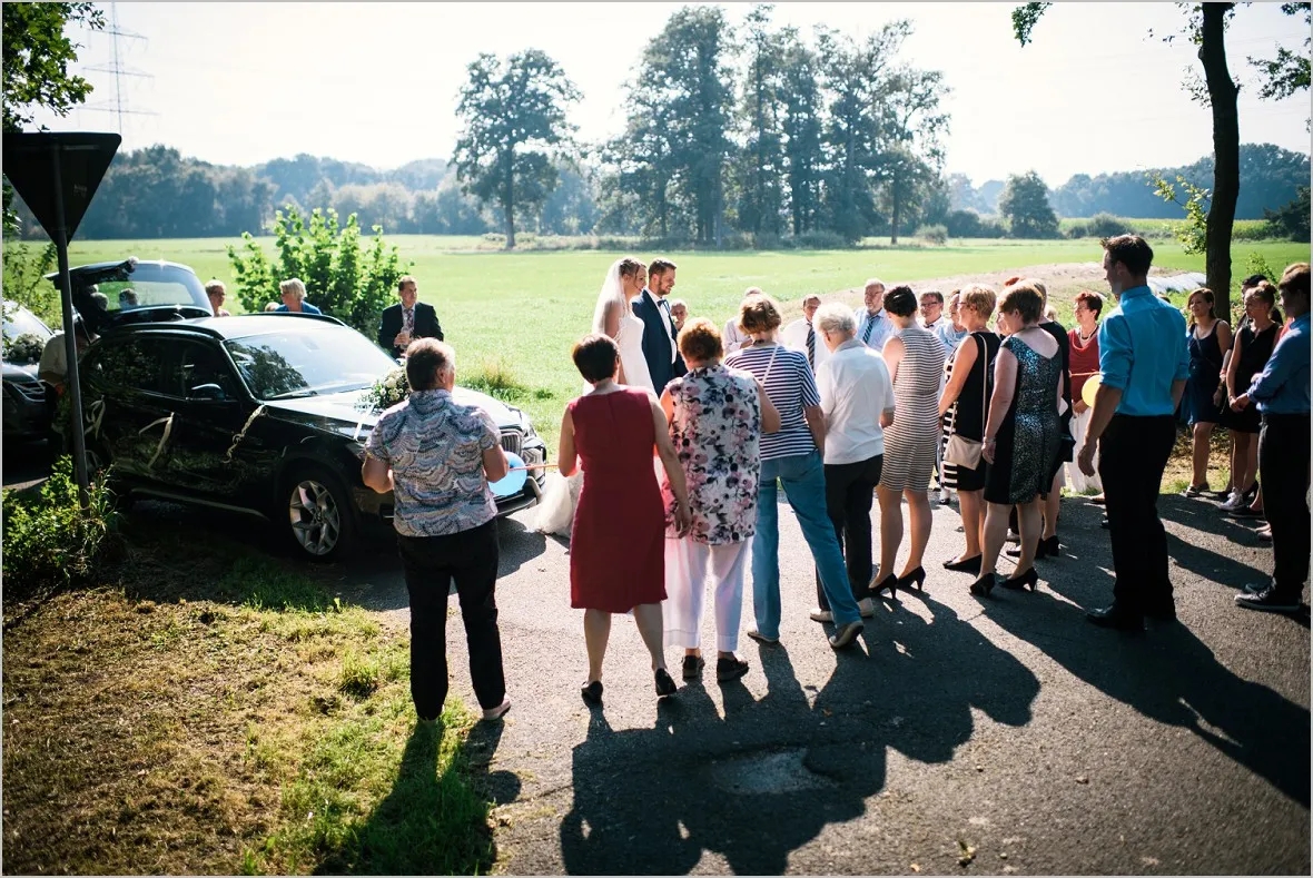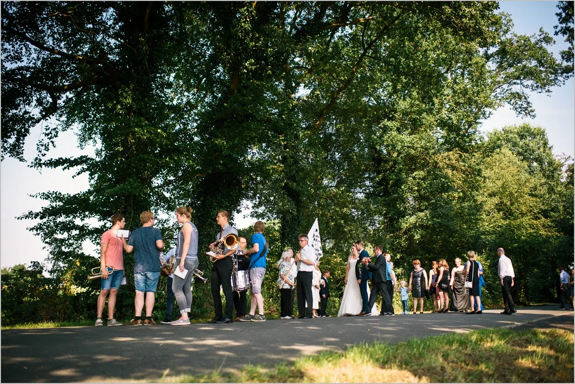 Als Hochzeitsfotograf bei einer traditionsreichen, münsterländischen Hochzeit dabei zu sein, ist echt was Großartiges. Da passiert so viel. Bogen/Kränzen, Schießen der Nachbarn und Seilchenspannen mit anschließendem Umzug mit Blaskapelle, Brautpaar, Familie und Nachbarn zum Festzelt. Ja, Festzelt, so wie man es sonst nur von Schützenfesten kennt.