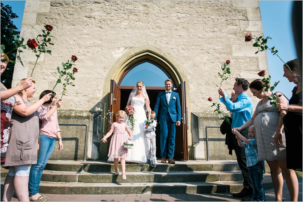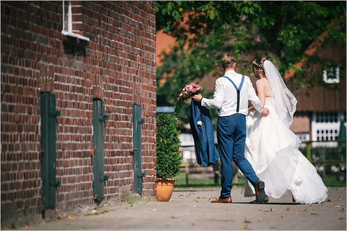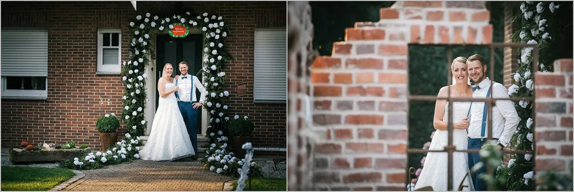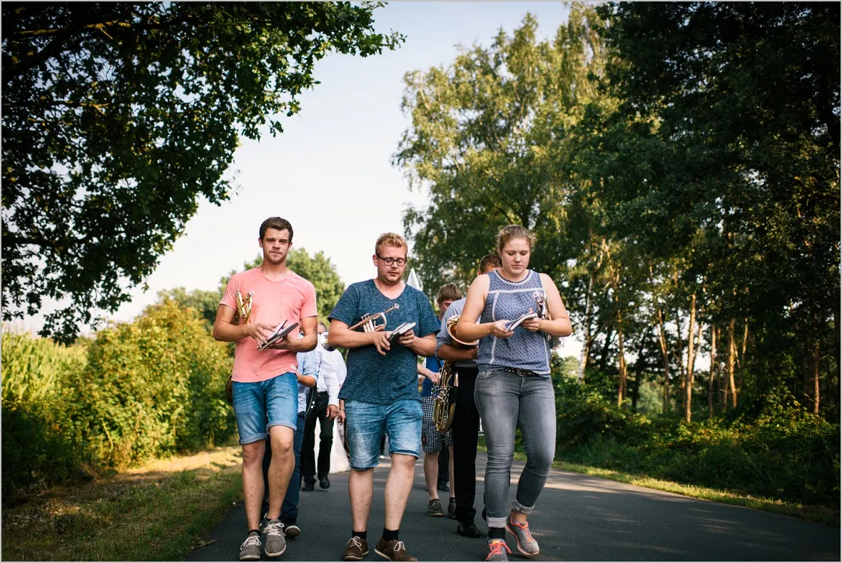 Als Hochzeitsfotograf bei einer traditionsreichen, münsterländischen Hochzeit dabei zu sein, ist echt was Großartiges. Da passiert so viel. Bogen/Kränzen, Schießen der Nachbarn und Seilchenspannen mit anschließendem Umzug mit Blaskapelle, Brautpaar, Familie und Nachbarn zum Festzelt. Ja, Festzelt, so wie man es sonst nur von Schützenfesten kennt.