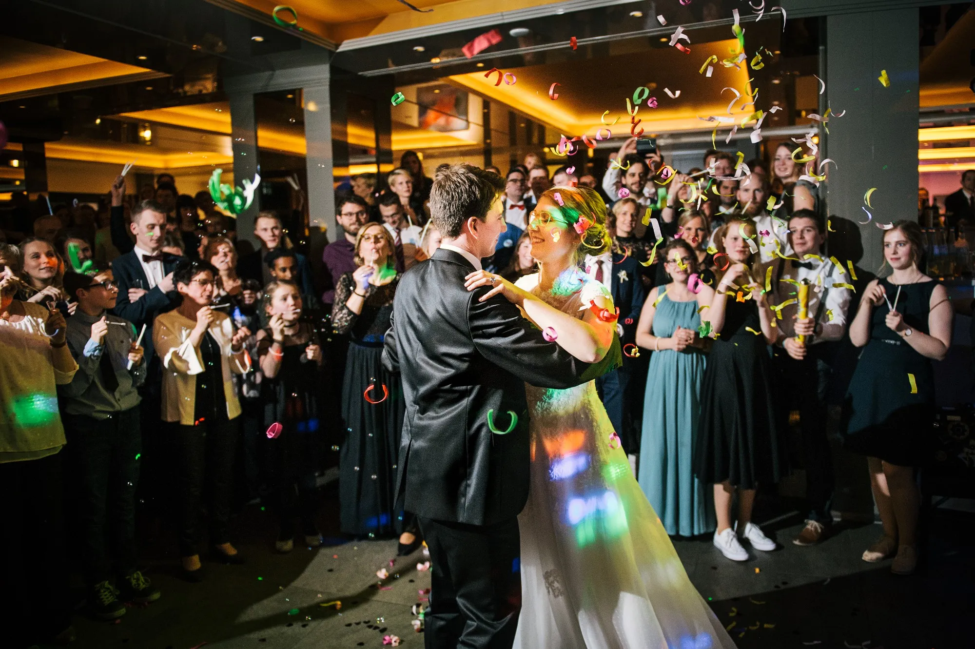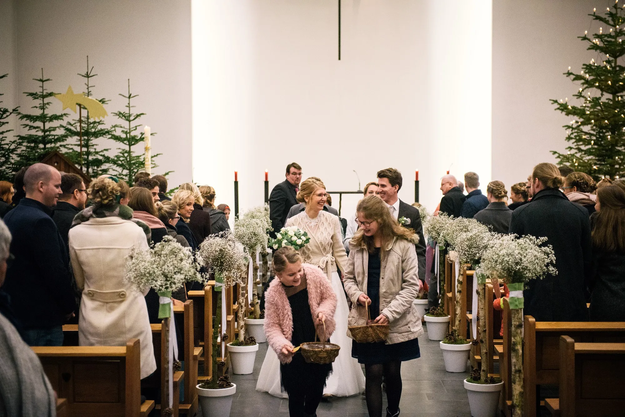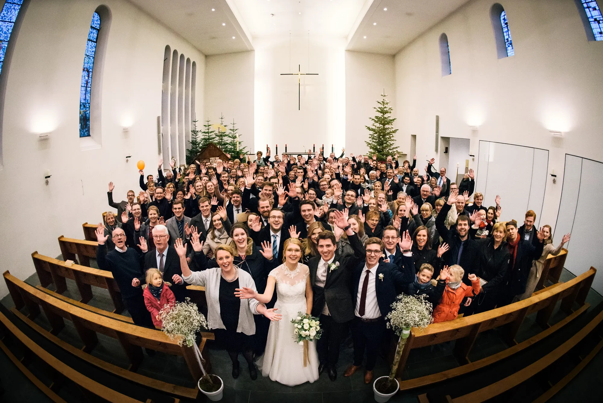 Getraut haben die Beiden sich in der Anna Katharina Kirche. Freunde sorgten in Anschluss für Schnee, den sie sich so sehr gewünscht hatten.