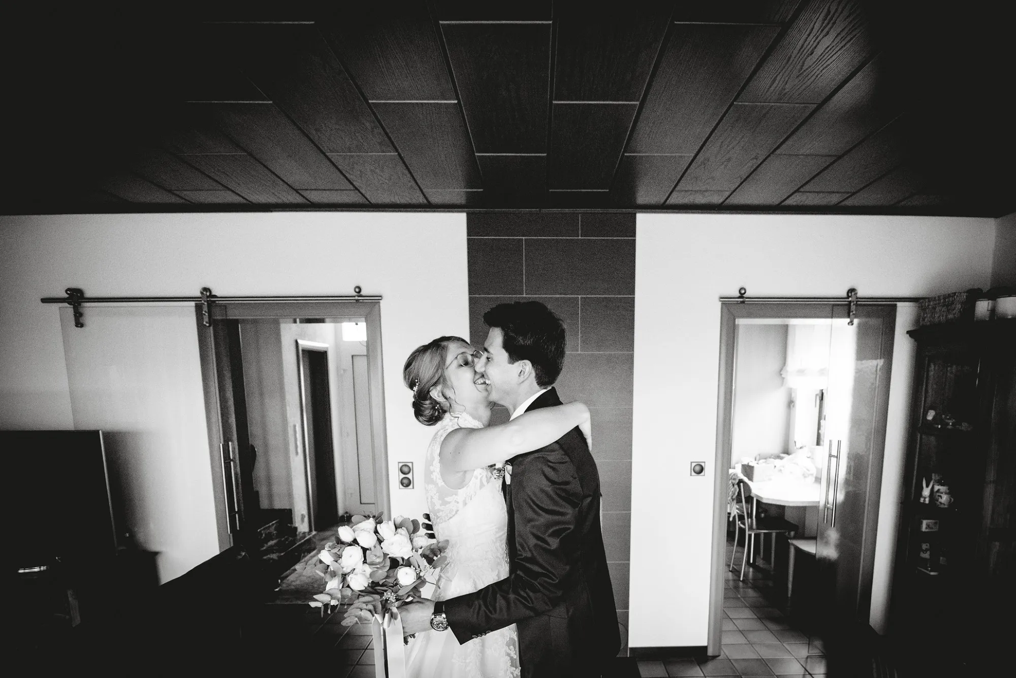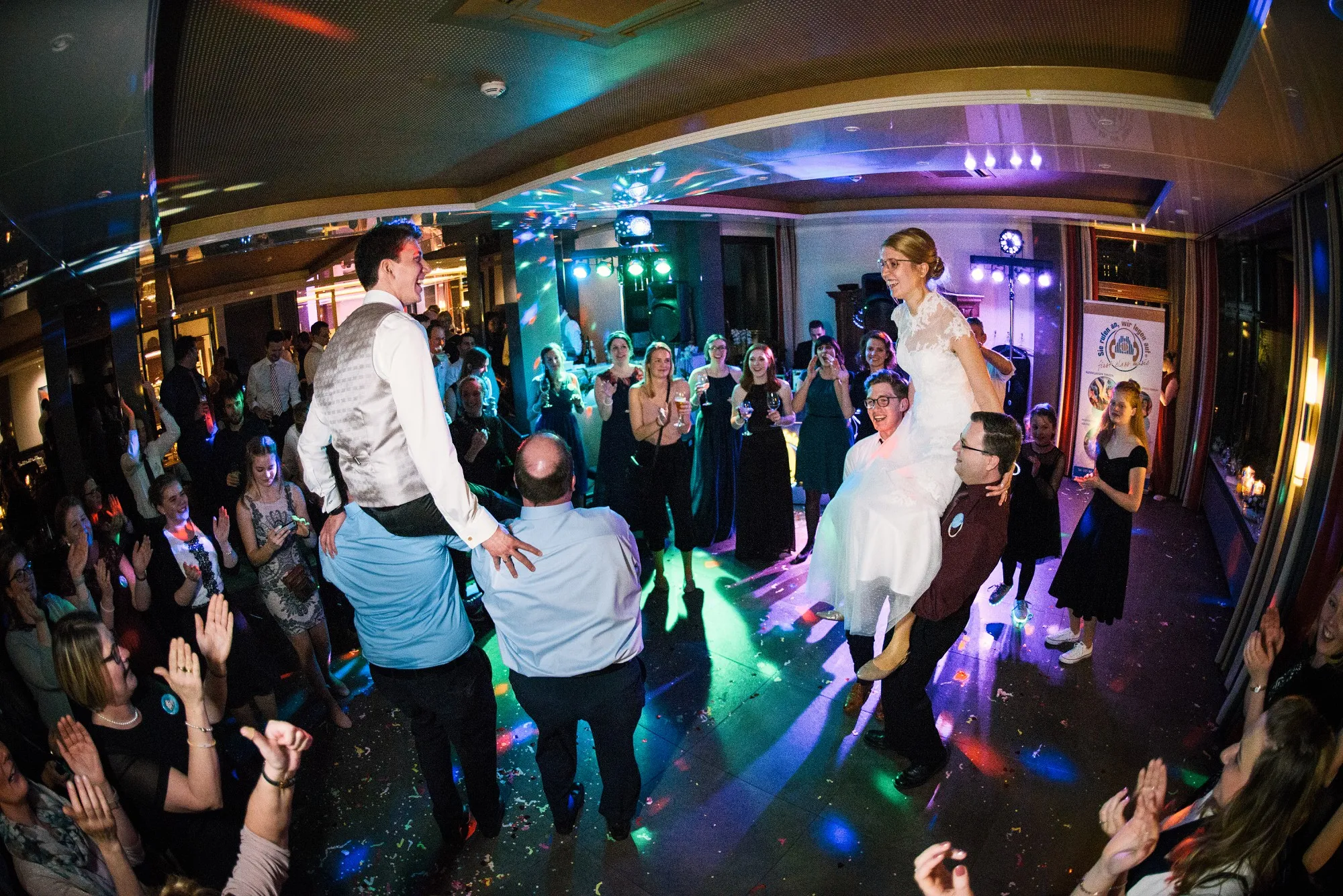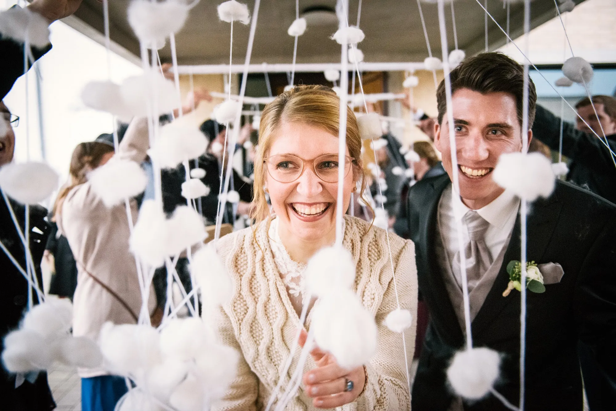 Getraut haben die Beiden sich in der Anna Katharina Kirche. Freunde sorgten in Anschluss für Schnee, den sie sich so sehr gewünscht hatten.