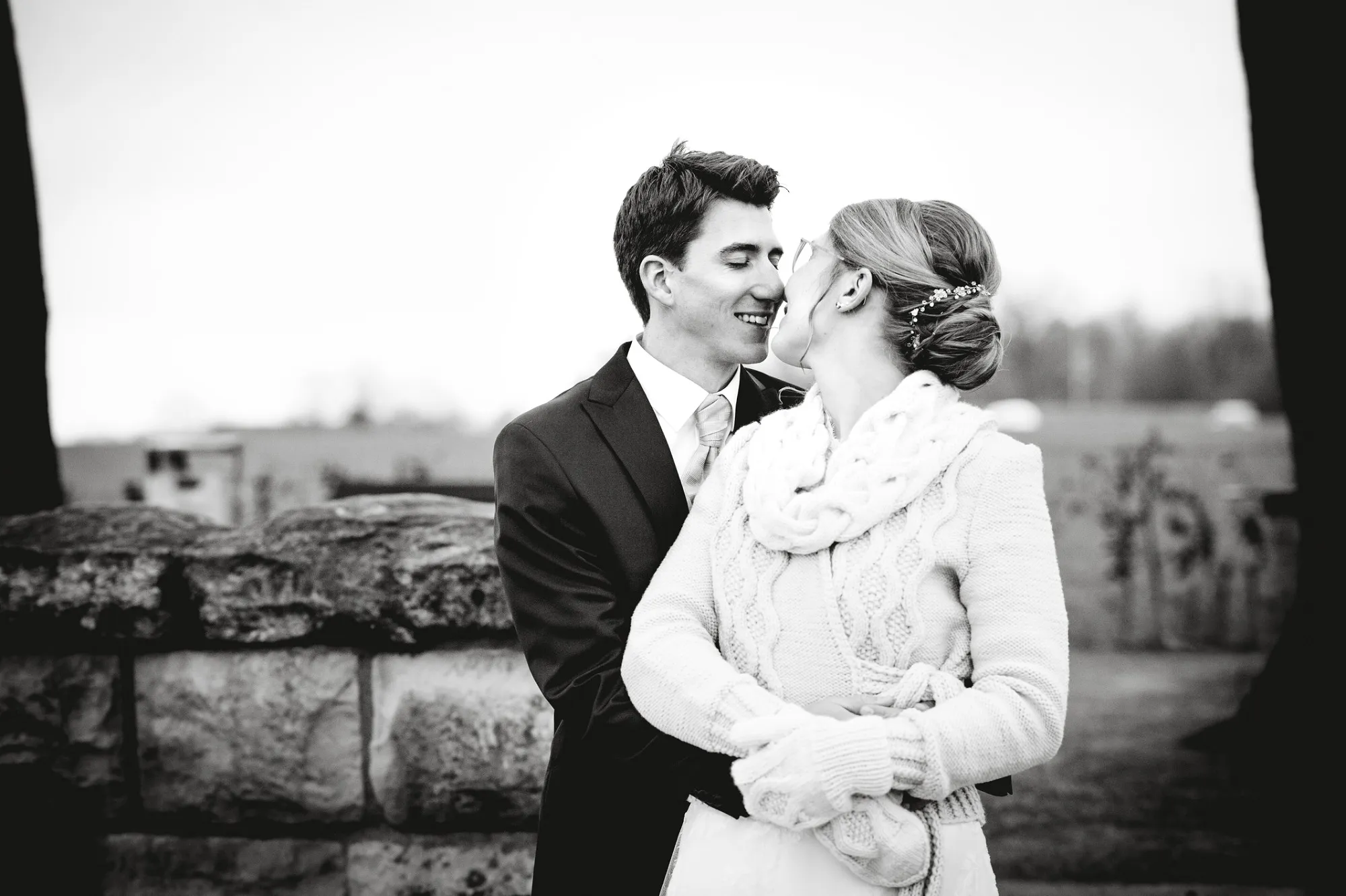 Winterhochzeit! Leute, ich kann euch sagen: Kalt war es, sehr kalt. Eine Winterhochzeit ist halt doch was anderes als Eine im Sommer. Die Braut hatte von ihrer Mutter was gestrickt bekommen und war so wunderbar warm eingepackt. Beim Bräutigam hat das etwas anders ausgesehen. Er versuchte die Kälte zu ignorieren, was ihm mit seiner warmherzigen tollen Braut auch gelang. Ein Tipp für alle Winterbrautpaare: Lasst euch was stricken und zieht die lange Elli an! Diese Liebestöter werden dann zum Liebesretter ???? Die beiden waren so wunderbar aufeinander eingestimmt, liebevoll und entspannt, dass ich den Sommer nicht vermisste.