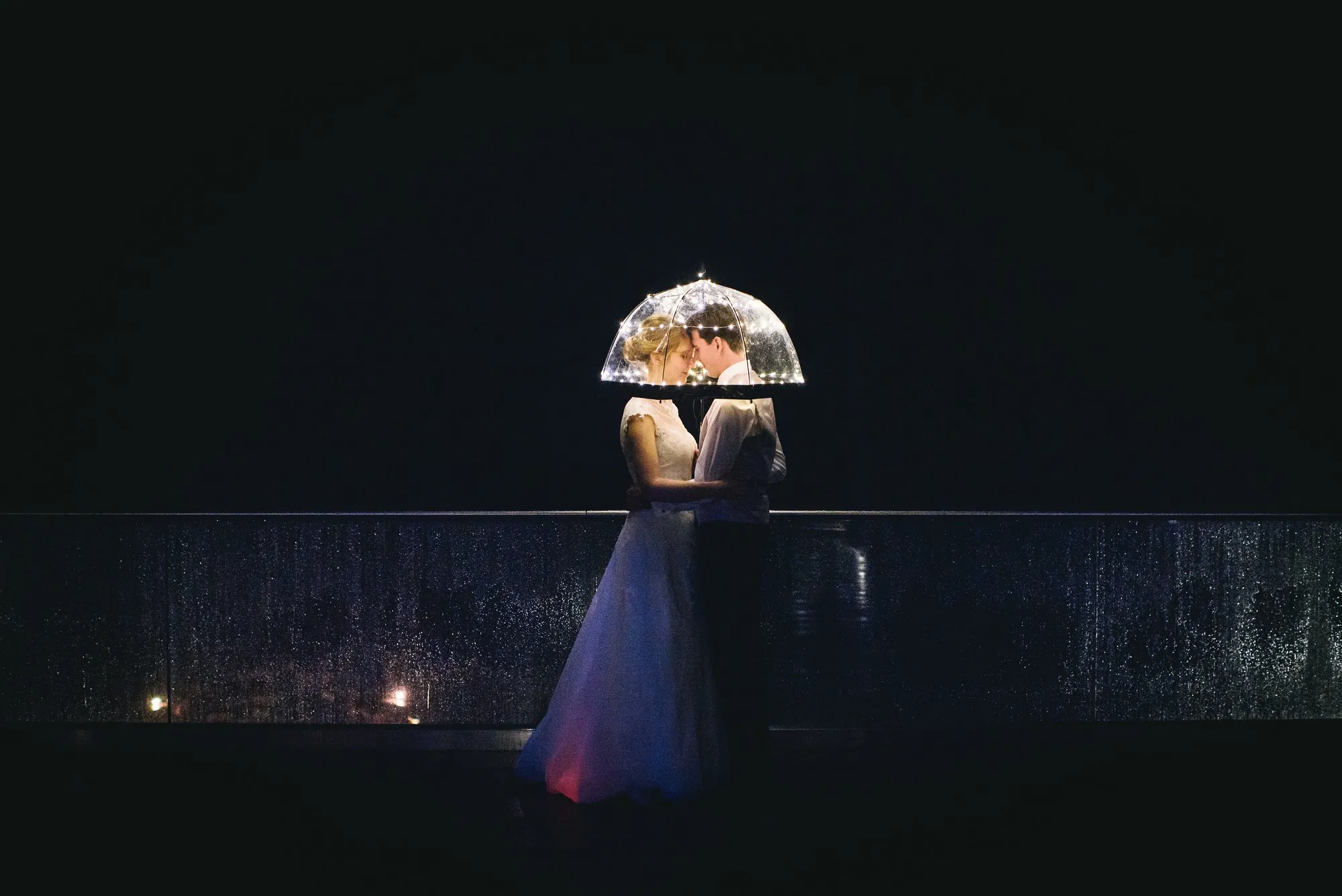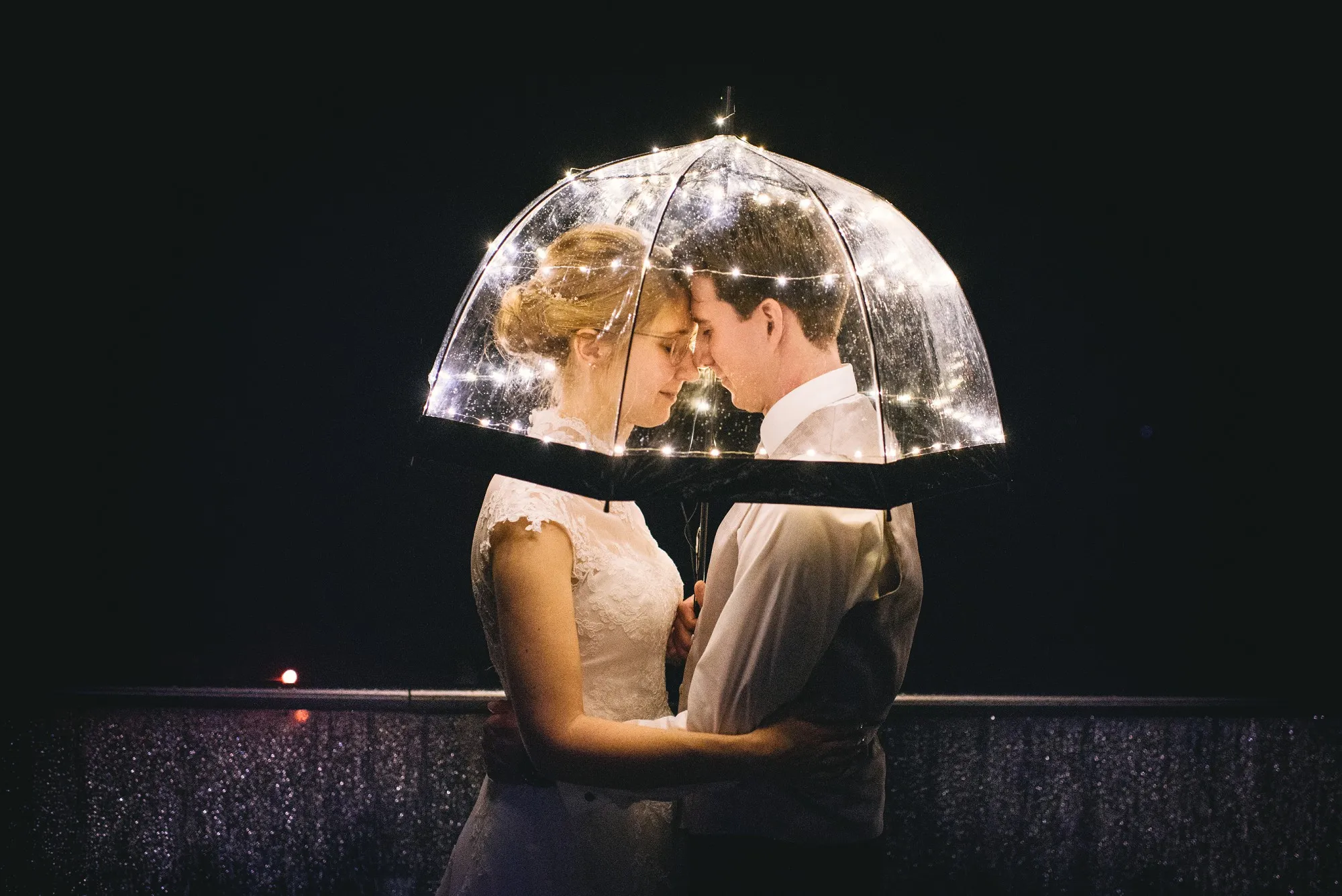 Und dann war da noch mein neuer Regenschirm. Ich hatte ihn tagelang vorbereitet und „dieses eine Bild“ im Kopf. Nach der Mitternachtscurrywurst verschwanden wir kurz nach draußen. Ich schaltete ihn ein und mein Brautpaar schmuste darunter. Grandios!