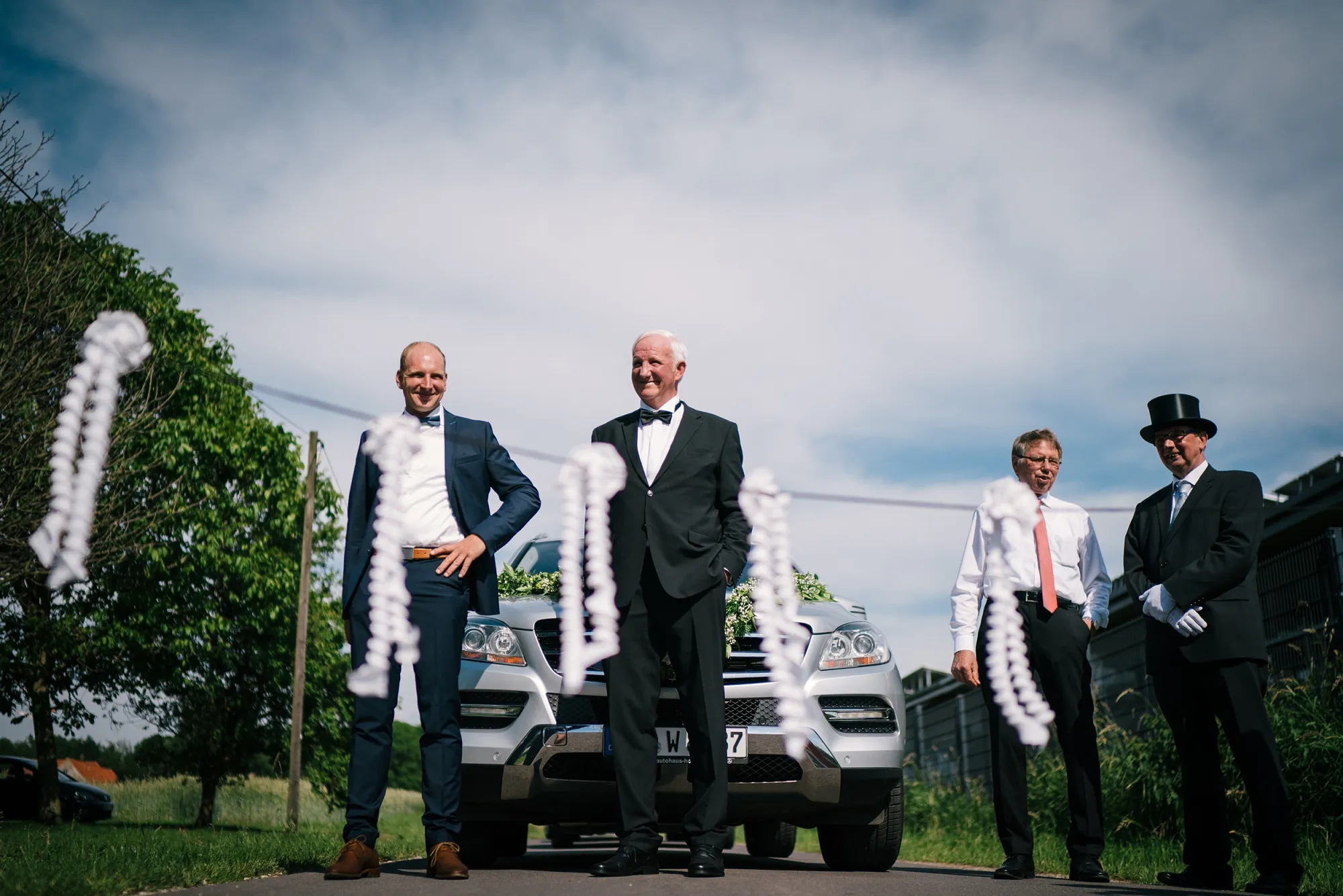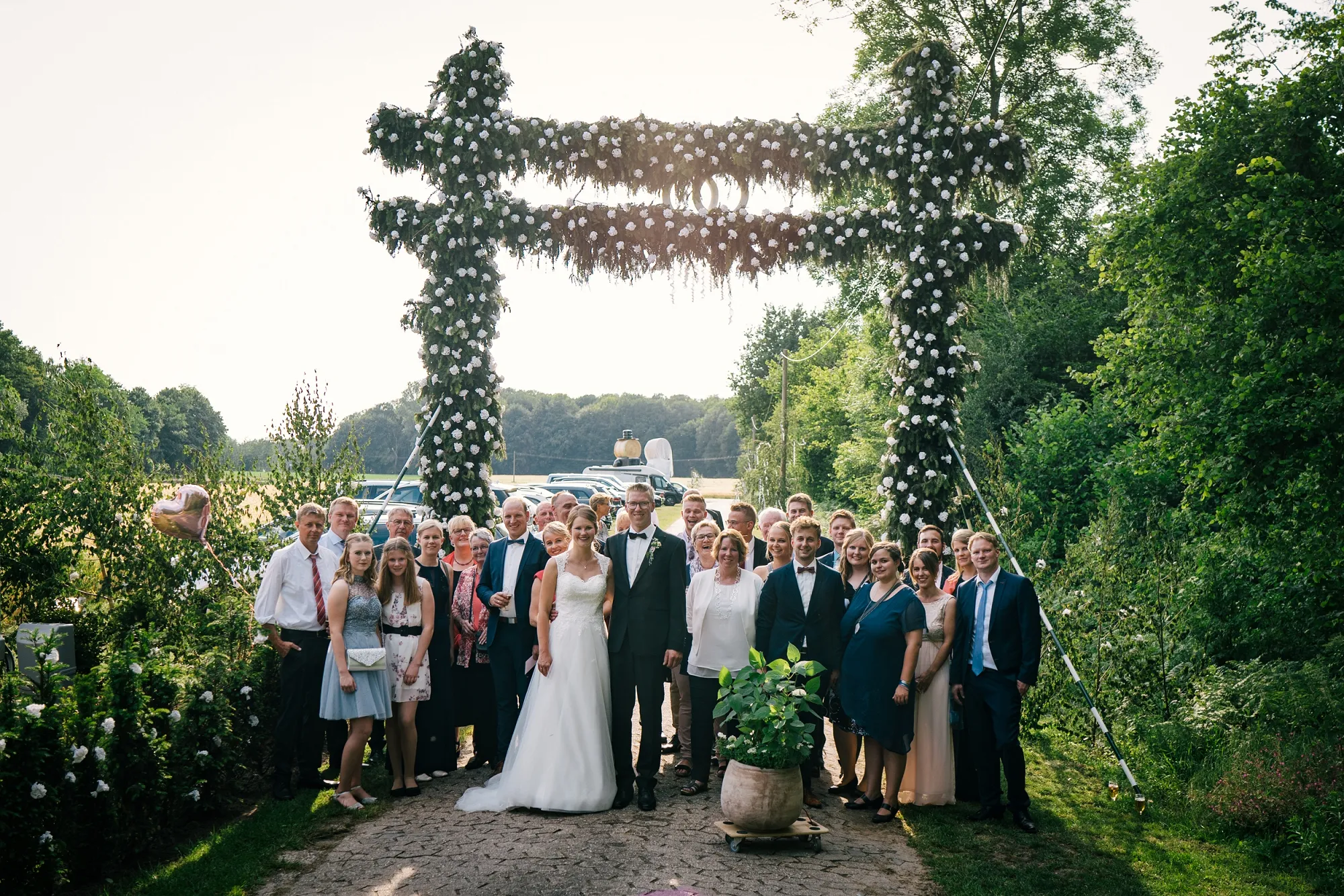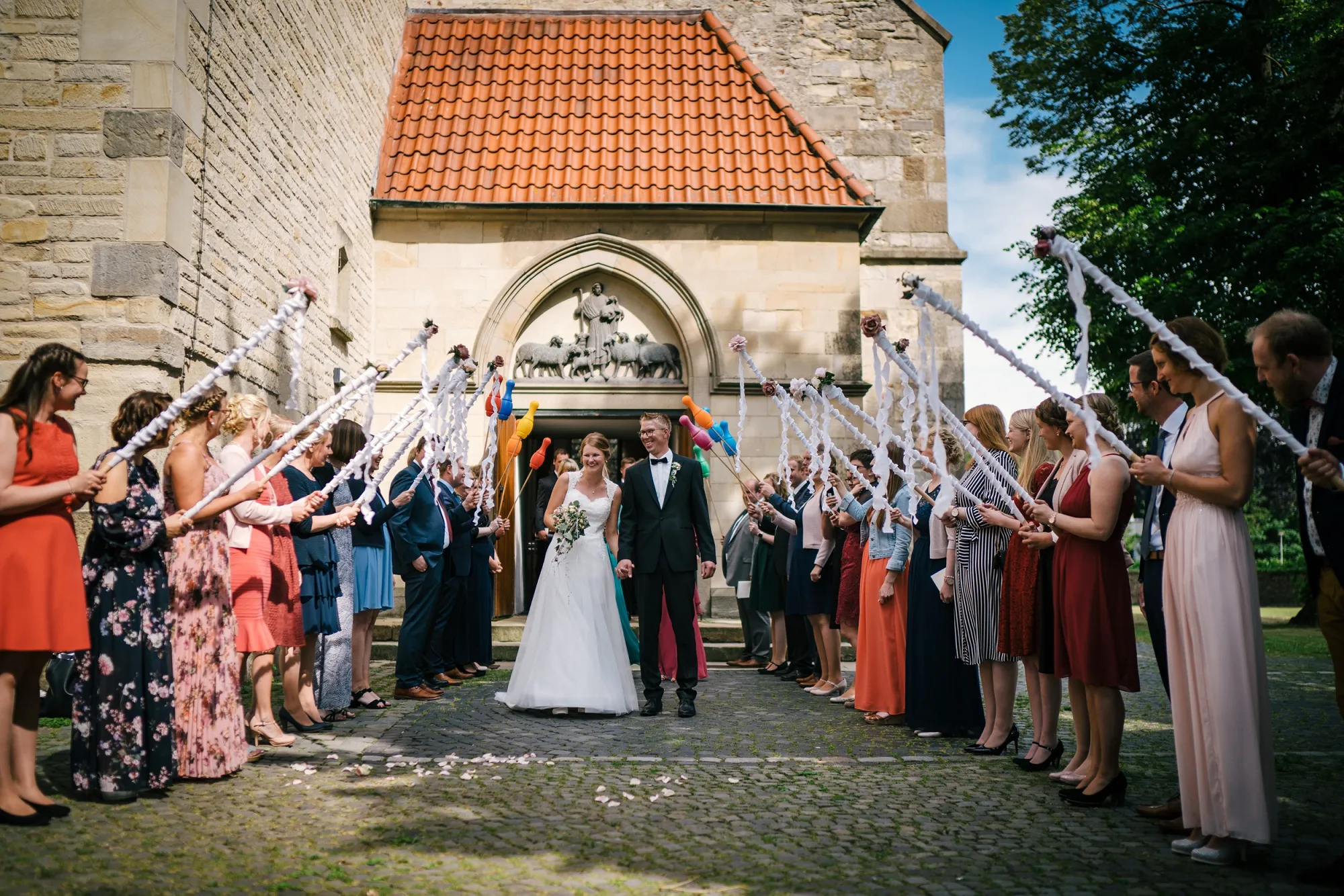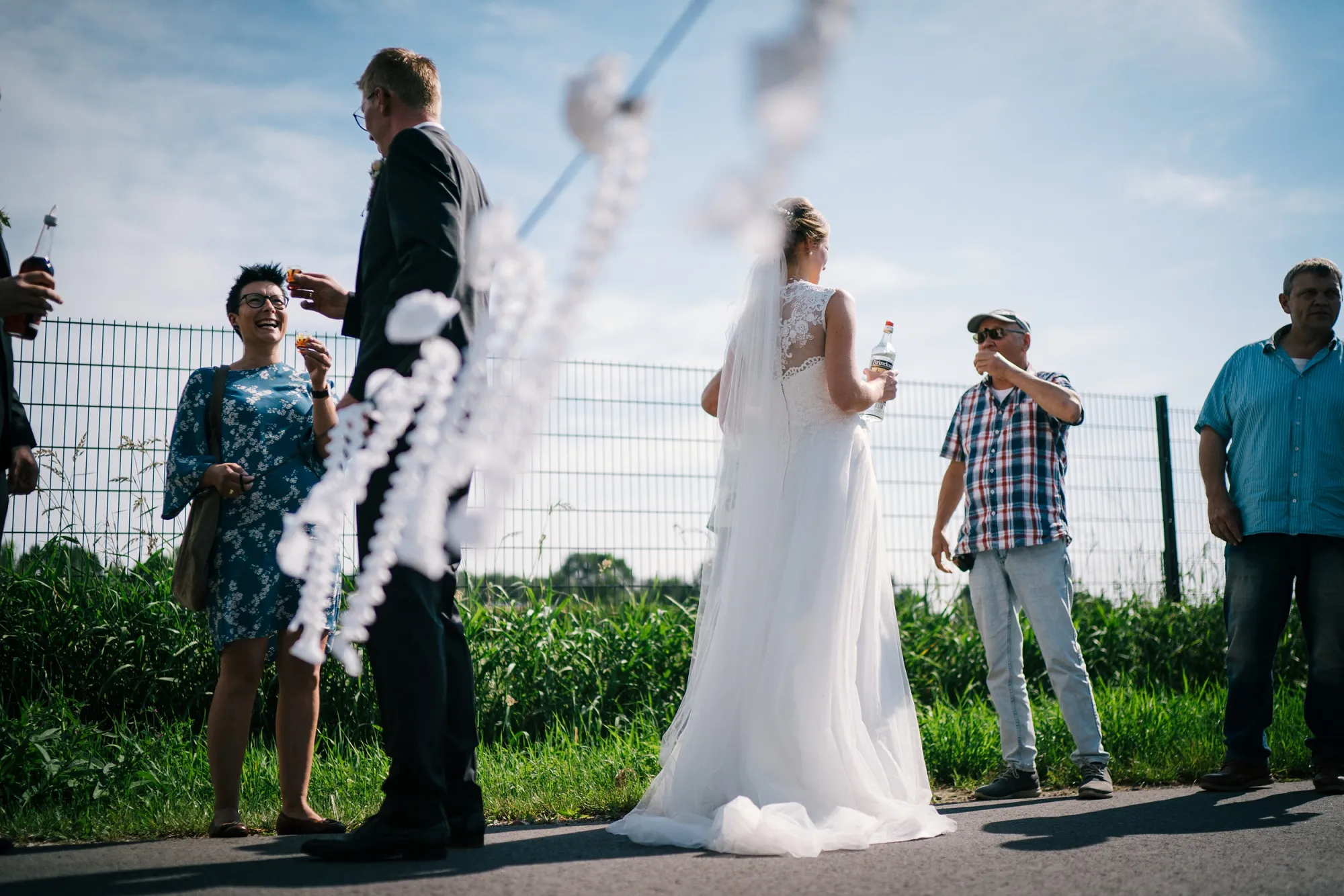 Wenn man als Hochzeitsfotograf als erste Handlung des Tages den Gehörschutz sucht dann kann das nur ein gutes Zeichen sein. Es ist eine alte Tradition eine Hochzeit mit lauten Kanonenschüssen zu begleiten. Dabei zu fotografieren ohne Schutz der Ohren gewöhnt man sich ganz schnell ab! Hochtied (Plattdeutsch für Hochzeit) im Münsterland eben! Es war eine Bauernhochzeit mit allem was dazugehört Kanone, Hochzeitsbogen XXL, Seilchenspannen, Gastbitter und Schleiertanz. Wunderbar! Ich liebe das. Wir machten Bilder auf dem eigenen Hof des Brautpaares und es entstanden sehr vertraute und liebevolle Bilder. Ihr habt das toll gemacht, ihr Beiden!