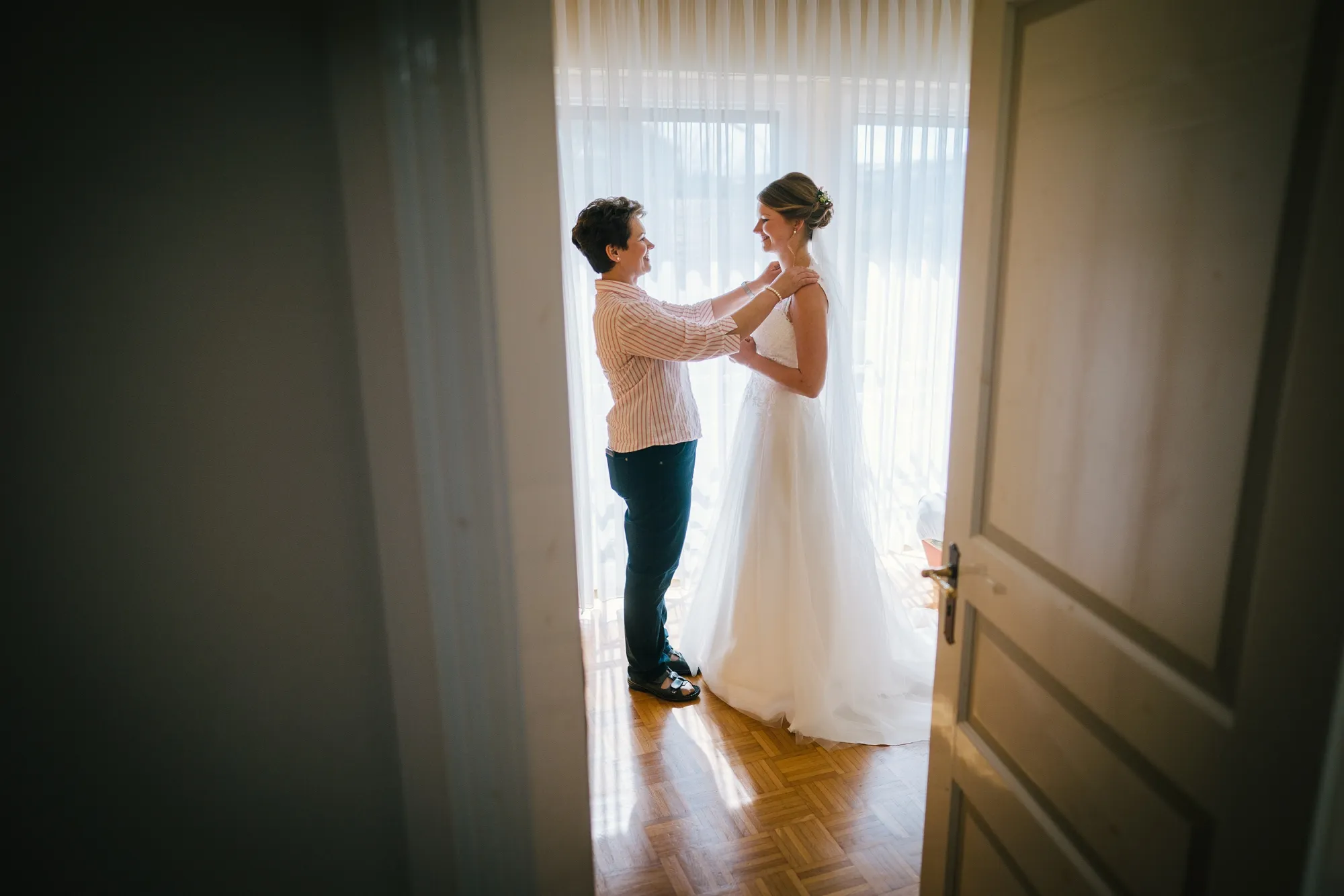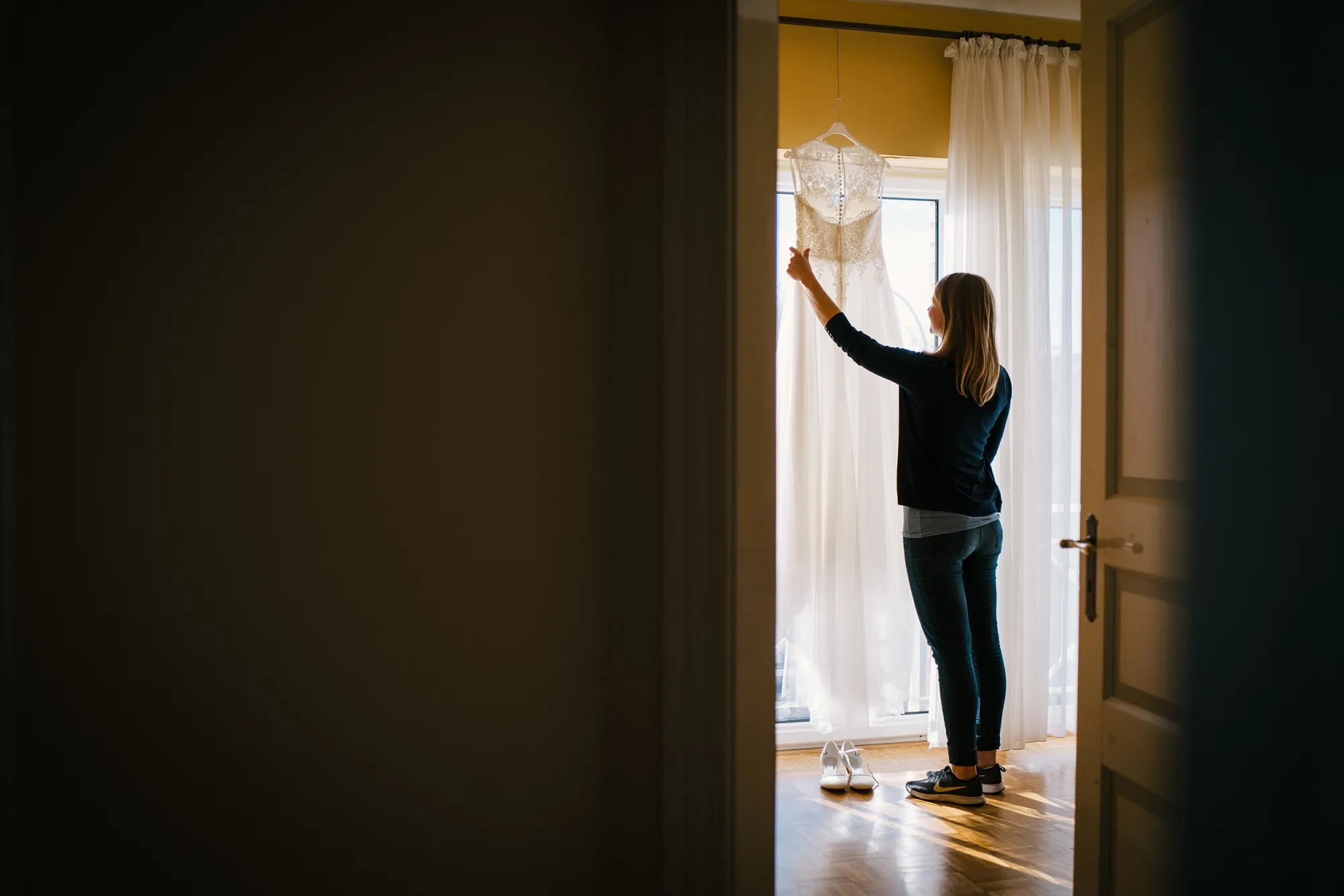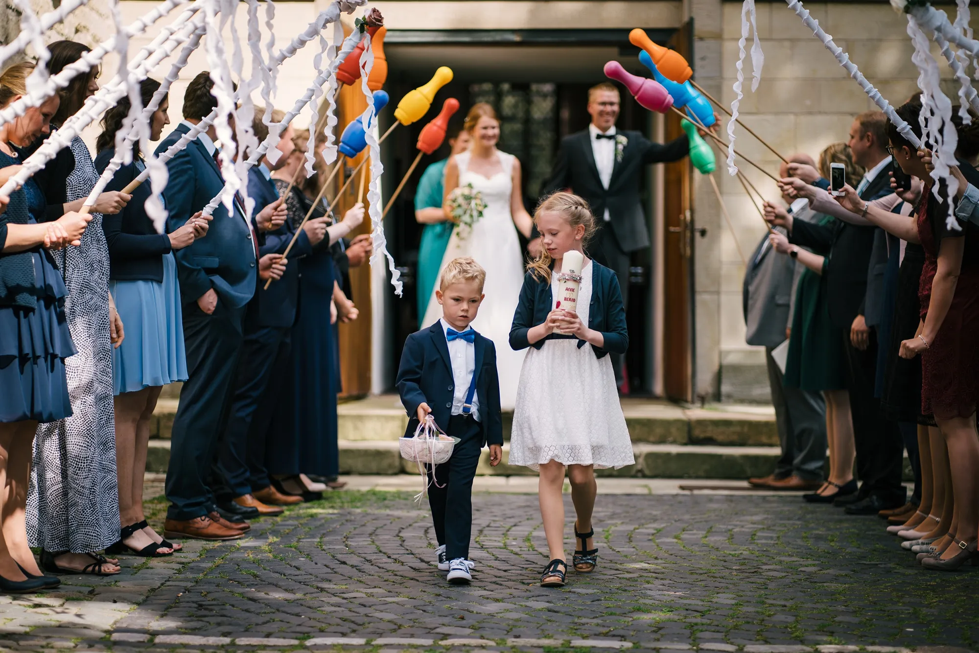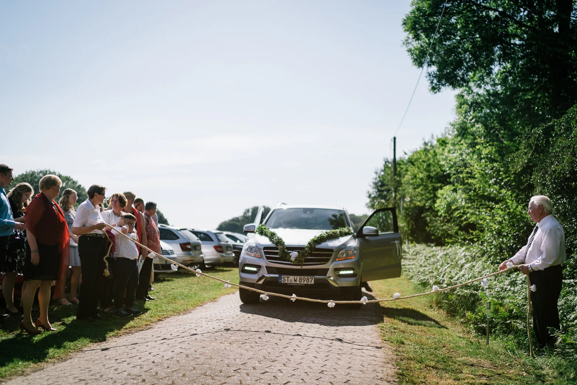 Wenn man als Hochzeitsfotograf als erste Handlung des Tages den Gehörschutz sucht dann kann das nur ein gutes Zeichen sein. Es ist eine alte Tradition eine Hochzeit mit lauten Kanonenschüssen zu begleiten. Dabei zu fotografieren ohne Schutz der Ohren gewöhnt man sich ganz schnell ab! Hochtied (Plattdeutsch für Hochzeit) im Münsterland eben! Es war eine Bauernhochzeit mit allem was dazugehört Kanone, Hochzeitsbogen XXL, Seilchenspannen, Gastbitter und Schleiertanz. Wunderbar! Ich liebe das. Wir machten Bilder auf dem eigenen Hof des Brautpaares und es entstanden sehr vertraute und liebevolle Bilder. Ihr habt das toll gemacht, ihr Beiden!