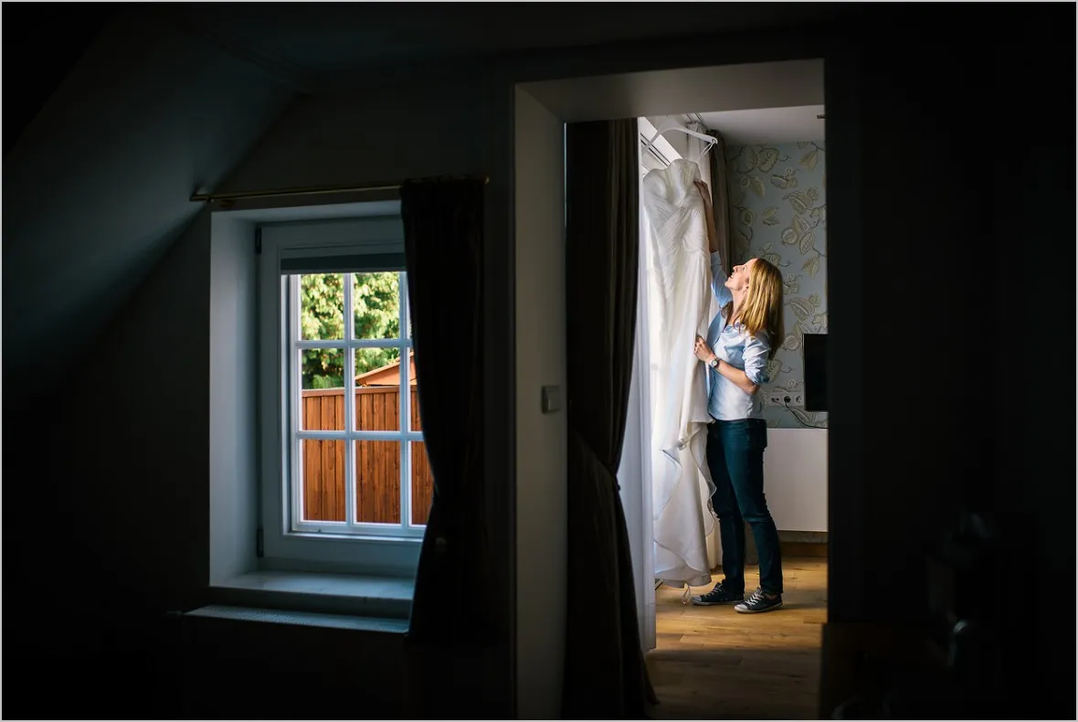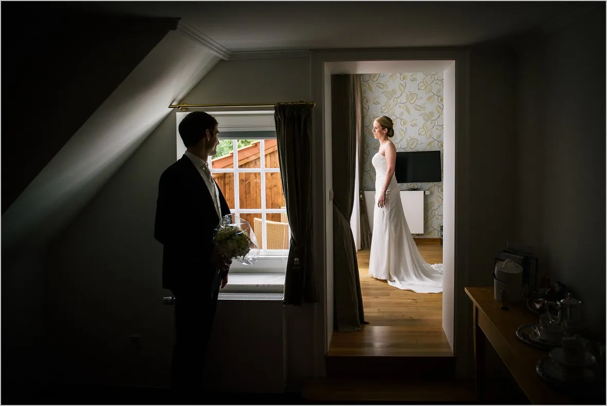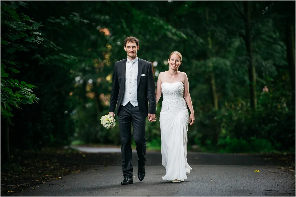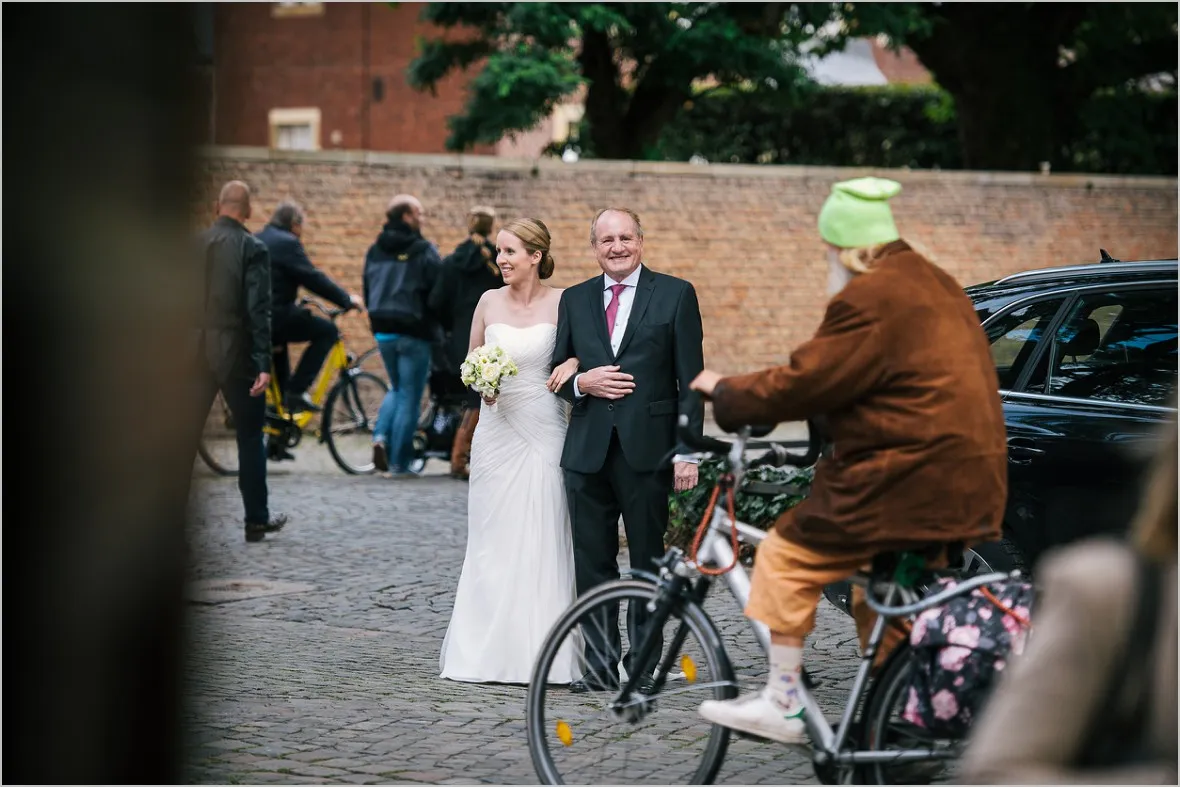 Schon früh morgens quälte ich die Wetter App um ein paar Sonnenstrahlen erahnen zu können. Nix da. Alles regenblau. Als ich dann als Hochzeitsfotograf in Münster am Romantikhotel Hof zur Linde ankam, ließ mich die sehr herzliche Begrüßung des Brautpaares, das Blau der Regenapp schnell wieder vergessen. Hochzeiten sollen ja immer im Sonnenschein stattfinden und ich ermutige jedes Paar, nicht so viel aufs Wetter zu geben.