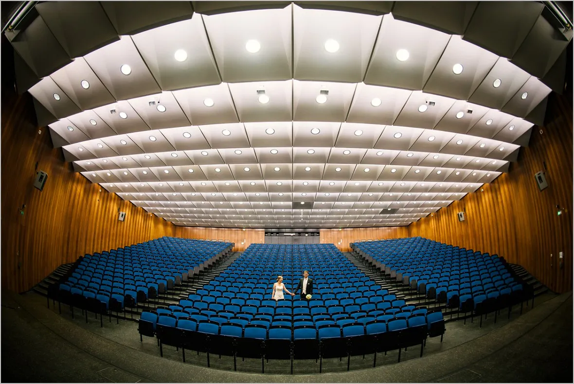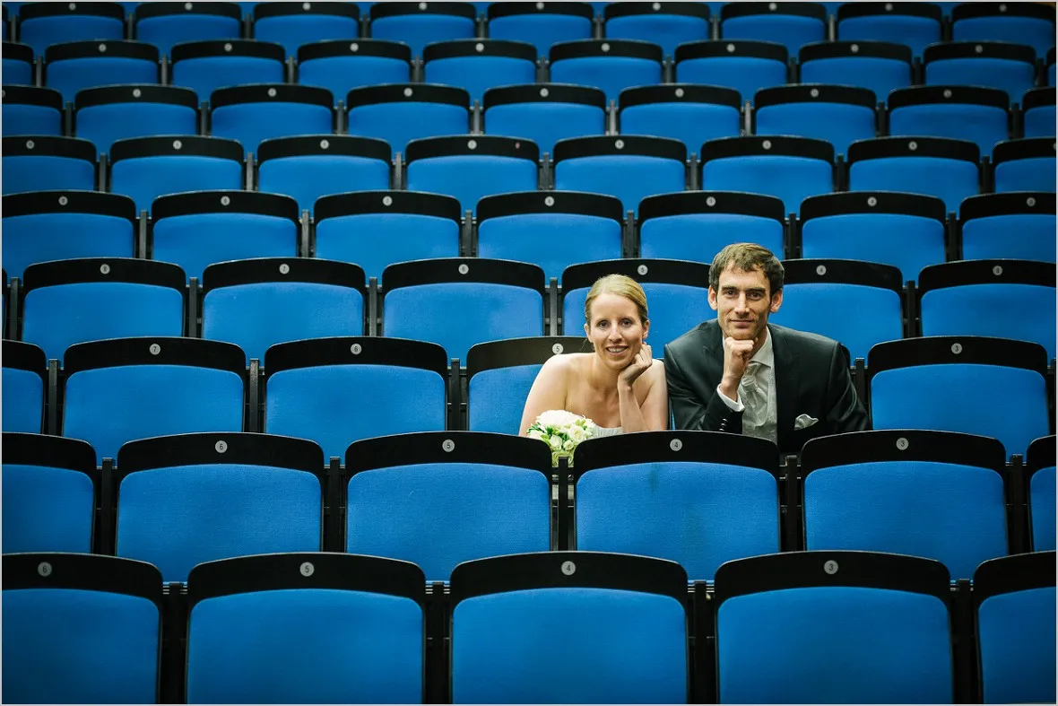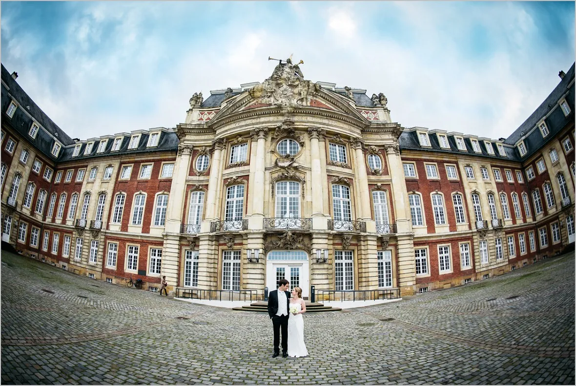 An der Uni Münster haben sie sich kennen gelernt. Nun waren sie wieder dort. Hochzeitsbilder im Hörsaal H1 und am Schloss. Geile Location.