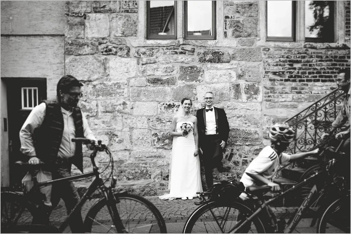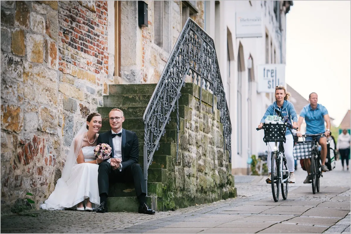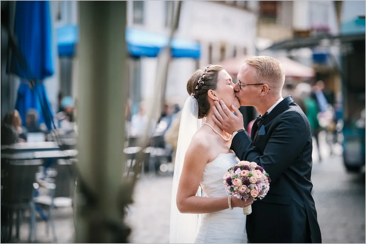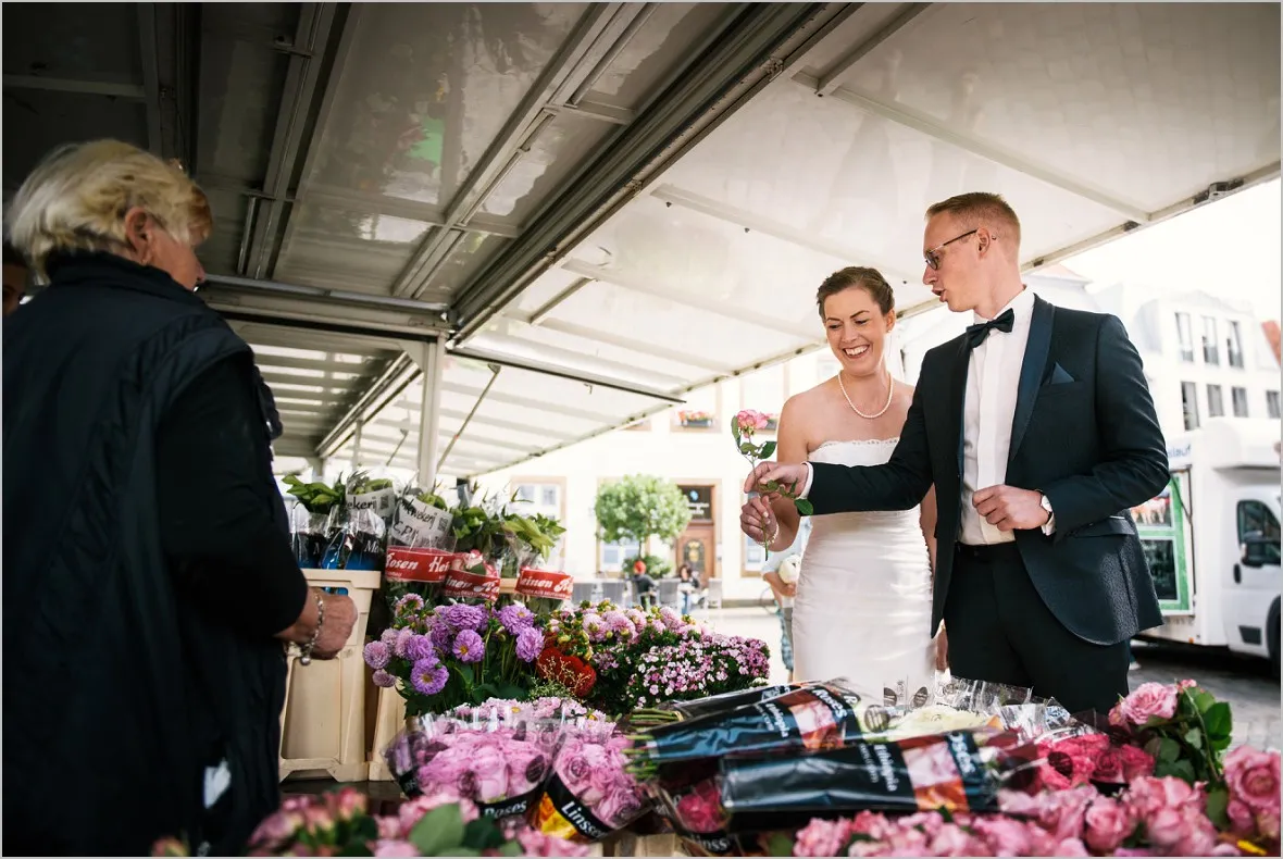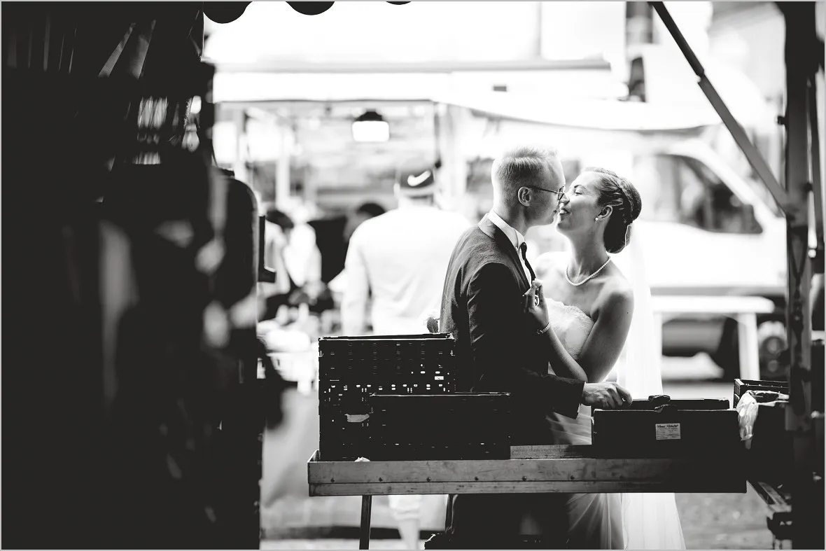 Beim Vortreffen sagte mein Brautpaar, sie wollen zum Wochenmarkt in Rheine an ihrem Hochzeitstag um Bilder zu machen. Sie verbinden was aus ihrem Leben mit dem Markt und wollten meine Meinung zu der Idee hören. Ich war begeistert! Reportagefotografie mit einem wunderbaren Brautpaar auf dem Markt. Das ist mutig, fürs Paar und auch für mich. Unvorhersehbar zauberhaft, echt und schön!
