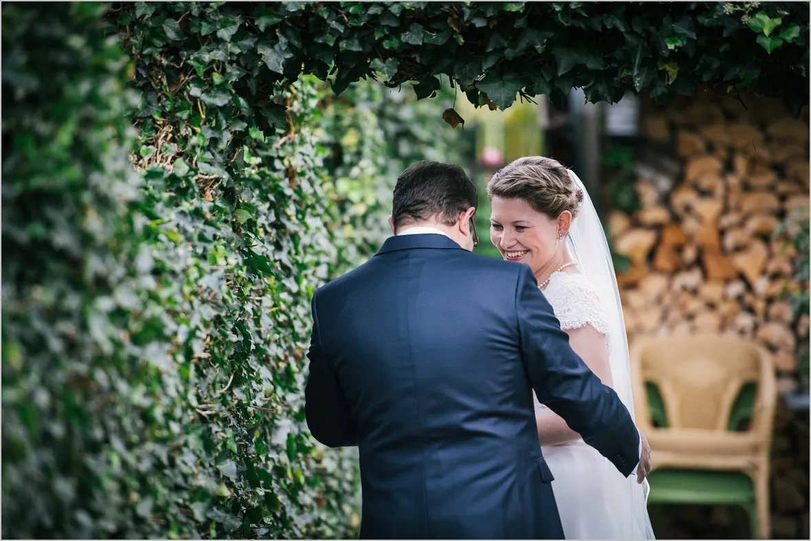 Mein Brautpaar sah sich an diesem besonderen Tag das erste Mal im Garten der Brauteltern. Es wurde magisch und wunderschön. So herrlich emotional, ehrlich und liebevoll. Toll, wie die Beiden sich fallen gelassen haben und mich vergaßen.