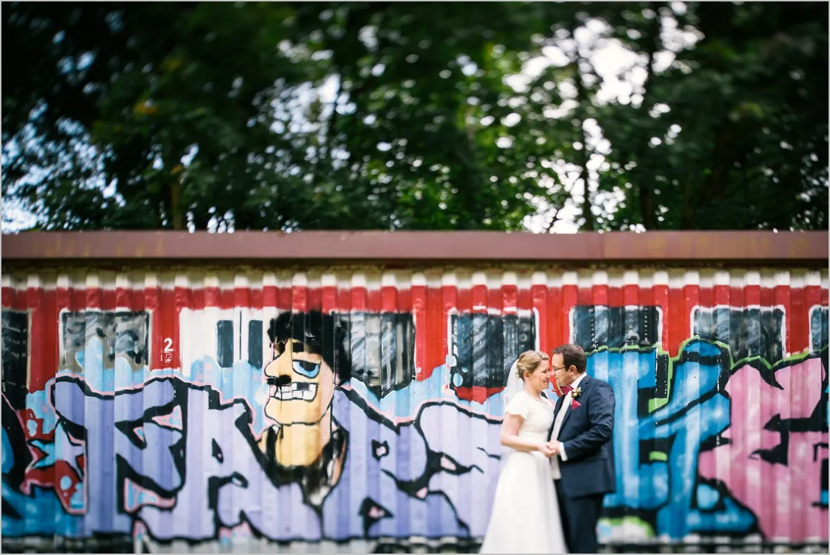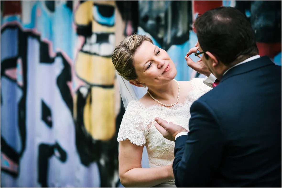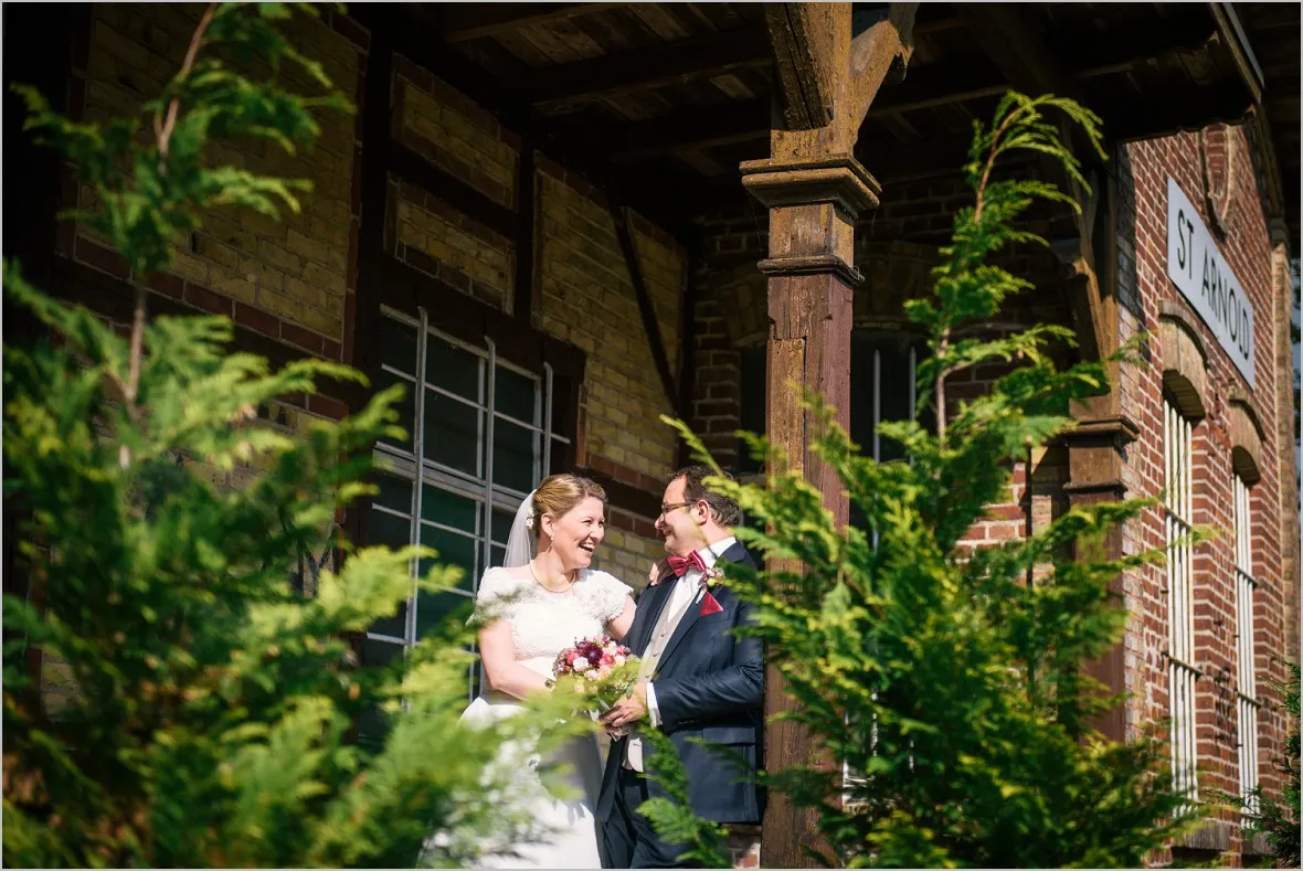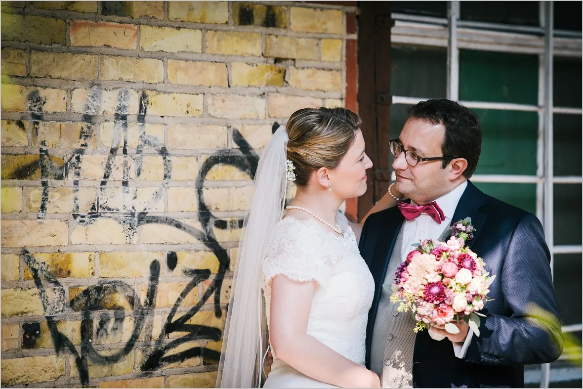 Eine Fahrradtourtruppe begrüßte uns beim St. Arnolder Bahnhof. Ja, der Brautwaagen zog schon so seine Aufmerksamkeit auf sich. Dass sollte ich später auf einer anderen Hochzeit mehrmals erzählt bekommen. ???? Mein Brautpaar aus Frankfurt an einen so kleinen Bahnhof. Das hat was mit eigenen Wurzeln und Verbundenheit zu tun. Paarbilder mit ganz viel Emotionen und wilden Erdbeeren entstanden.