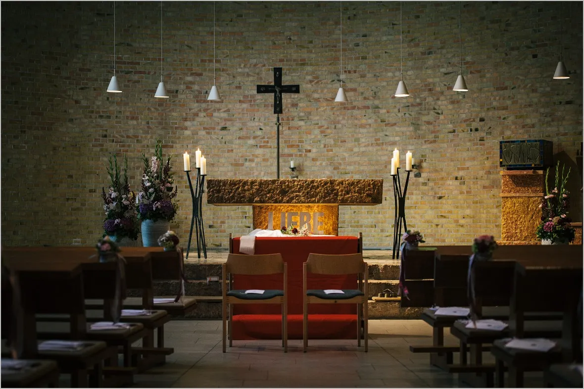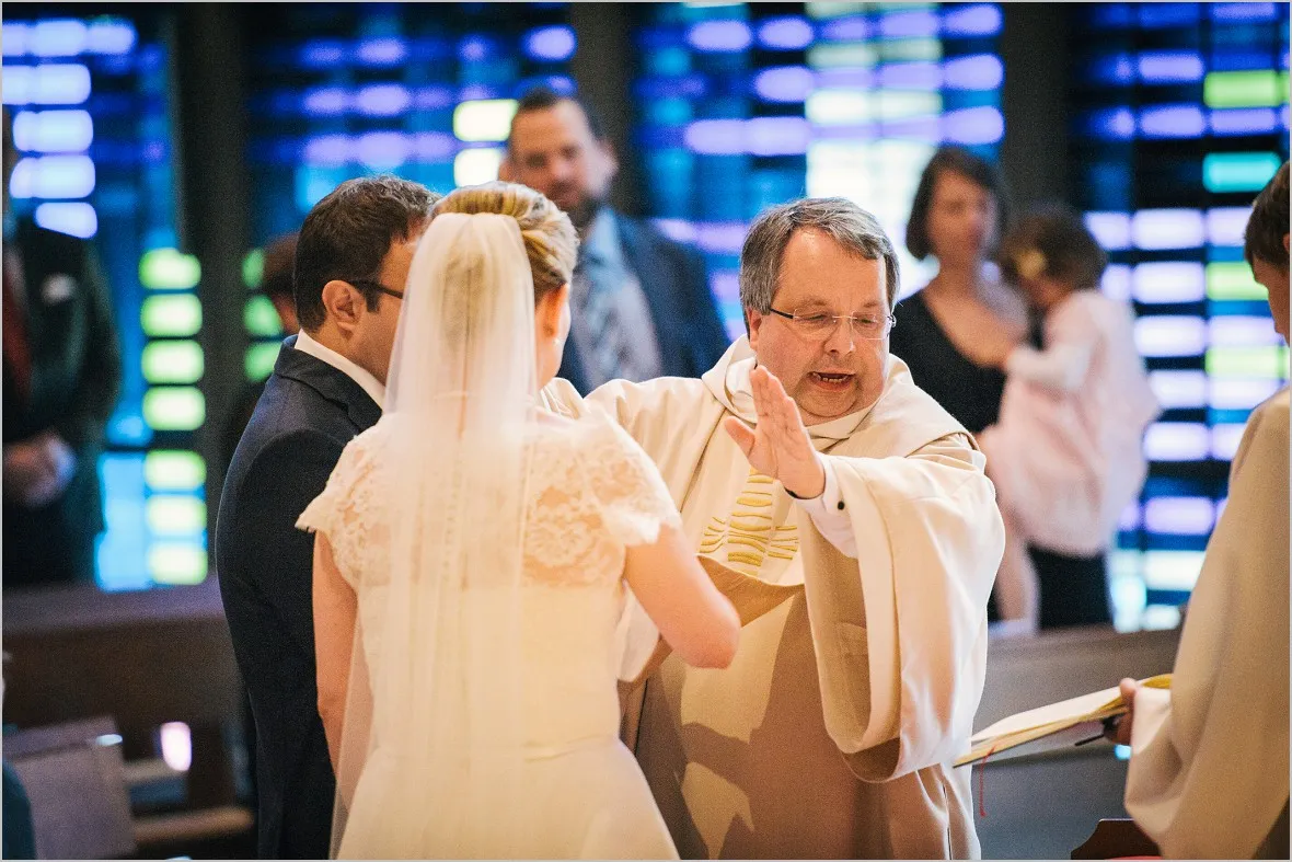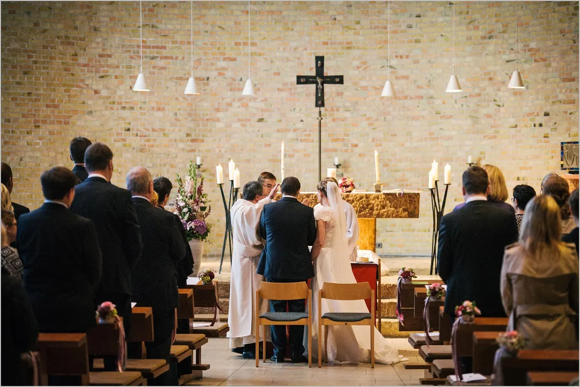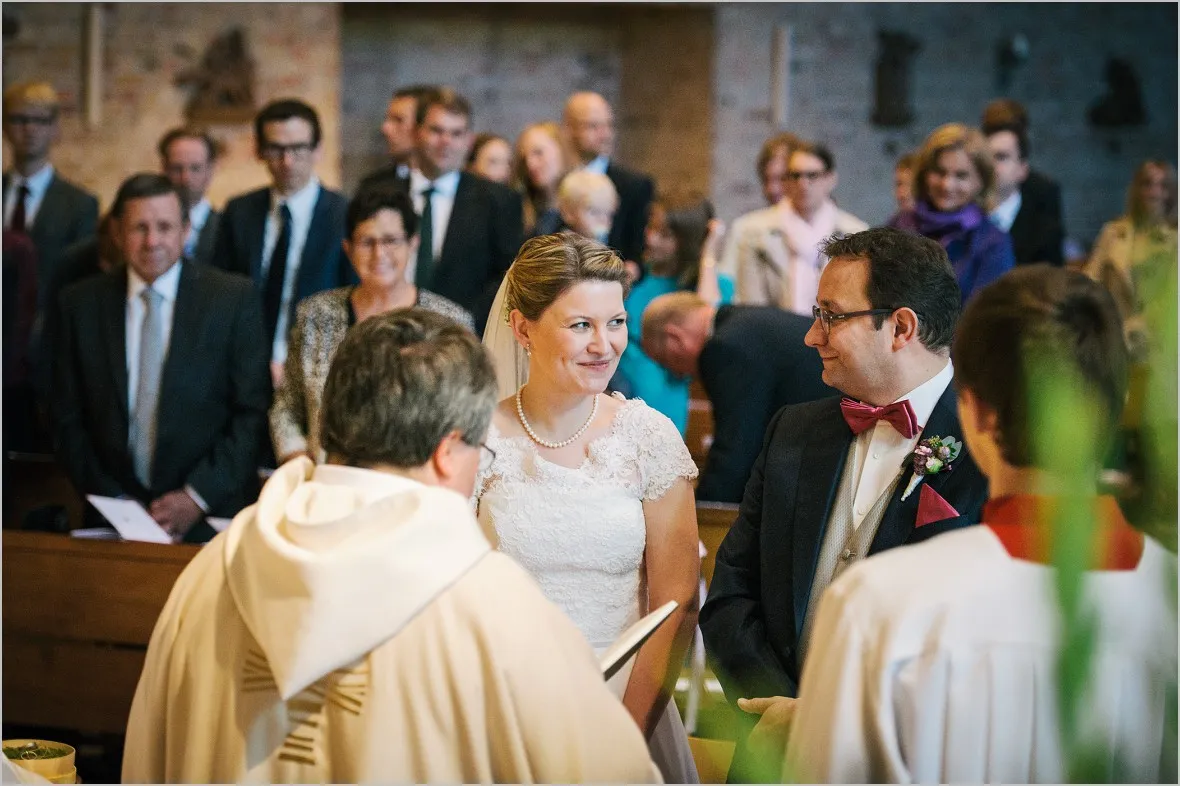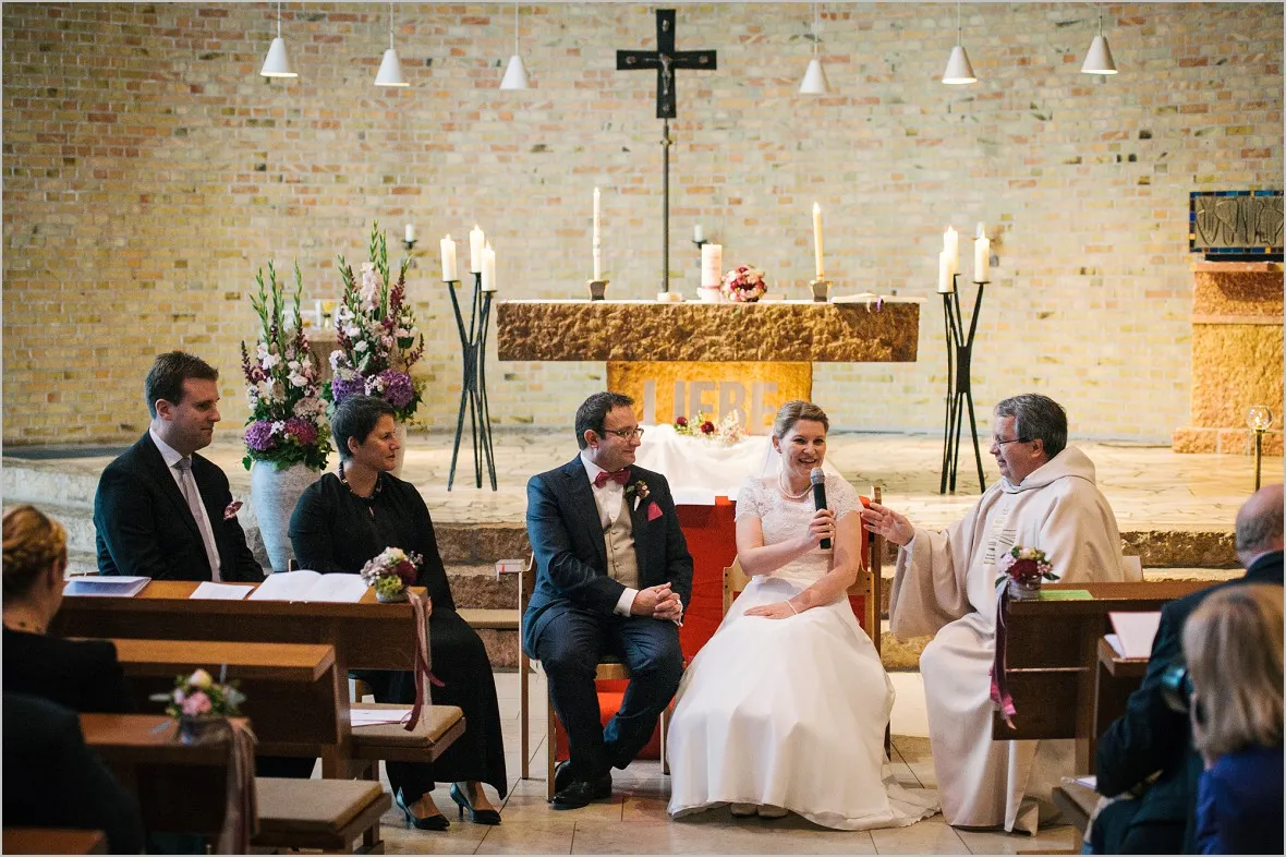 In der St. Josef Kirche, natürlich auch in St. Arnold, wurden die Beiden von einem sehr sympathischen Mönch getraut. Als Traupredigt hat er sich überlegt, zusammen mit dem Brautpaar und die Trauzeugen, über Liebe, Partnerschaft und Glauben zu sprechen. Toll! Er war so ganz nah an den Menschen.