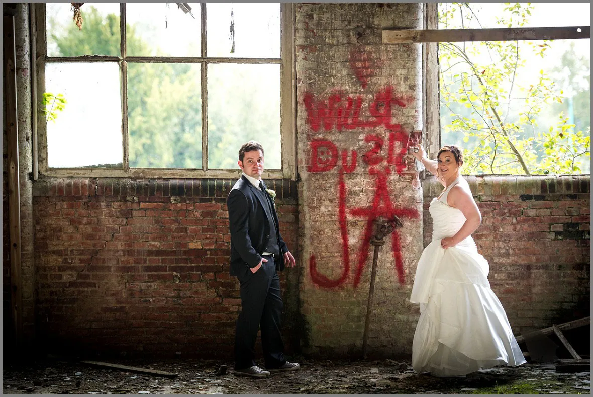 Man, was haben wir darauf gewartet! Der Bilderübergabetermin verschob sich durch berufliche Trennung meines Brautpaares doch sehr kräftig. Ich ziehe den Hut vor so viel Warteausdauer der Braut. Zusammen, die Bilder das erste Mal sehen, das war ihr Wunsch, der nun in Erfüllung ging. Und Zack, waren wir wieder in mitten des Hochzeitstages. Mit der „Alten-Dame-Edition2“ ,einem alten Industriegebäude, Blaskapellen und einem rauschendem Fest. Was für Bilder! Liebes Brautpaar, Ihr seid großartig!