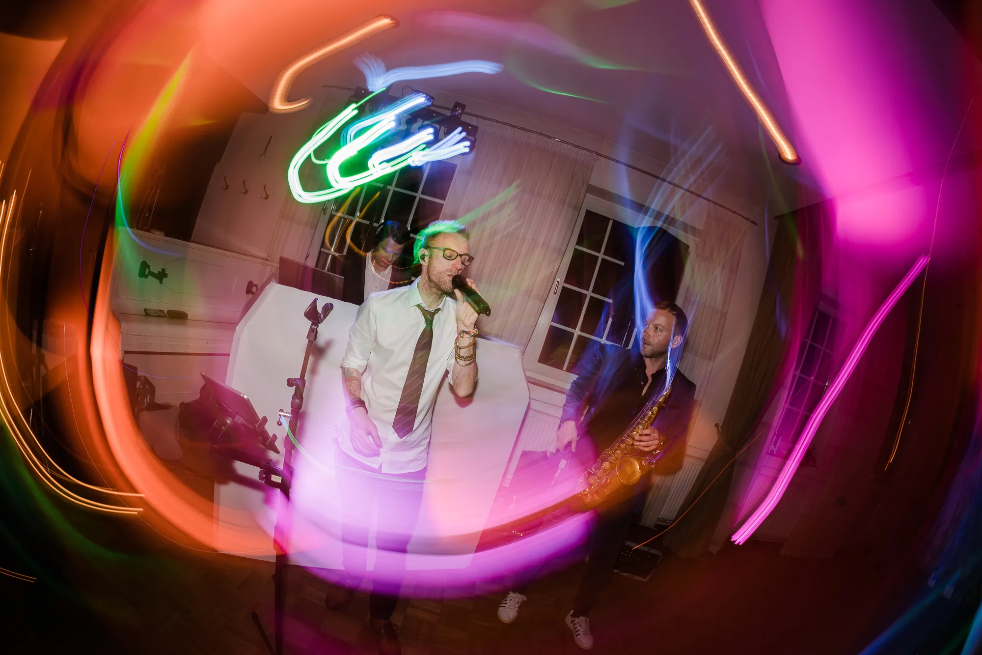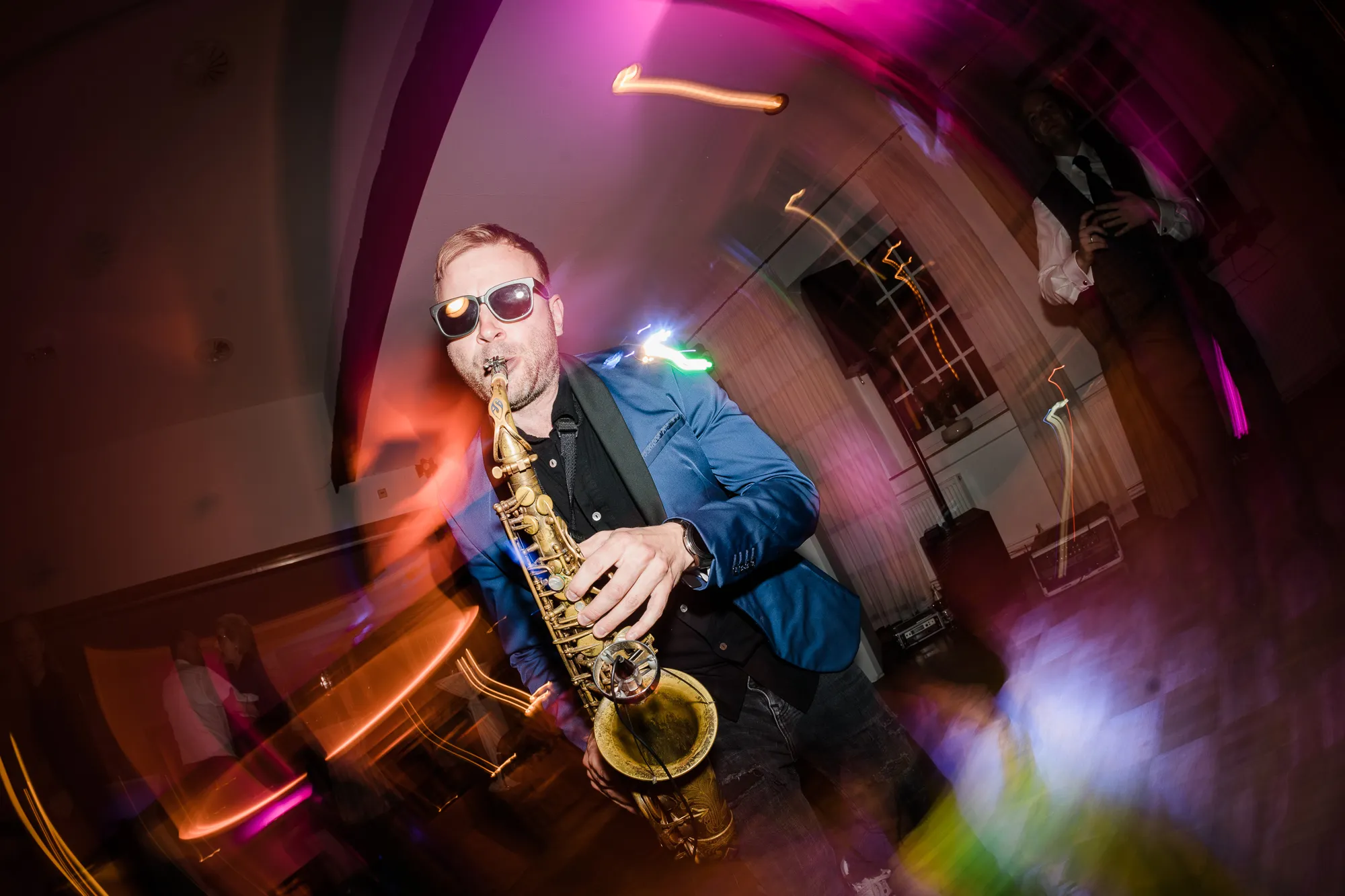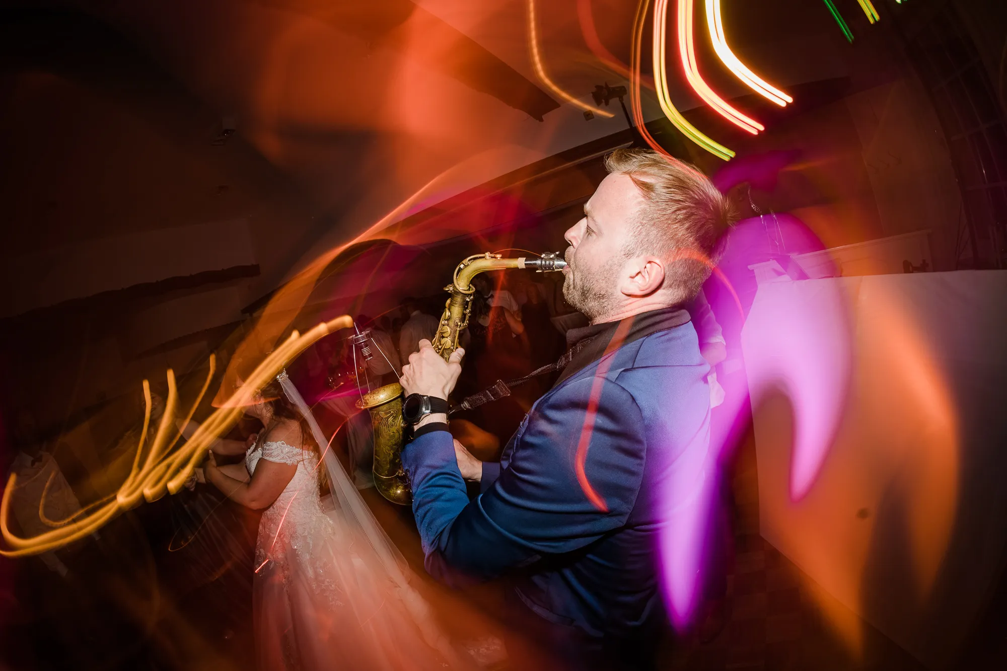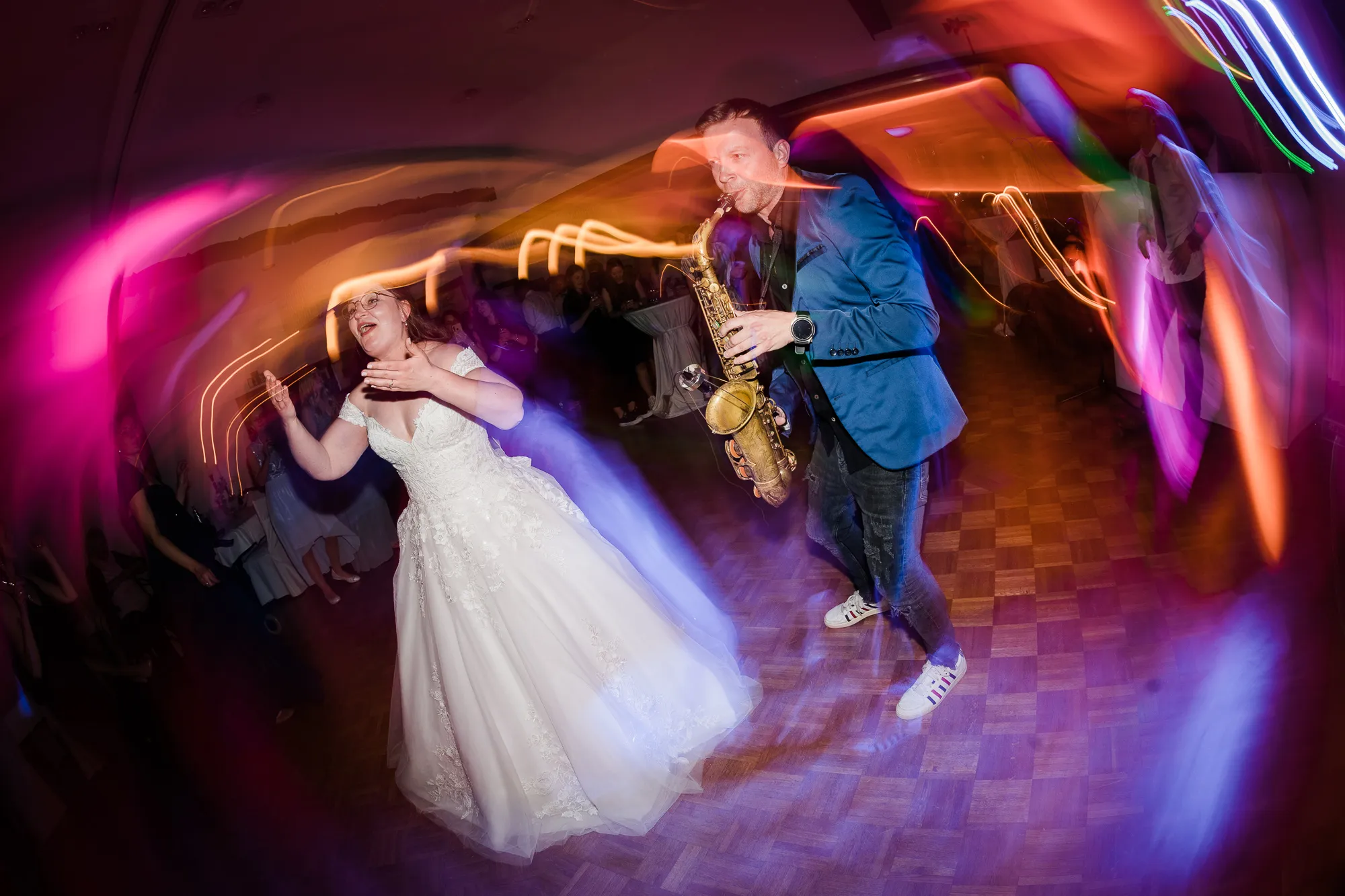 ein Sänger, ein Saxophonist zusammen mit DJ starteten den Eröffnungstanz. Ab genau Sekunde Null der Tanzflächeneröffnung wurde durchgetanzt und gefeiert. Super geile Stimmung die da aufs Paket gezaubert wurde durch die ungeheure Präsenz der drei Musiker!