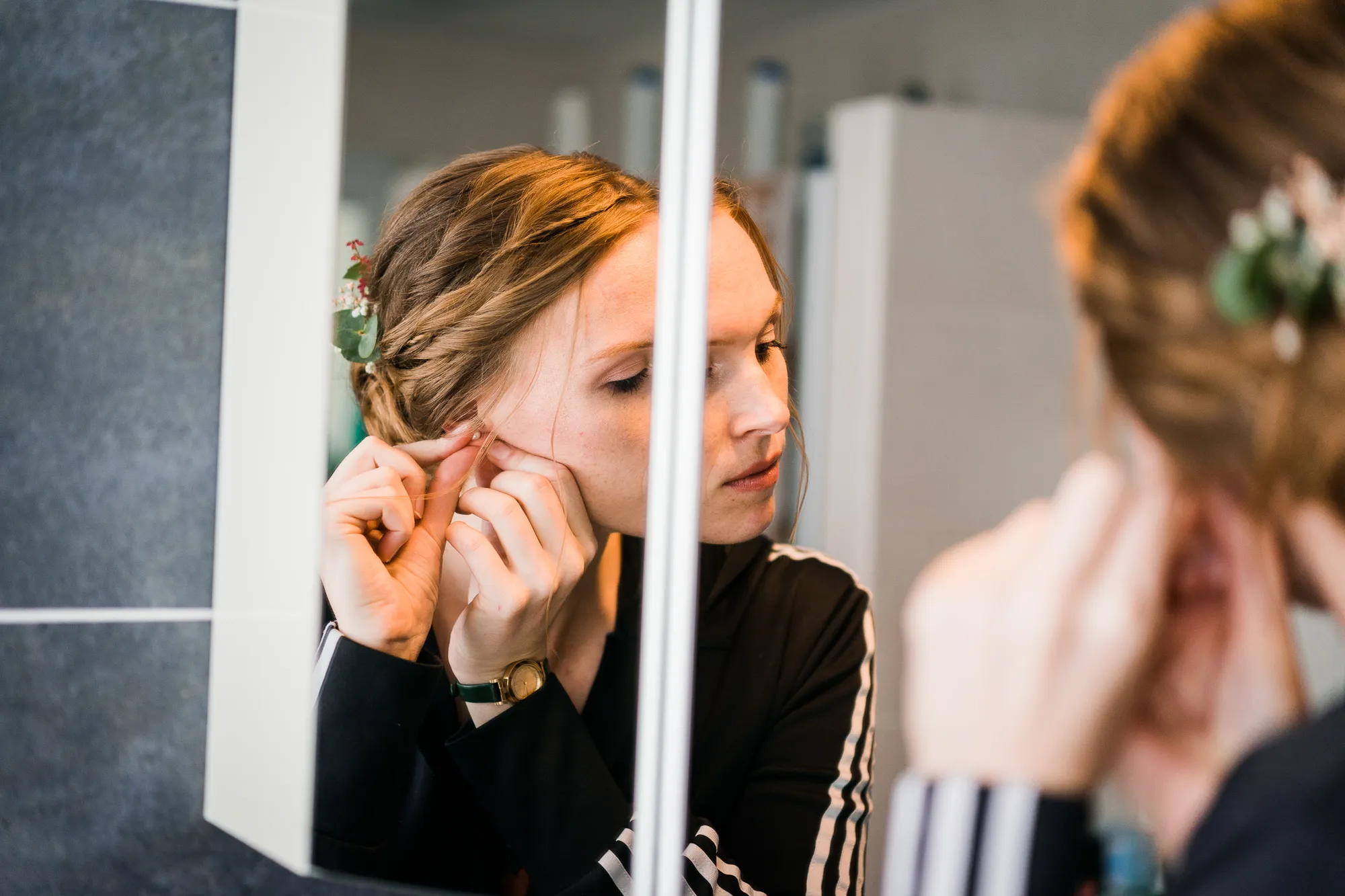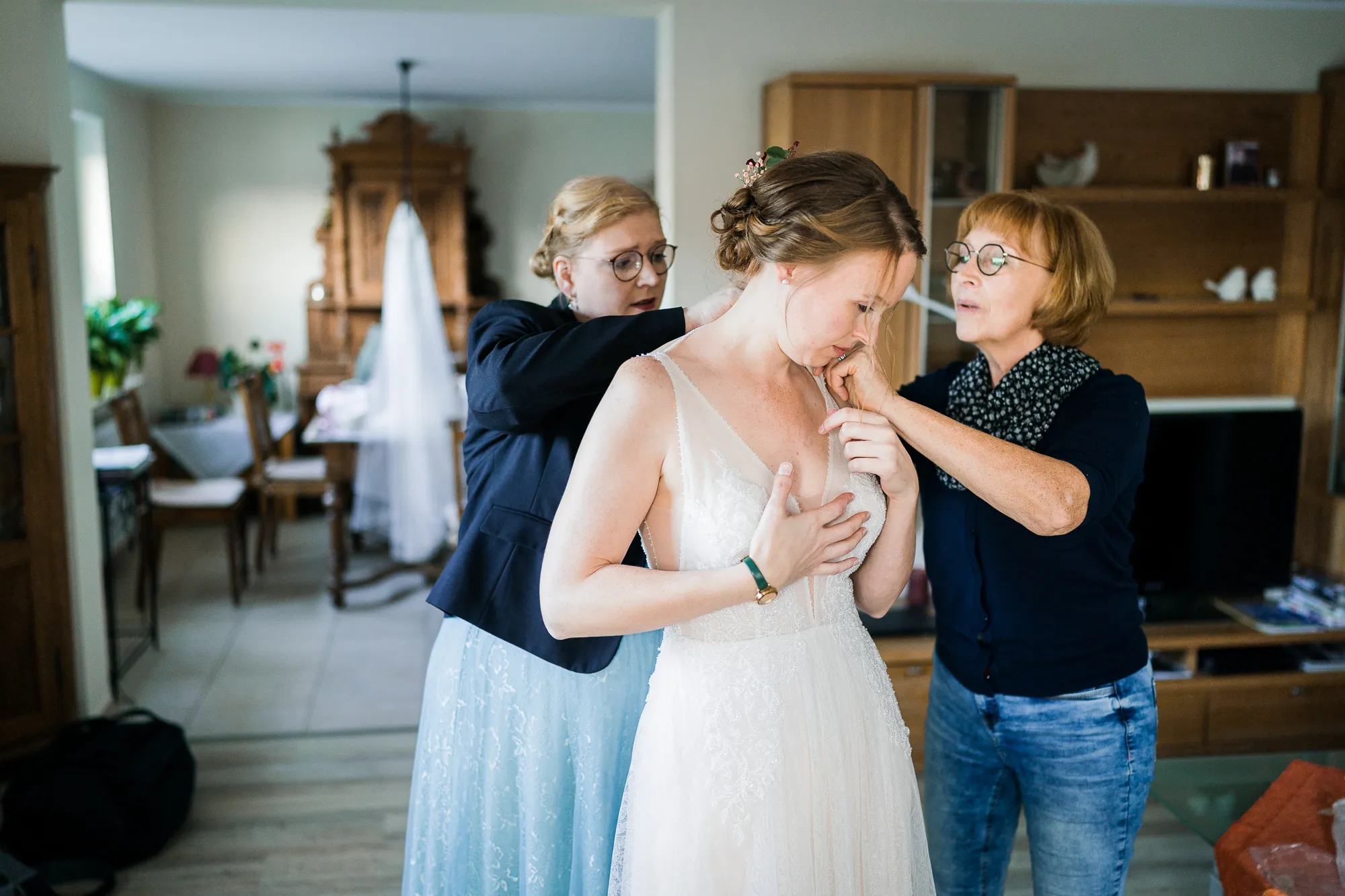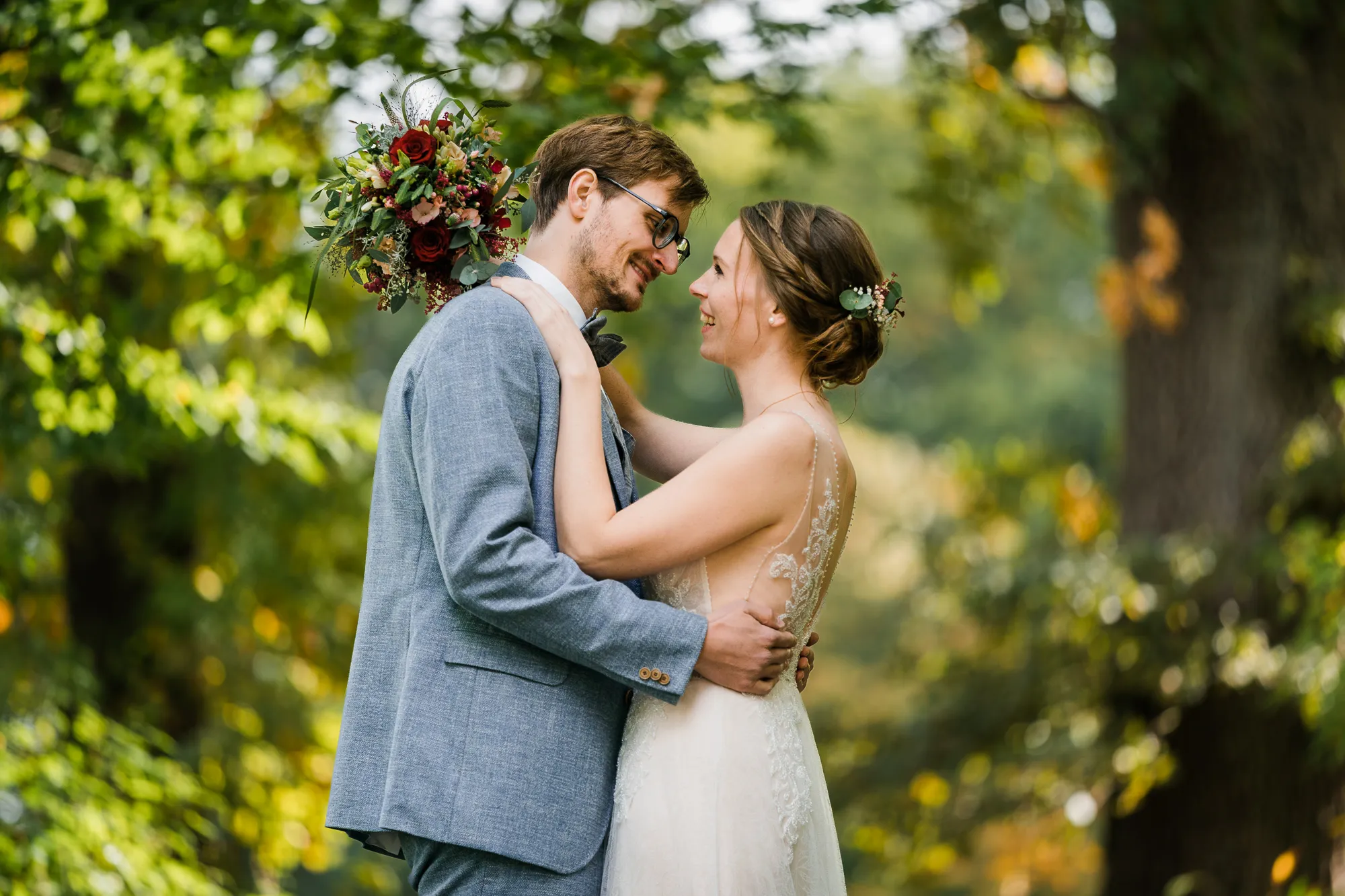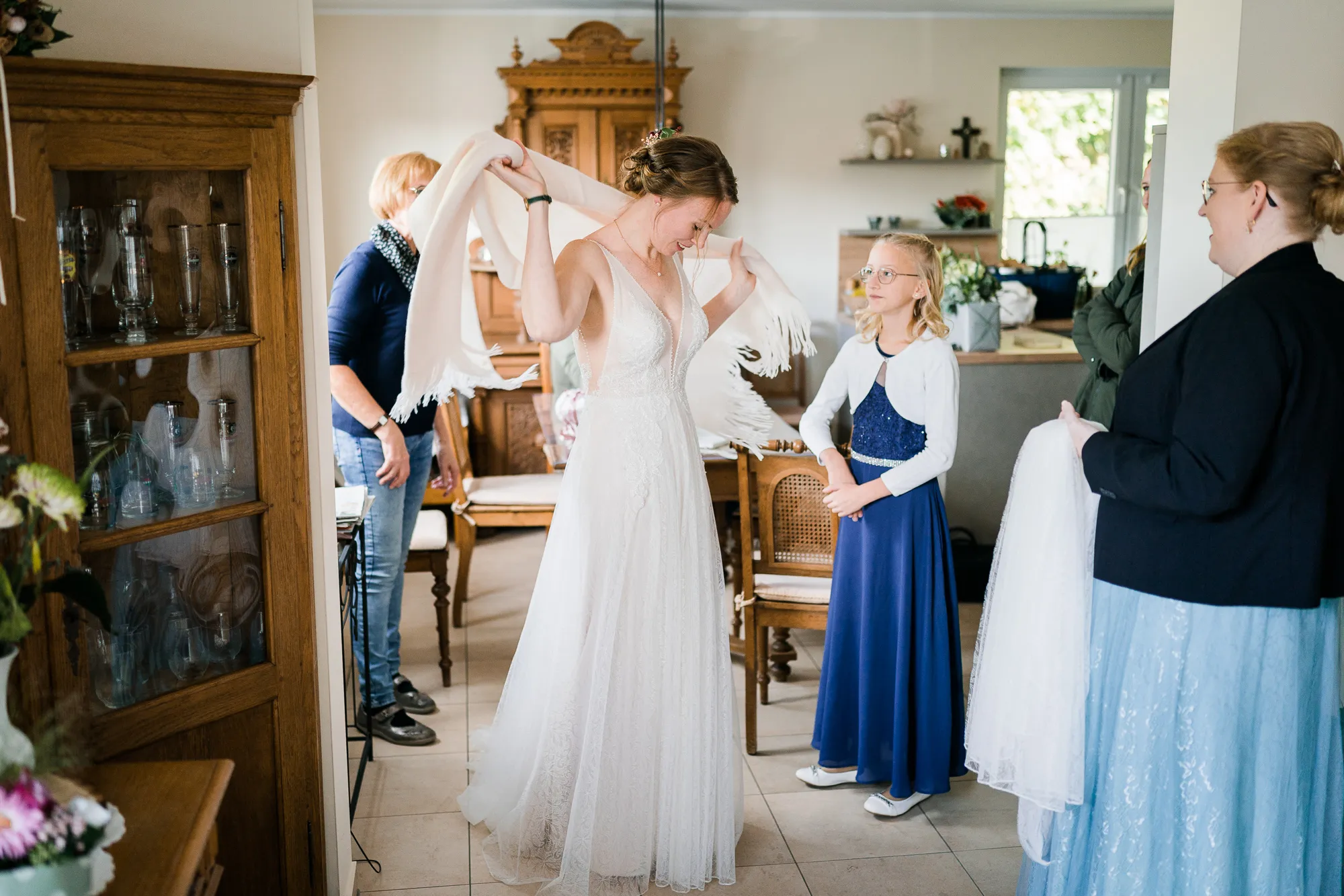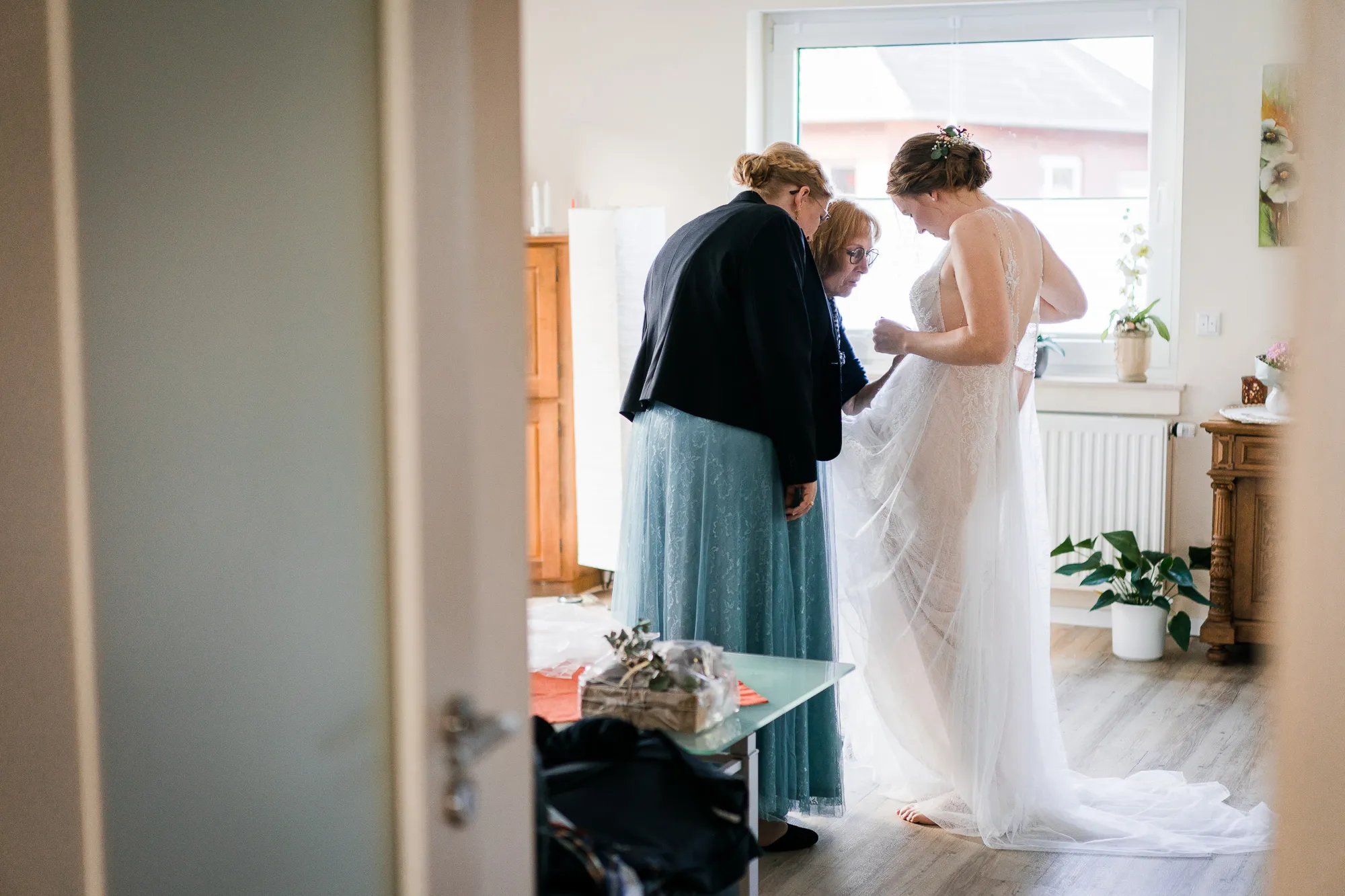 Genau hier hat sich mein Brautpaar auch das erste Mal an ihrem Hochzeitstag gesehen. Wunderbar persönliche Hochzeitsbilder konnte ich machen. Die Bilder sind so warm und persönlich, weil sie die Beiden in ihrem bekannten Umfeld zeigen. Ich kann nur sagen einfach wunderbar.