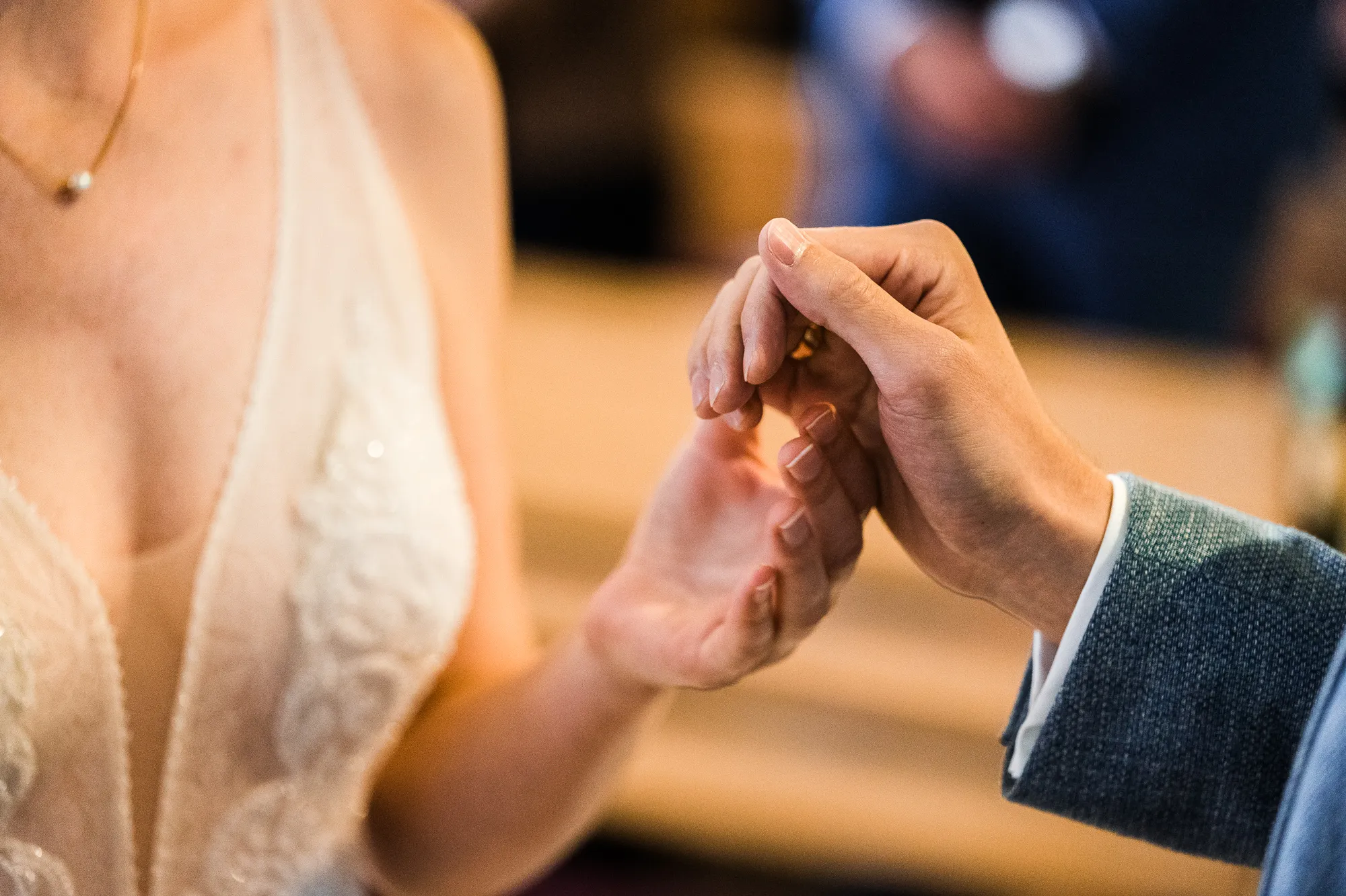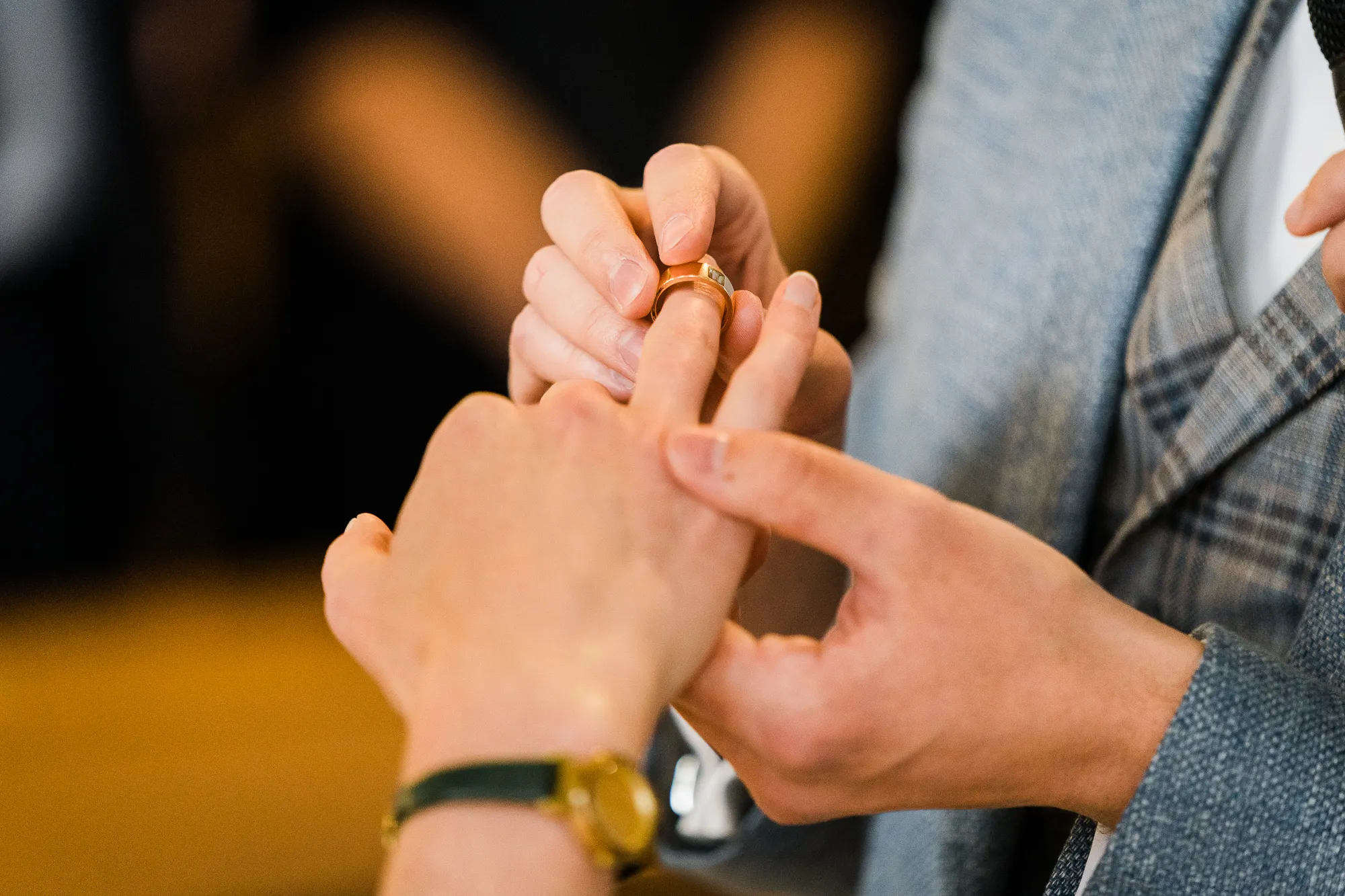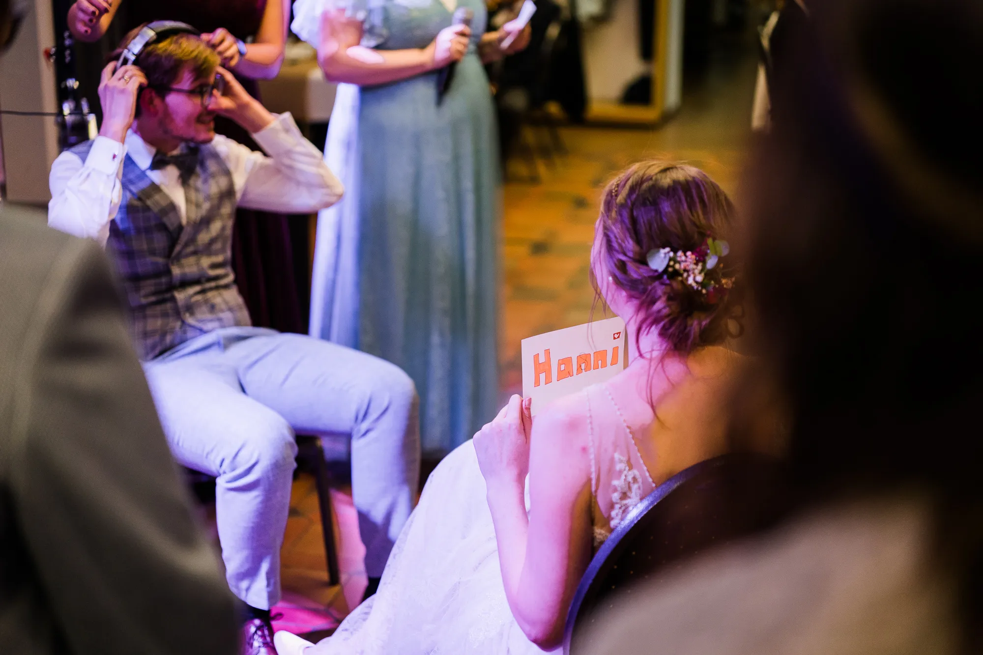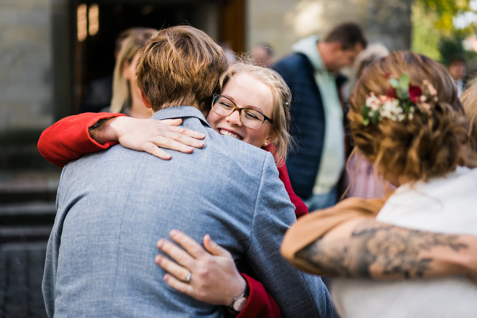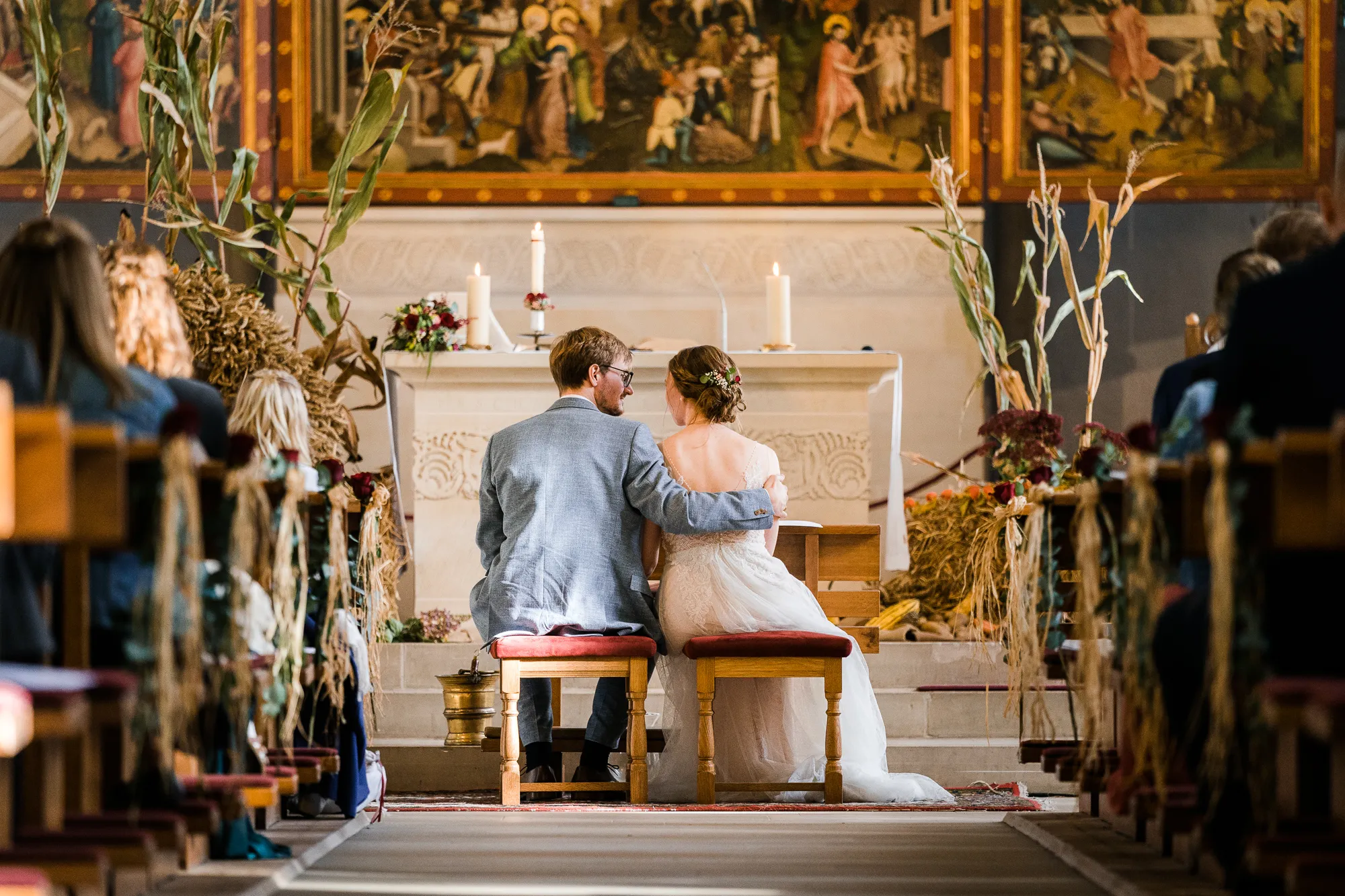 Dann haben wir es tatsächlich gemacht. Wir sind in der richtigen Sekunde nach vorne in Richtung Brautpaar gelaufen und haben deren Bank und Stühle tatsächlich zur Mitte hin verschoben. Ab da passten die Bilder wieder und ich war glücklich. Aber nun zurück zum Brautpaar und deren Trauung, sie war wunderschön mit sehr schönen Momenten.