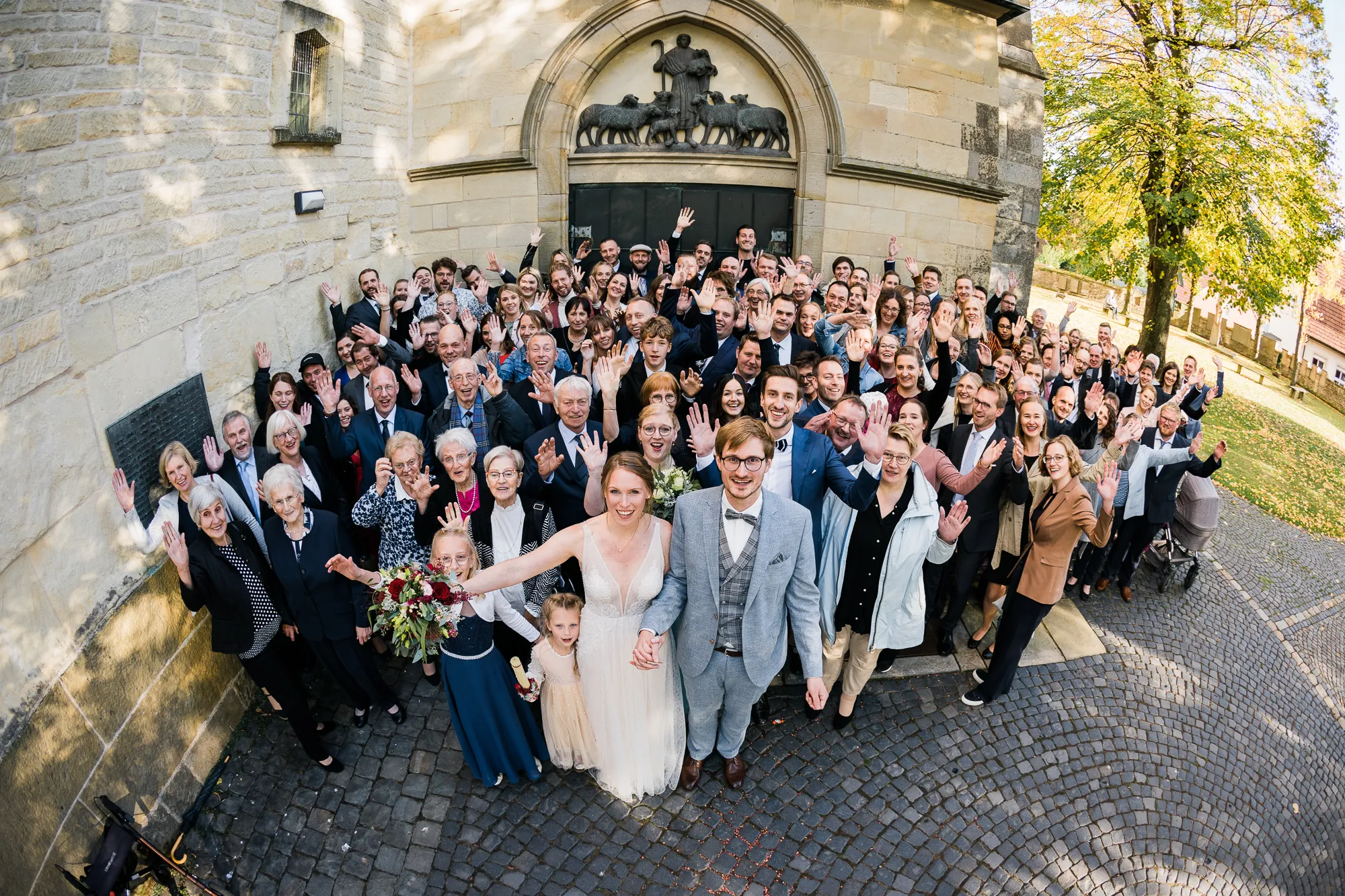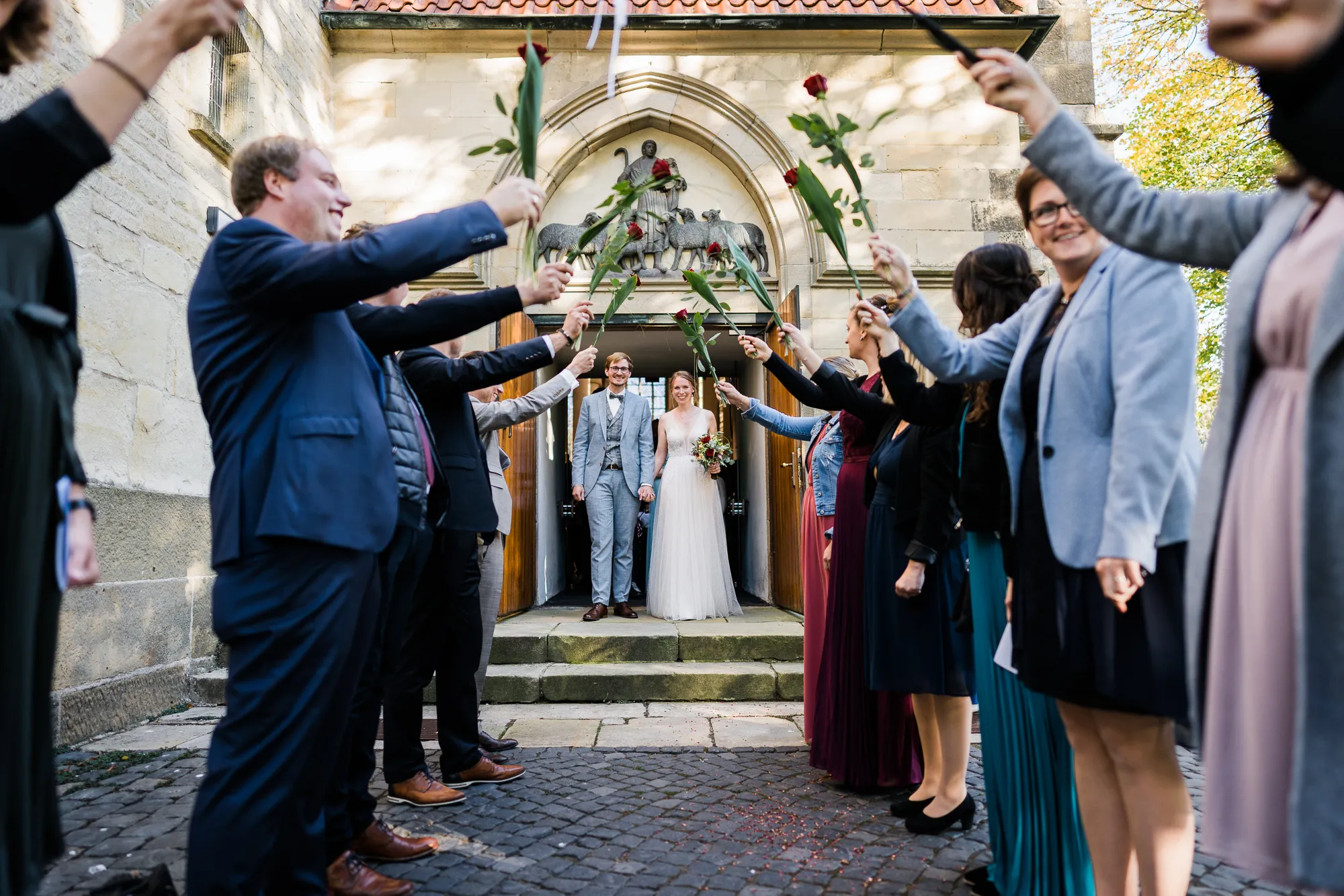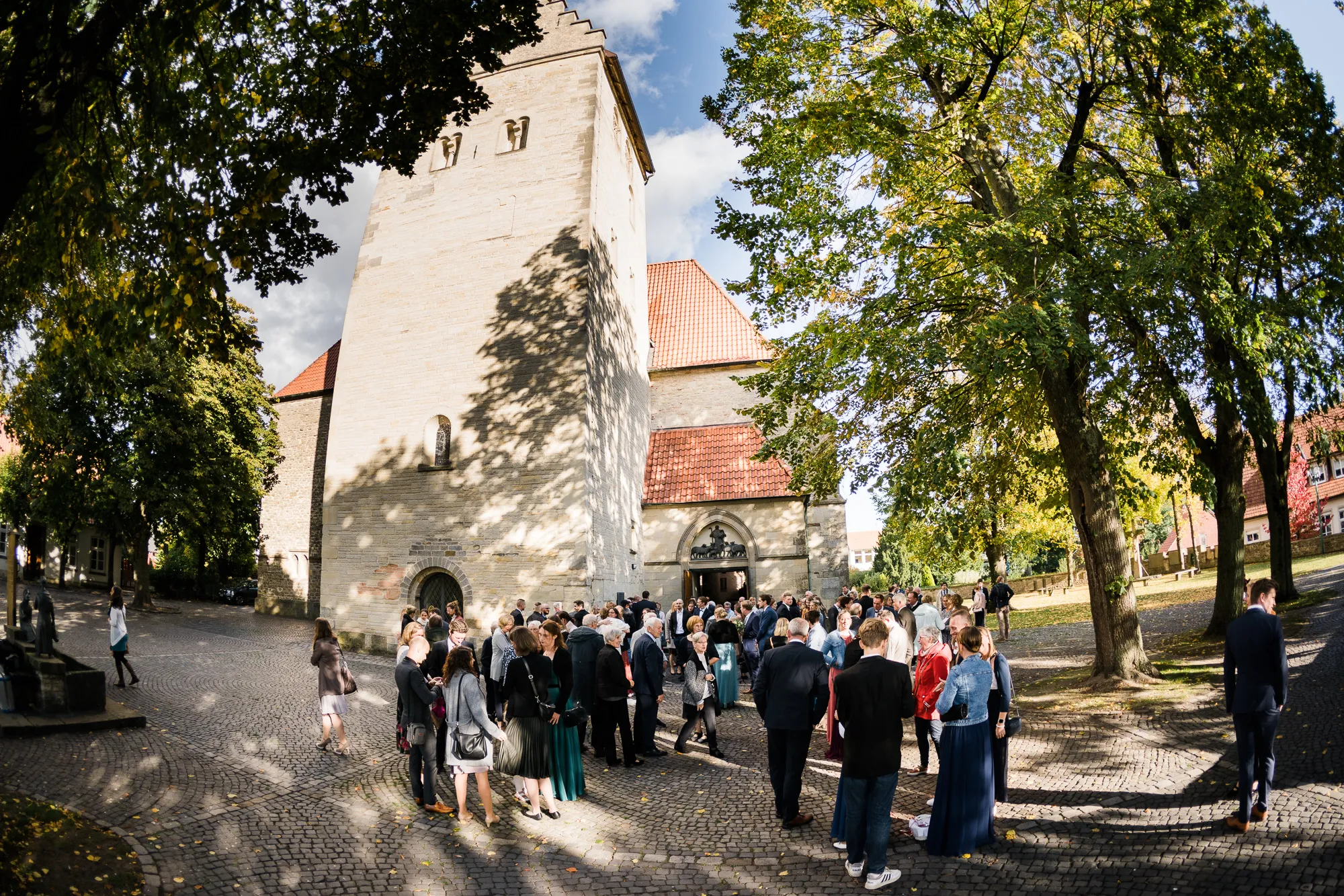 Anschließend haben wir an diesem wettersicheren Ort Familienbilder gemacht. Bevor nun aber alle aufspringen und sich ins Auto setzen um bei Sasse Hochzeitsbilder zu machen, muss ich euch da leider vielleicht etwas enttäuschen. Es war meinem Brautpaar nämlich nur möglich dort Bilder zu machen, weil wir zum einen natürlich vorher gefragt haben und die Braut eine gebürtige Schöppingerin ist. Nur exklusiv für einheimische Schöppinger sei dies möglich. Verwöhnt wurden alle Anwesenden durch eine kleine Sassespezialität im Glas, so dass danach alle leicht Herz erwärmt Richtung Kirche durchstarten konnten.