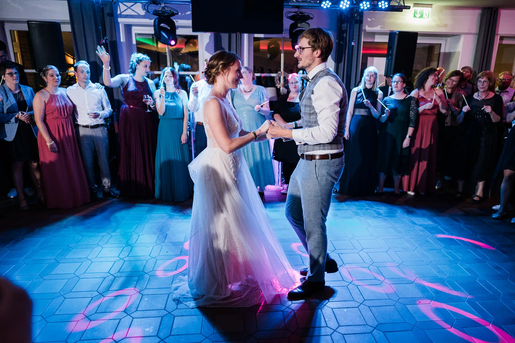 Kurze Wege sind ja was Tolles, aber dass der Weg von Kirche zu Feier Location so kurz wird, hätte ich nicht gedacht. Es waren maximal 3 Minuten Fußweg. Superpraktisch für alle Gäste. Sie konnten einfach rüber laufen. Ziel war die „Alte Post“ ein Hotel und Restaurant https://alte-post-hotel.chayns.net/. Familie Niehoff und Team hat es echt drauf und kredenzte ein super leckeres Essen und ließ keine Gäste verdursten. DJ Thomas Helker, Alias DJ doubledecker http://doubledecker-music.com/ brachte gleich seine ganze Mobildisco mit und heizte den Gästen kräftig ein.
