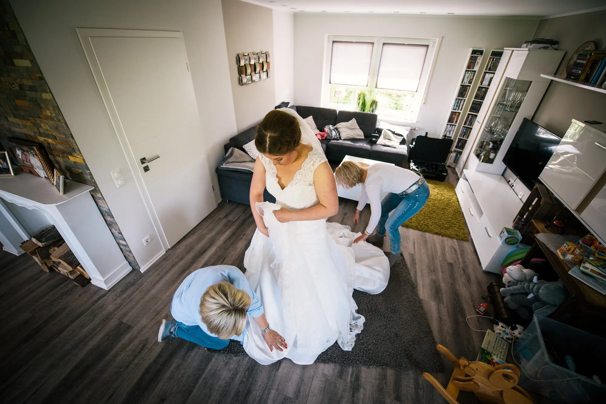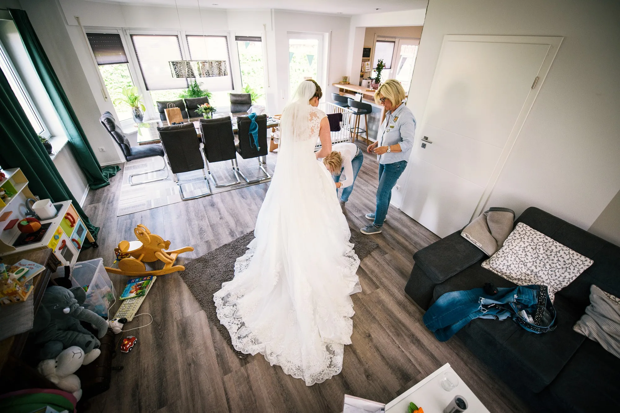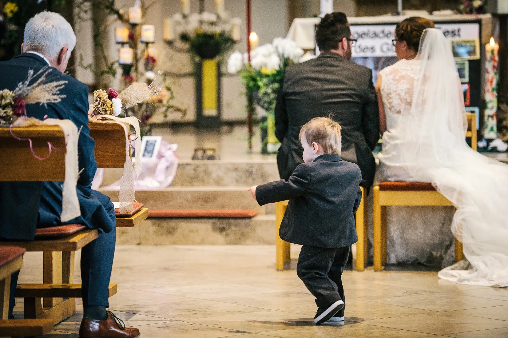 Ja, natürlich war ich da!! Und wie! Typische münsterländische Hochzeit dieses Mal in Wettringen Tie-Esch. Guten Morgen Bilder mit Toilettenwagen, Hochzeitsbogen und Zelt für die Nachfeier. Wunderbar wuseliges Getting Ready mitten in der jungen Familie mit einem zuckersüßen Spatz. Bräutigam und Sohn trugen fast den gleichen Anzug. Echt Cool, der kleine Racker.