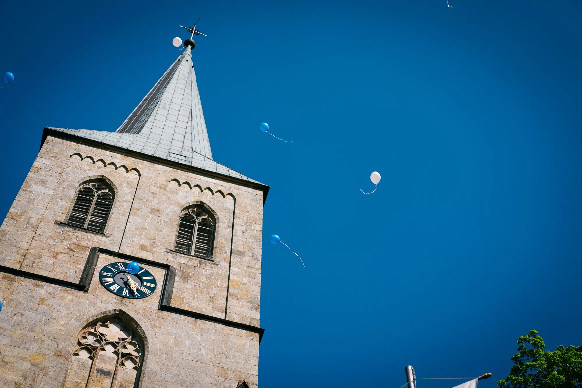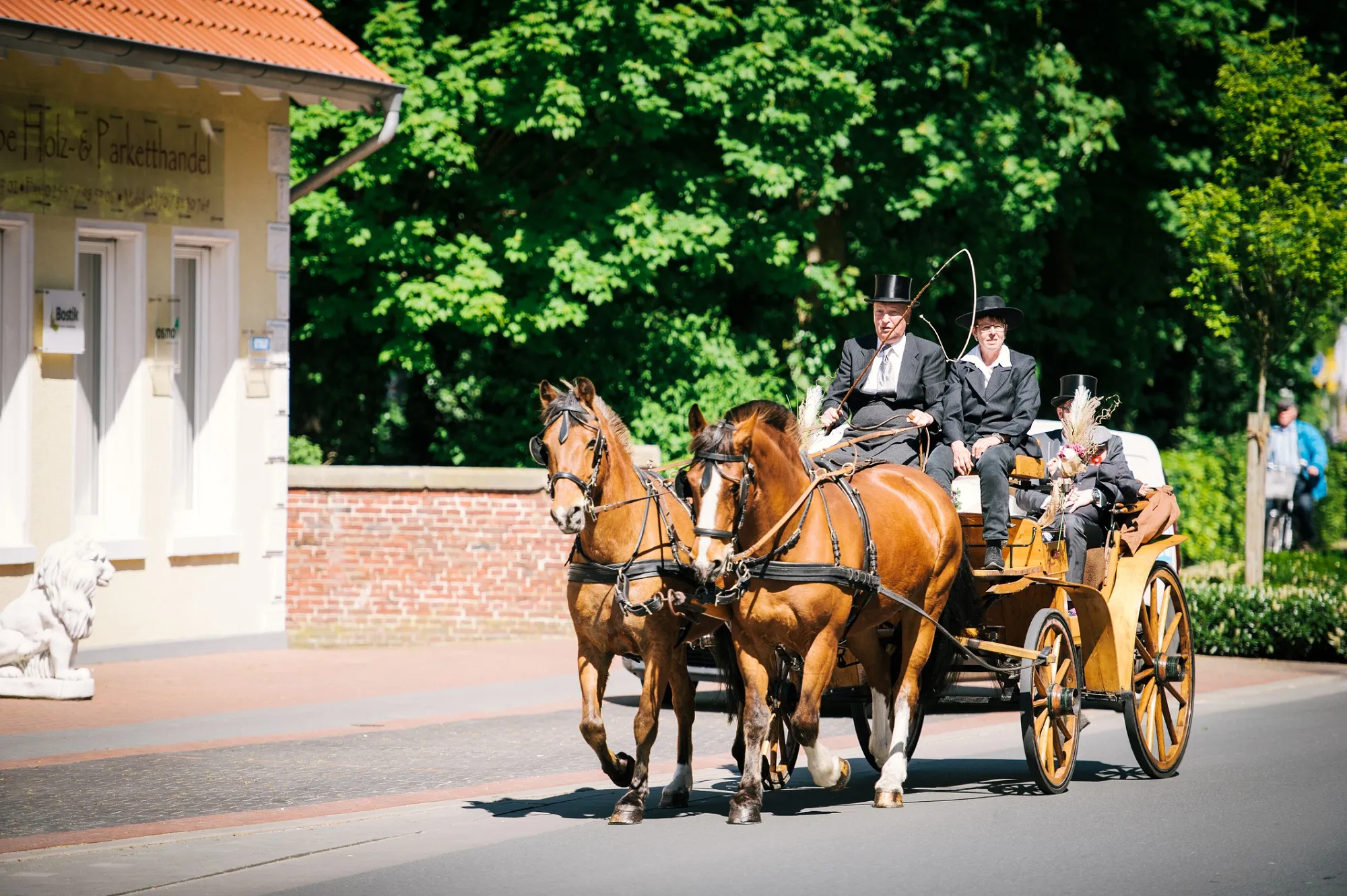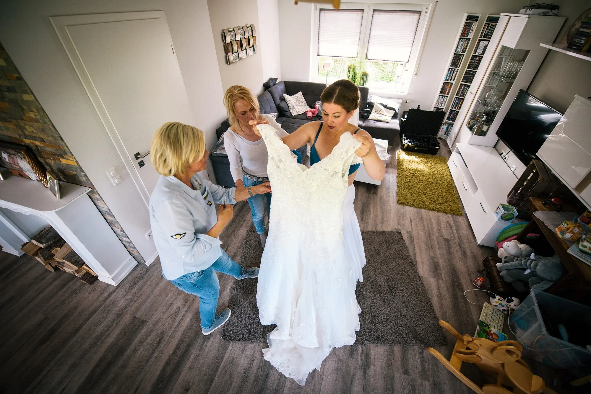Ja, natürlich war ich da!! Und wie! Typische münsterländische Hochzeit dieses Mal in Wettringen Tie-Esch. Guten Morgen Bilder mit Toilettenwagen, Hochzeitsbogen und Zelt für die Nachfeier. Wunderbar wuseliges Getting Ready mitten in der jungen Familie mit einem zuckersüßen Spatz. Bräutigam und Sohn trugen fast den gleichen Anzug. Echt Cool, der kleine Racker.