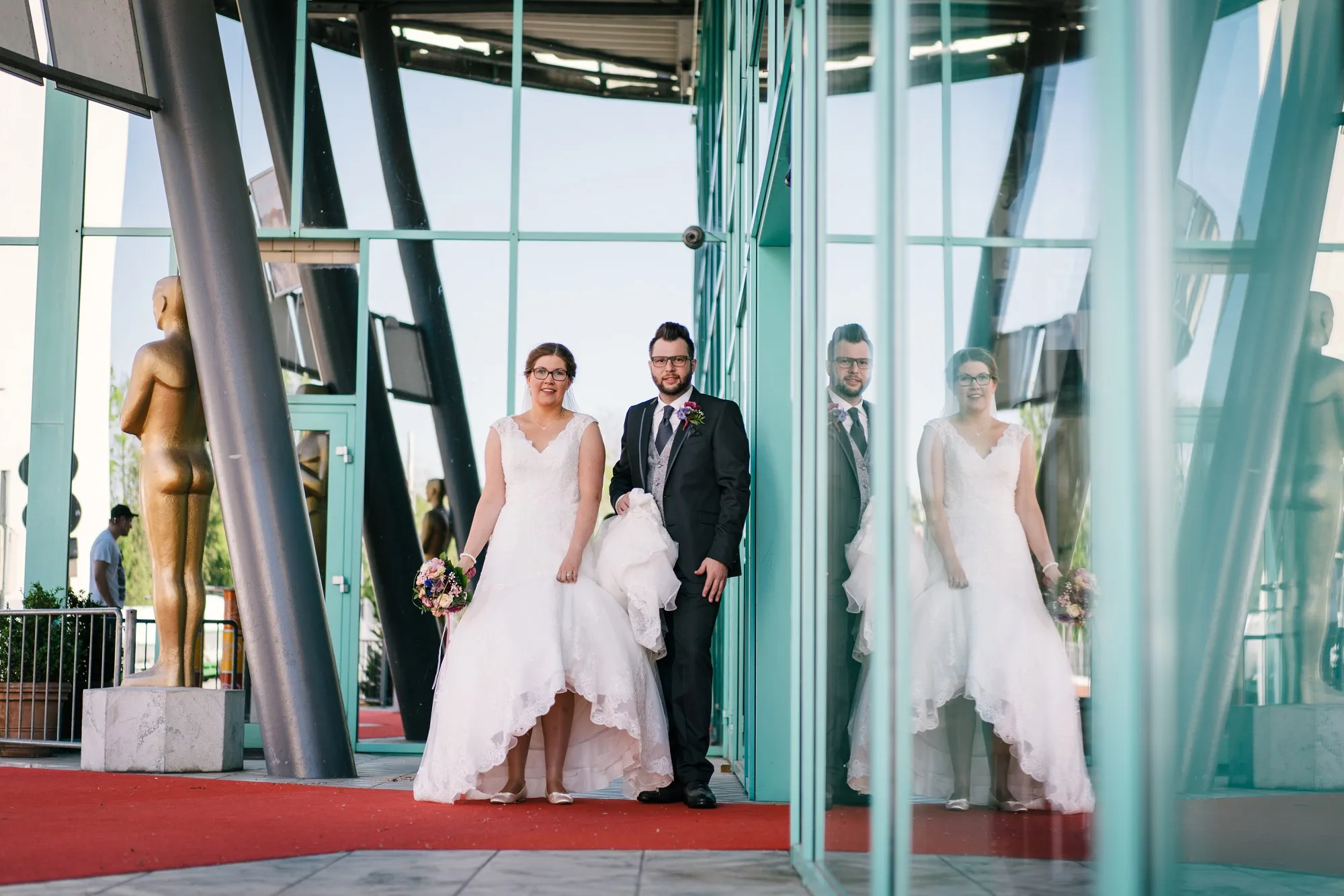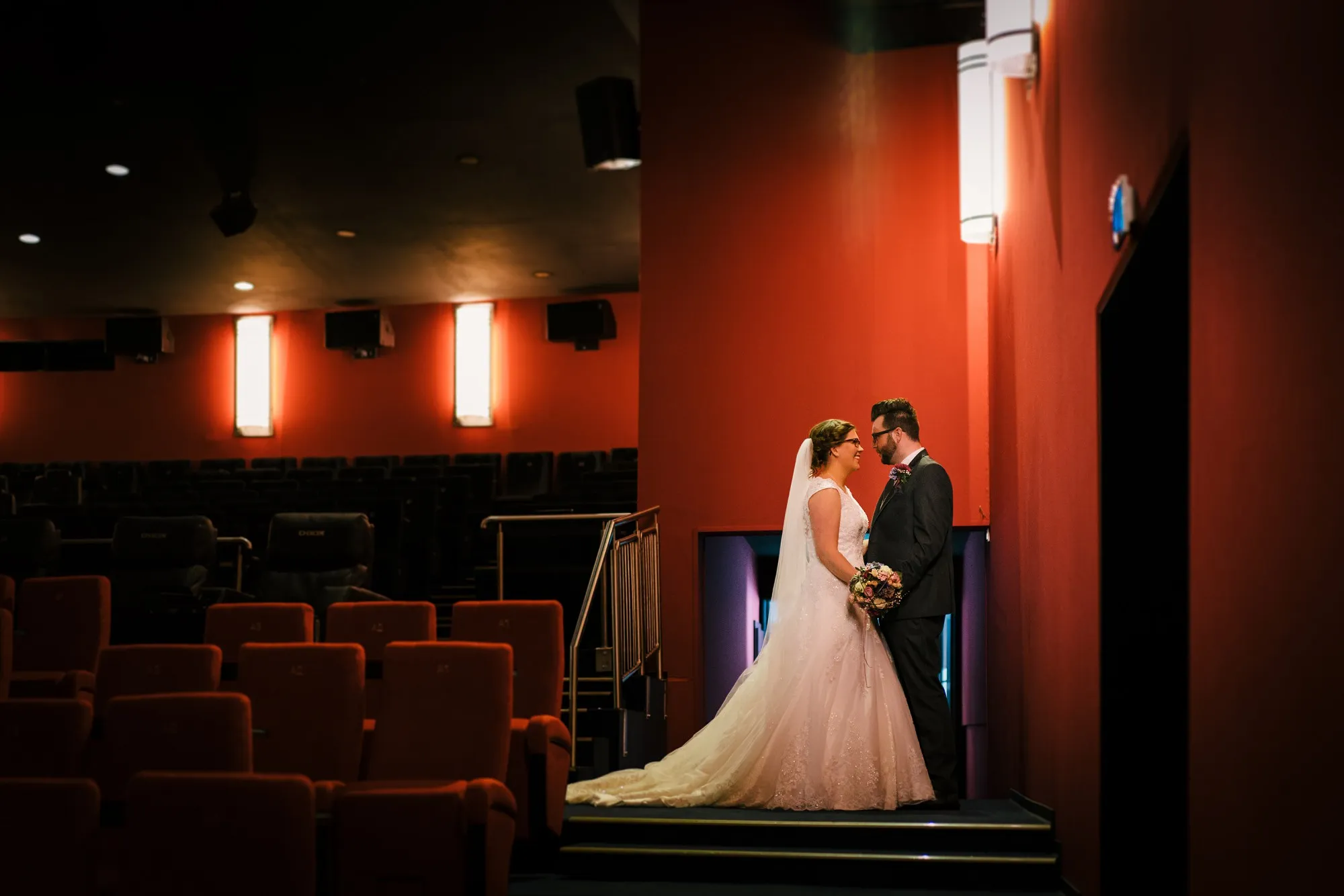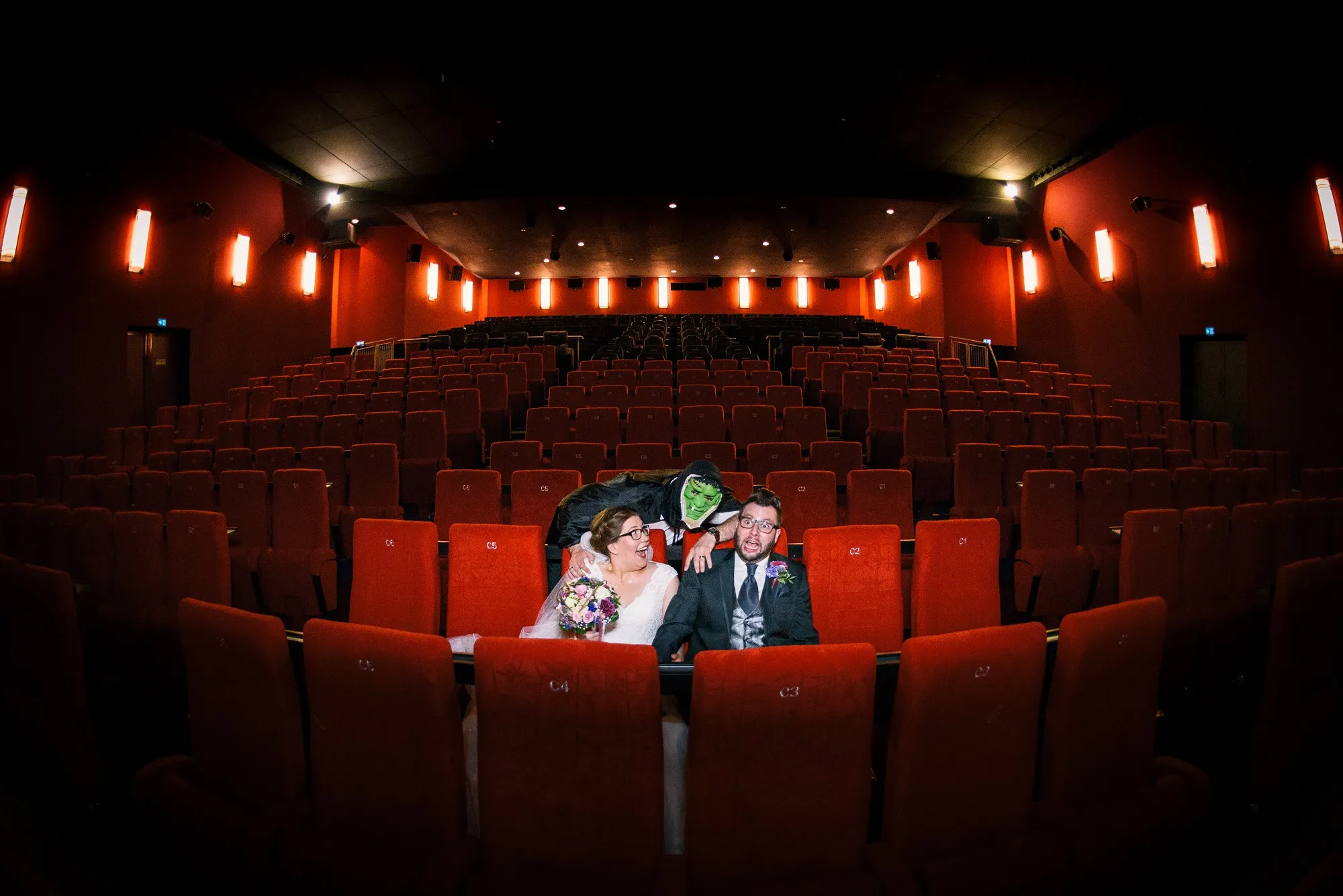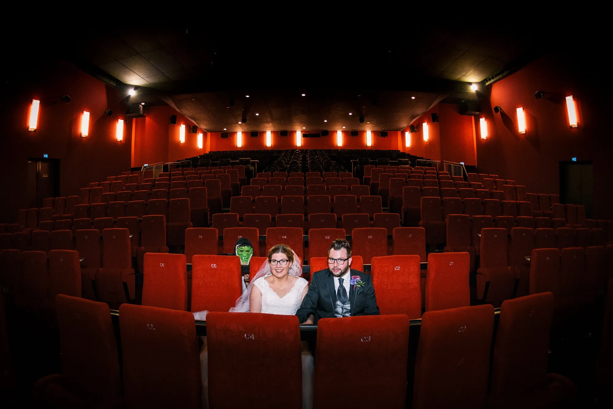 Das erste Date des Brautpaares war im Kino. Beide sind im Fabrik-Theater https://fabriktheater.de sehr aktiv. Für das Paarshooting kam schnell die Idee was theaterliches zu machen. Ab zum Kino in Rheine. Zauberhaft romantische Brautpaarbilder im roten Kinosaal entstanden. Das Filmgenre des ersten Dates kannst du selber erraten ????.