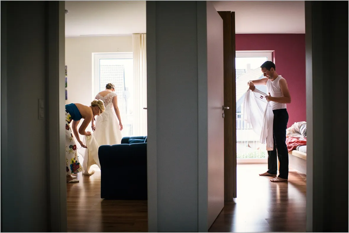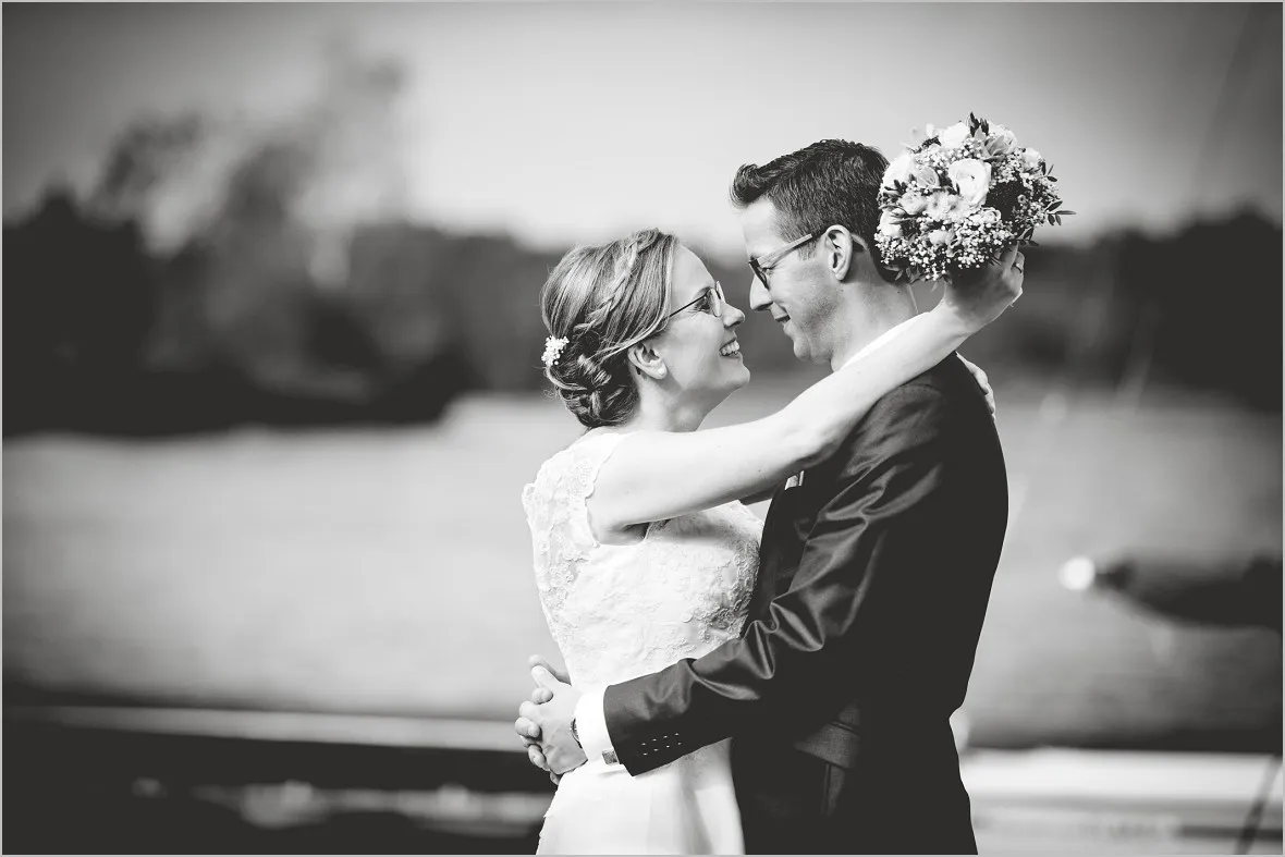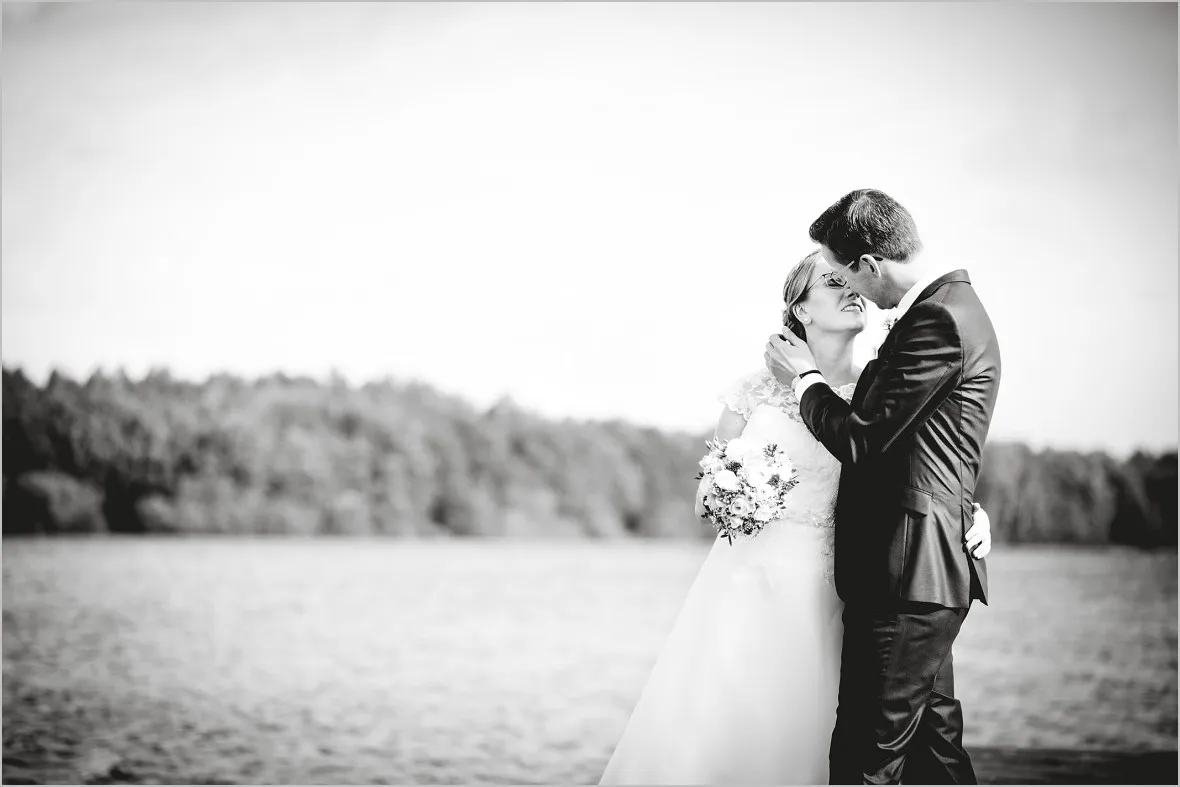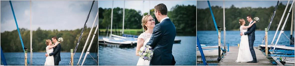 Die beiden haben sich im Internet kennen gelernt. Ich als IT Mensch finde das ja faszinierend, was das WWW alles so hinbekommt. Erstes Treffen war an einem See. Genau da sind wir hingefahren und bekamen wunderbare Hochzeitspaarbilder. Ich kann euch sagen, Schwanenscheiße ist groß! Der ganze Steg lag voll und ich wollte die Braut da nun nicht drüber herlaufen lassen. Ja, Besen sind geil! Wir haben doch tatsächlich einen gefunden. Dann wurde es zwischen dem Brautpaar sehr vertraut und herzlich.