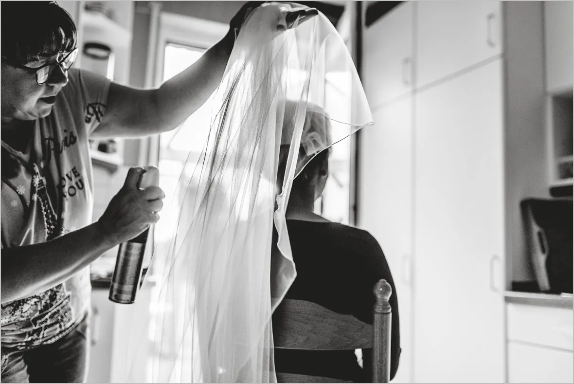 Familie ist doch was Tolles. Erst recht, wenn man so viel davon hat. Wunderbar wuseliges Getting Ready der Braut in ihrem Elternhaus. Die beiden schenkten sich ein sehr emotionales Erstes Sehen. Toll, dass ich als Hochzeitsfotograf dabei sein durfte.