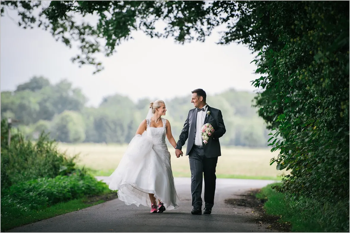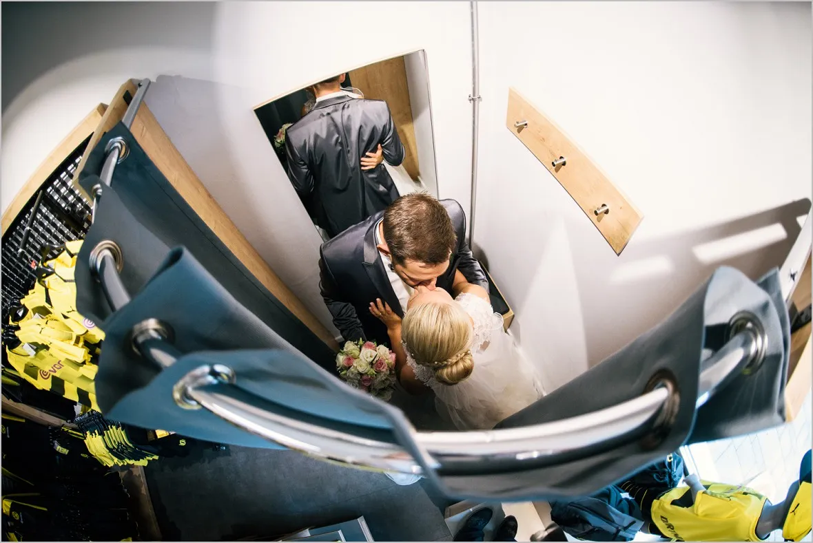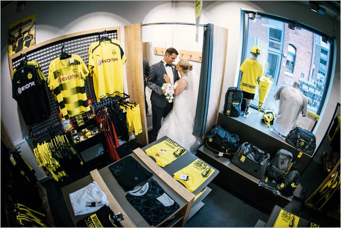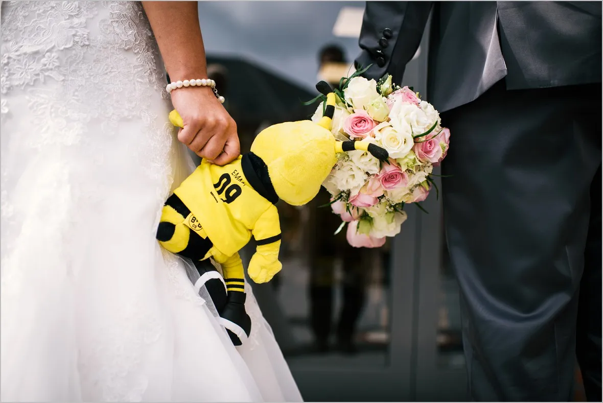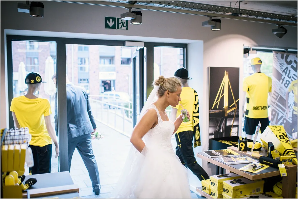 Regen. Ja und wie. Sprühregen von unten. Gott sei Dank ist mein Brautpaar ist aber wasserfest. Wir machten sehr tolle Bilder in der Natur und im BVB Fanshop in Ochtrup. Er ist in Dortmund aufgewachsen (welche Fangattung er angehört, muss ich, so glaube ich, nicht sagen 😉 ), hat sich in Sie verliebt, ist nach Ochtrup gezogen und hat irgendwie nun Beides.