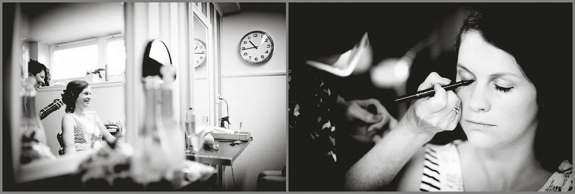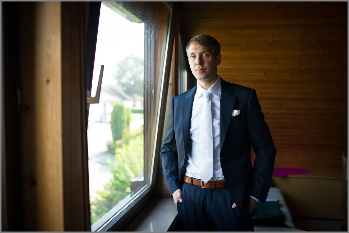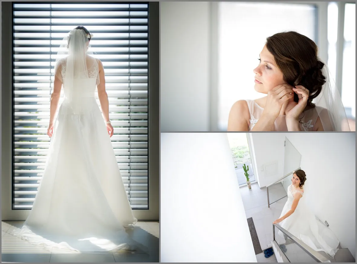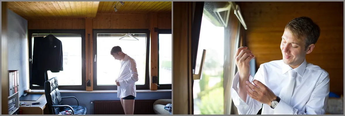Früh morgens fing es schon an. Das Glück. Das Licht konnte nicht besser zum Fenster hereinkommen und sagte dem Schatten „Guten Morgen!“. Wir lachten viel und es machte sich eine gewisse Leichtigkeit bei meinem Brautpaar breit. Hochzeitsreportage im Kloster Bentlage, nicht wegen der Trauung dort, sondern wegen der Interessanten Übernachtungsmöglichkeit meines Paares in einem der Torhäuser, cool! Es war warm sehr warm. Gott sei Dank war die Ems gut zu erreichen. Und „Wasser“ kann so gut schmecken….!