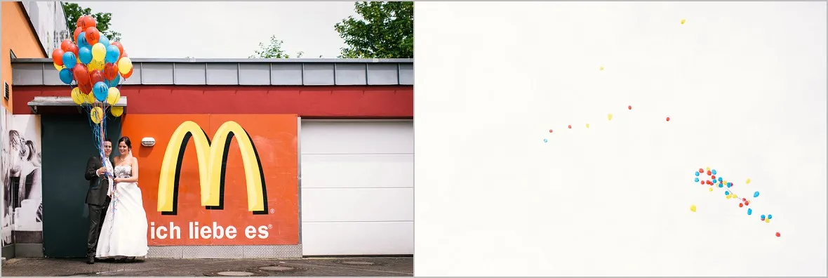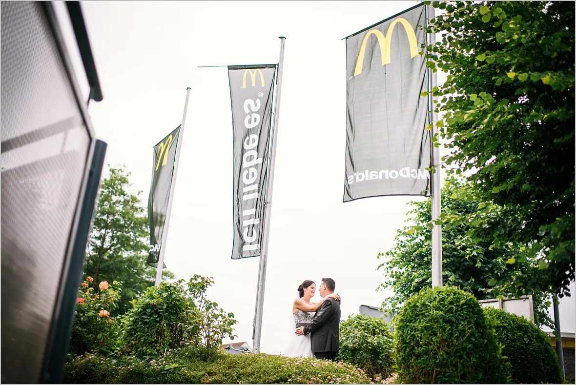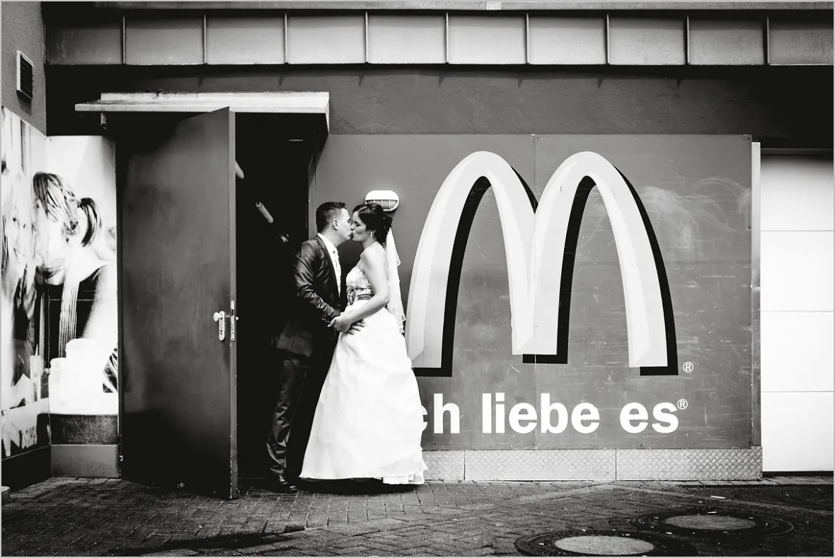Das ich mal als Hochzeitsfotograf nach Borken komme, konnte ich mir schon vorstellen. Aber es kam noch besser! Brautpaarshooting bei Mc Donald‘s! Geil. Mein cooles Pärchen erzählte, dass sie sich dort durch den Job kennen gelernt haben und auch dort Bilder machen wollen. Super! Es entstanden super coole Bilder mit einer großartigen Bedeutung für die Beiden. „Ich liebe es!“.. SIE …IHN Weiter ging es in der Natur mit ganz berührenden und liebevollen Pärchen und Familien Bildern. Nach der Trauung in der wunderschön geschmückten St. Johannes Kirche Borken wurde im Haus-Waldesruh gefeiert bis die Sonne „Guten Morgen“ sagte. Stammtisch zu mir: Mach mal n Foto von uns…. Ich: Na dann kommt mal mit… Bier und Zigarren mitnehmen! 😉 Was für ein super cooles Wedding-Homie-Big-Picture! Liebes Brautpaar, Ich sage Danke!