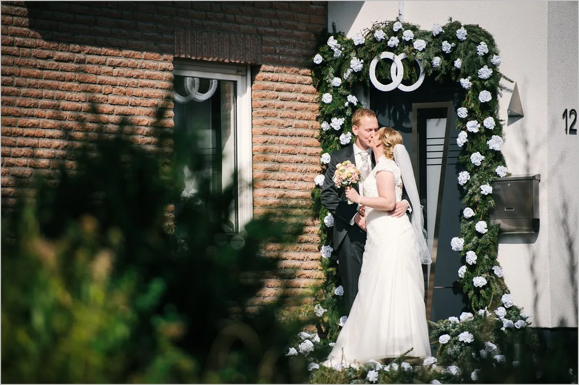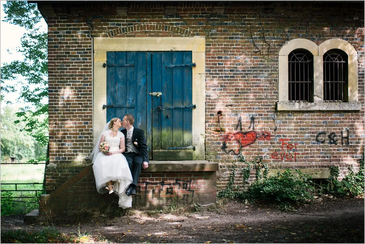 Das ist das Erste, was mir als Hochzeitsfotograf zu Legden in den Sinn kommt. Dieser kleine bezaubernde Garten war echt ne harte Nuss, die ich zu knacken hatte. Ich wollte unter allen Umständen keine Gebäude, die ringsherum stehen, mit auf dem Bild haben. Ich bin echt ne Woche vorher mit meiner Familie dort gewesen um Positionen zu suchen. ;)) Gefunden! Am Tag meines Brautpaares gabs noch leichten Wind dazu. Grandios!