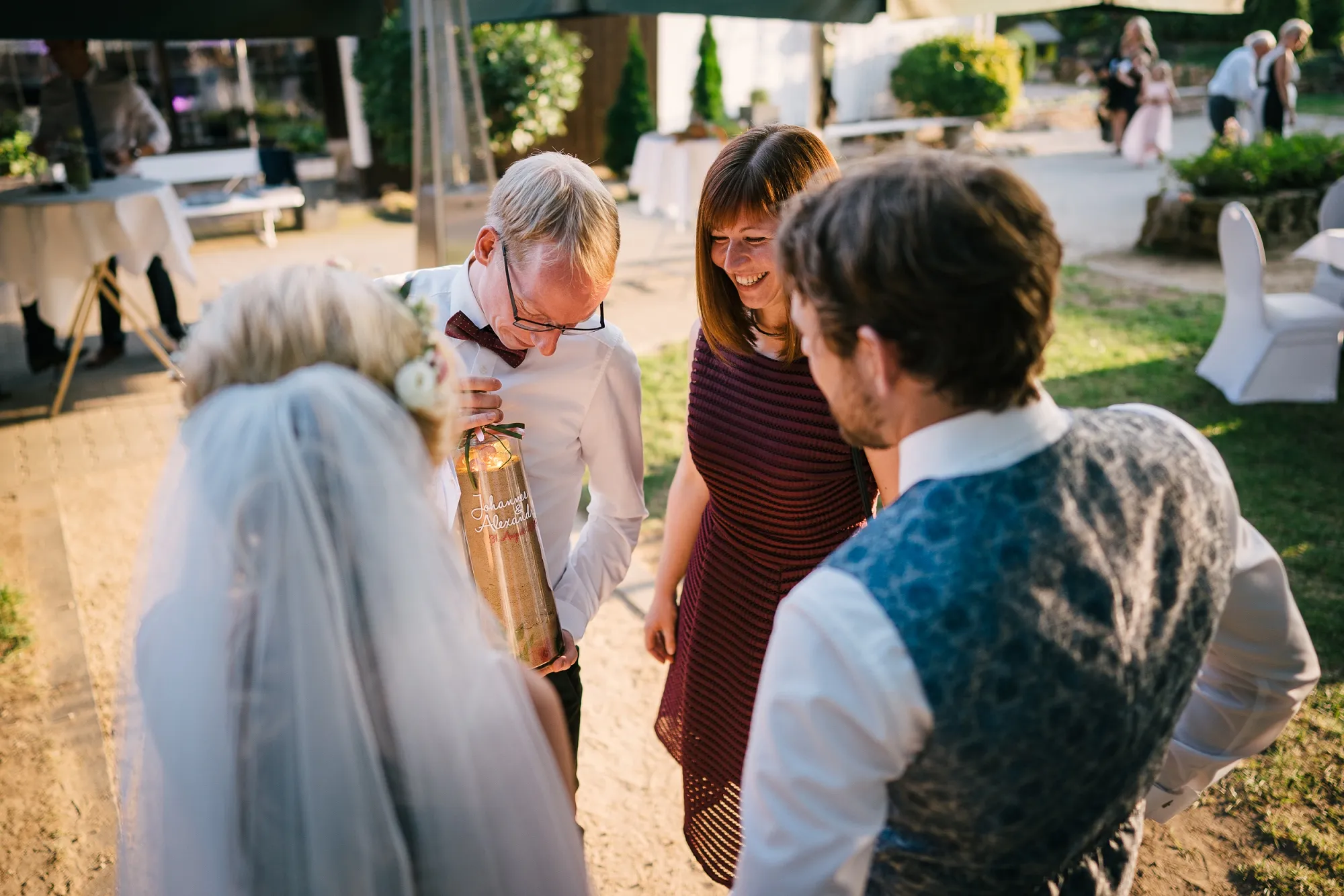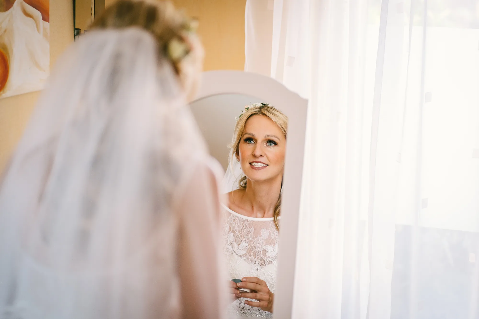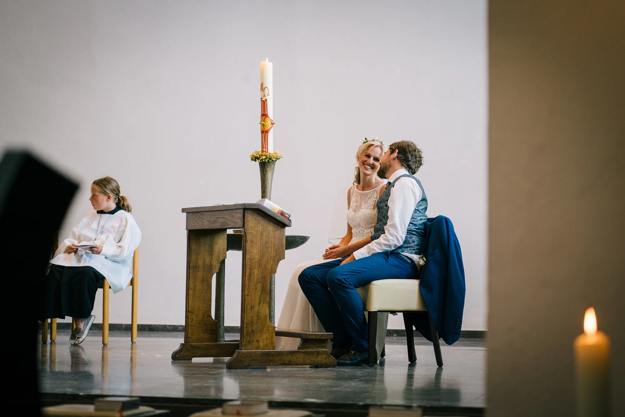 Was für ein Zufall. Die Braut rief mich damals zur Buchungsanfrage an und ich musste ihr leider absagen, da ich schon ein anderes Hochzeitspaar an dem Tag begleiten würde. Sie war echt traurig darüber und mir fiel es auch ehrlich gesagt recht schwer abzusagen. Wir kannten uns schon etwas durch eine andere Hochzeit, wo sie Gäste waren und ich fotografierte. Dieses „Wie macht der das und wie ist der so?“ waren der Grund, warum sie nur mich wollten. Selbst die Hochzeitsfotografen-Empfehlungen, die ich ihnen gab, wollten nicht so recht passen. Nun ja, die Zeit verging. Dann kam plötzlich eine Absage des Brautpaares, welches ich schon fest in meinem Kalender stehen hatte. Sie würden Eltern werden und müssten die Hochzeit verschieben. Nun hatte ich also einen Tag wieder frei. Ich schaute in meine Absagen-Emails und erinnerte mich an dem Brautpaar, dem ich wehmütig absagen musste. Ich meldete mich und fragte, ob sie noch auf der Suche nach einem Fotografen sind. Sie war völlig aus dem Häuschen, hatten noch keinen festen Fotografen und buchten mich. Was für ein Zufall! Hochzeitsfotograf in Rheine mit Glück!