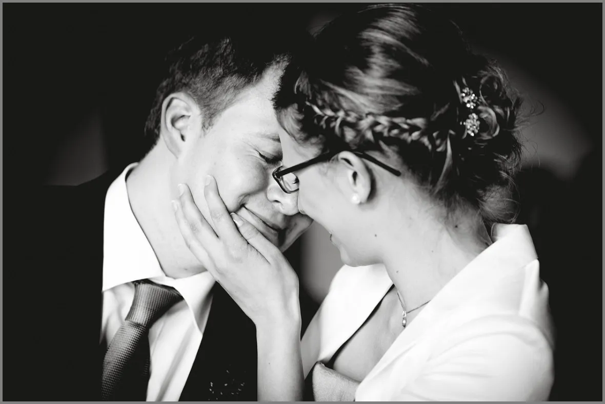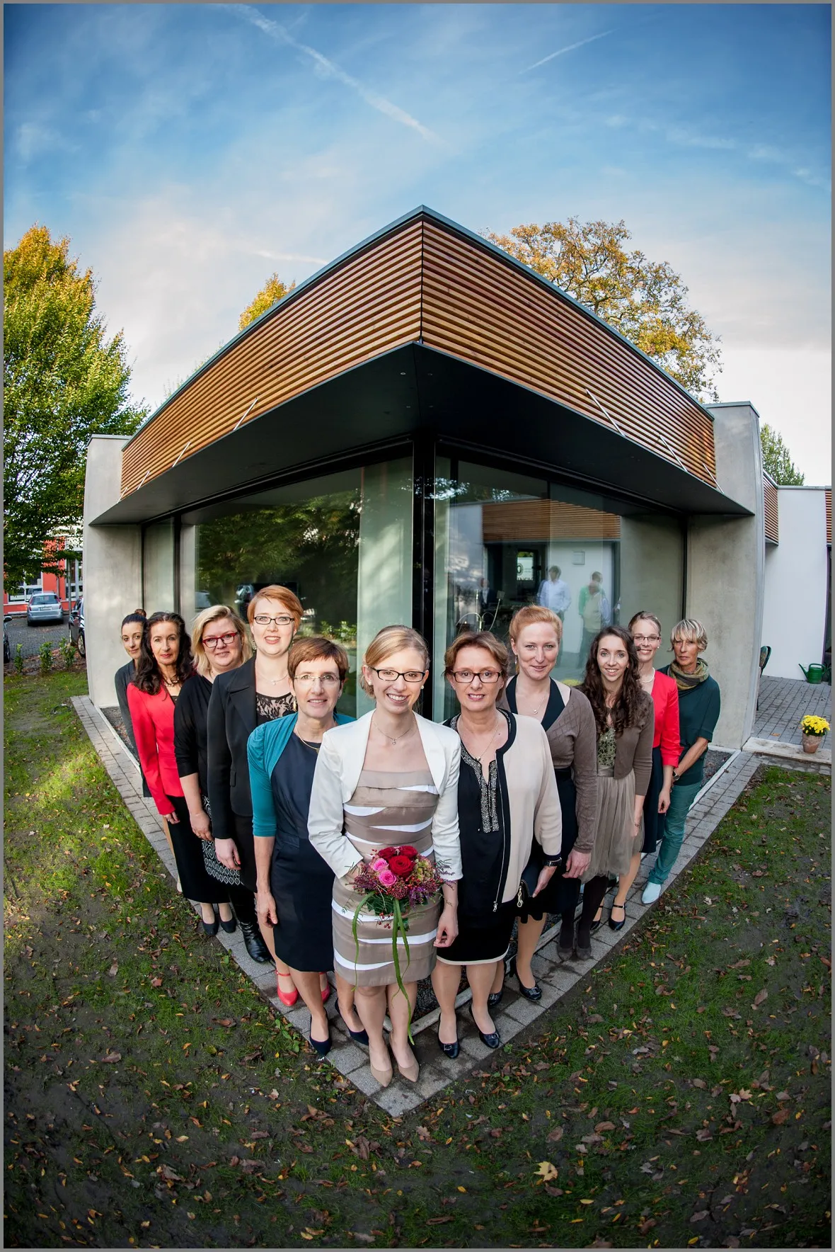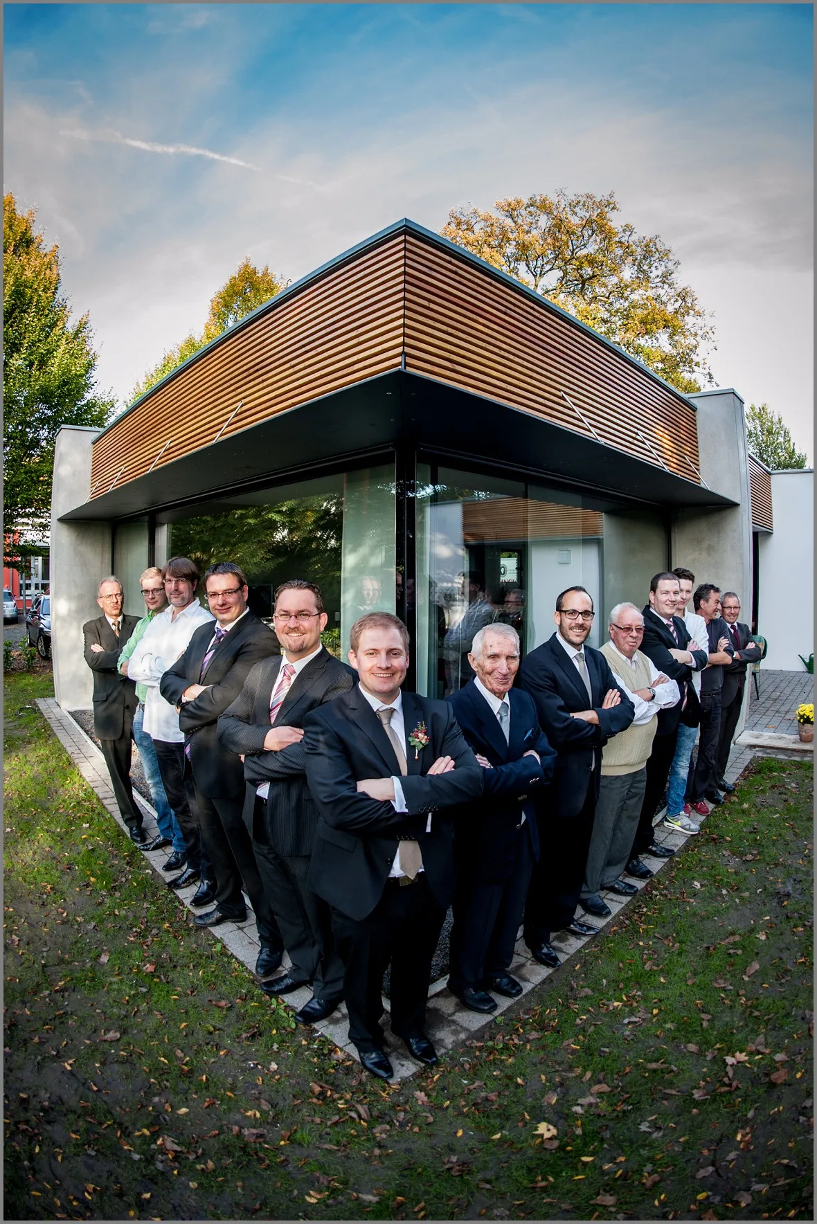Hausbau, Umzug, Hochzeit! Kannst du unsere standesamtliche Hochzeit fotografieren? Gerne! Die Hochzeitsreportage unter Freunden war mir eine Ehrensache. Alles sehr entspannt. Die Villa Winkel ist der Heiratsort in Ochtrup, dieses Mal mit einen Hochzeitsgratulantenpanorama. Mein Brautpaar wünschte sich kurze Wege. So entschieden wir uns, das eigene Haus als Location zu nutzen. Ich muss zugeben, in die Holzfassade hab ich mich verliebt. Tolles Paar mit toller Ausstrahlung. Braut und Bräutigam, wir sehen uns spätestens auf der Kirchlichen! Da bin ich dann Vollgast;)