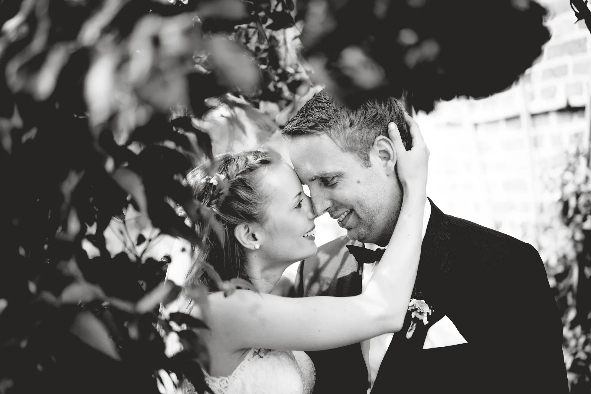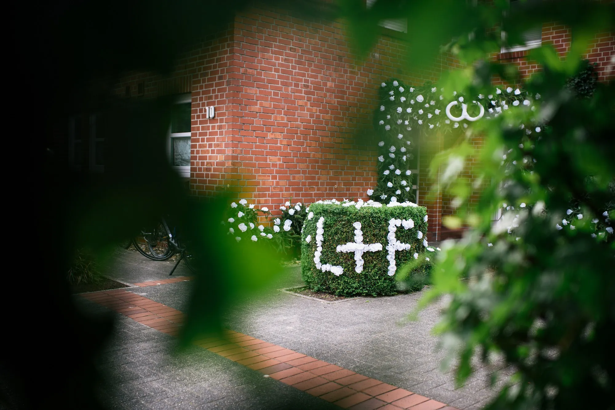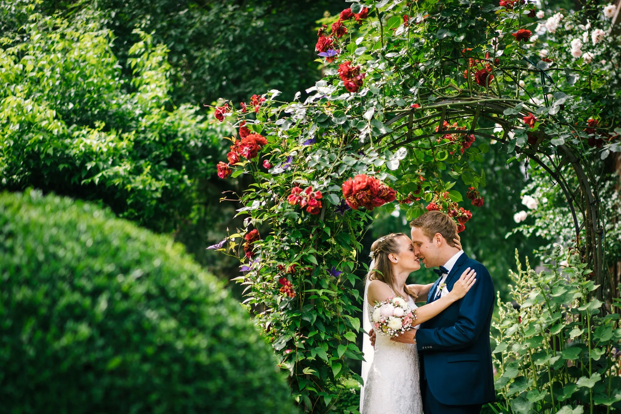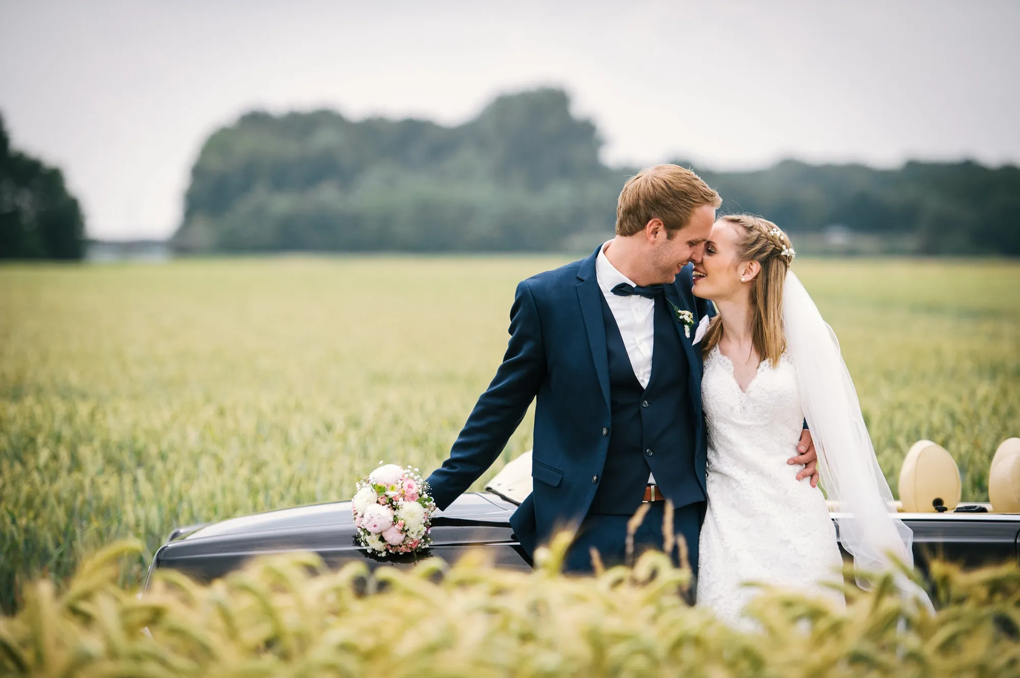 Danach zum Tennisplatz mit Zwischenstopp im Kornfeld und dann zum Hochzeitsbogen an der Wohnung. Traumhafte Paarbilder!