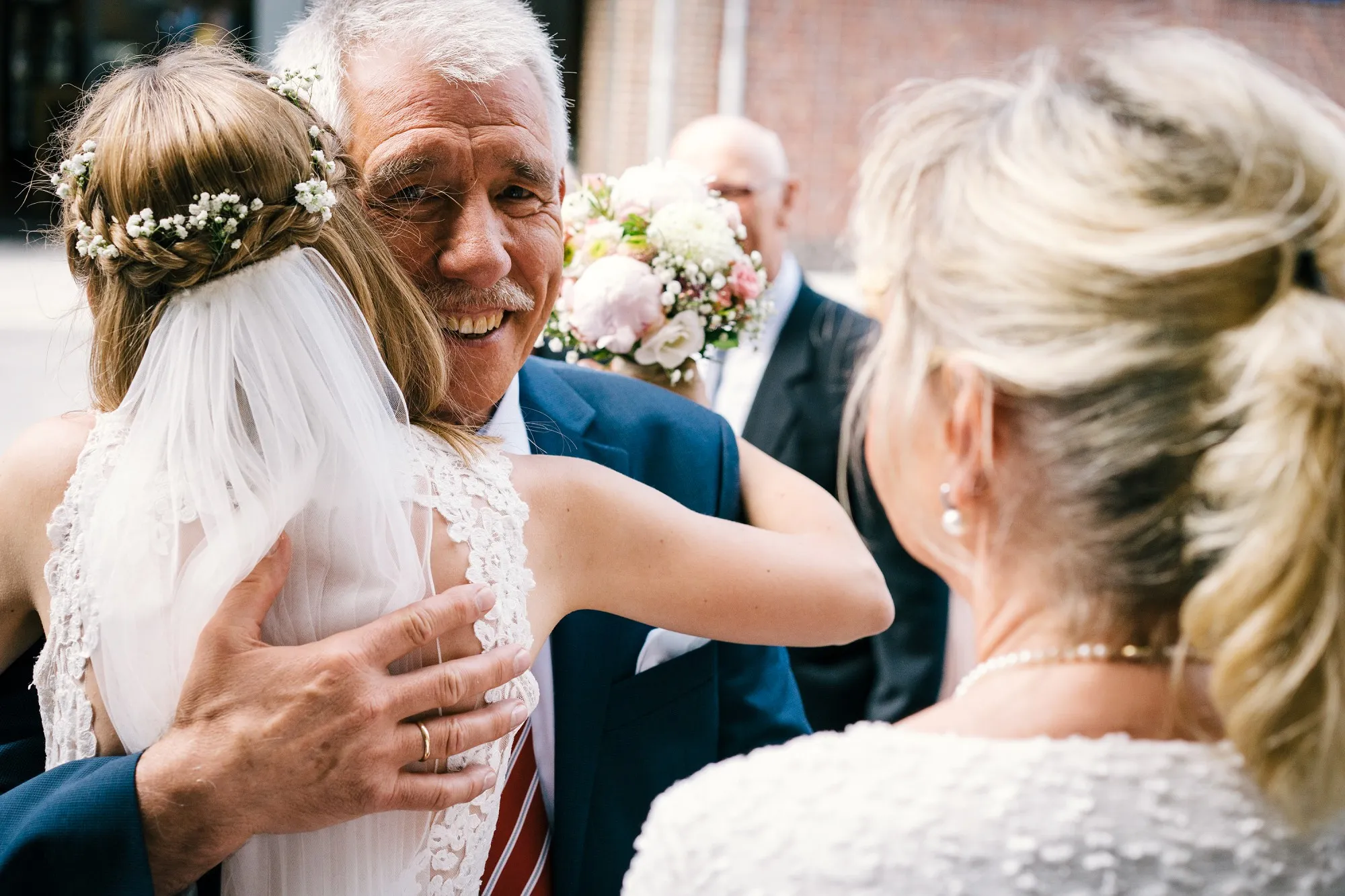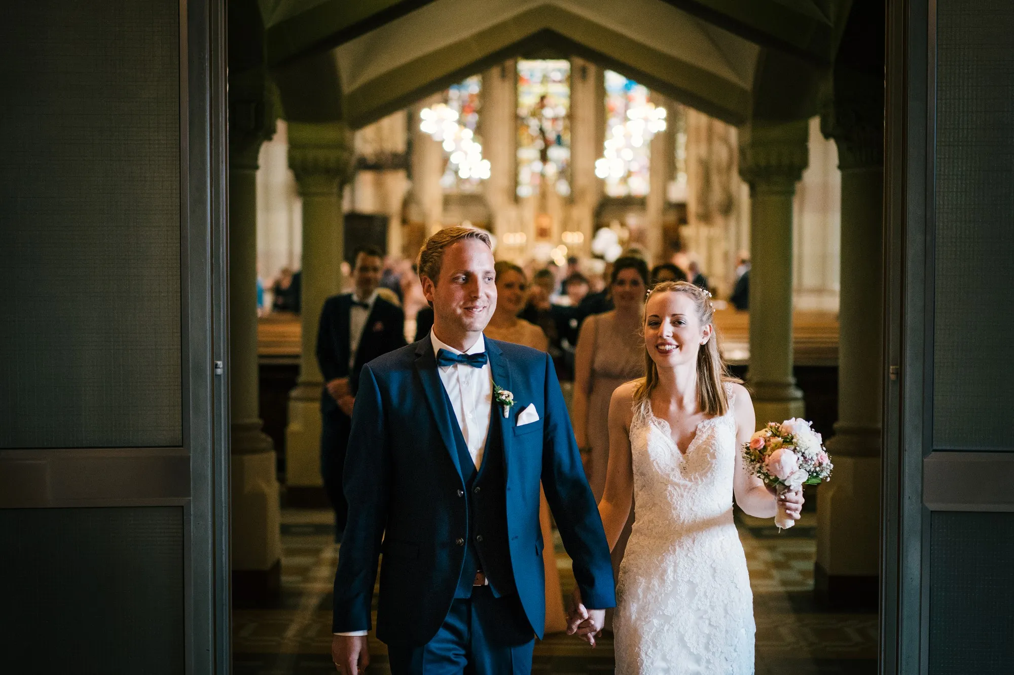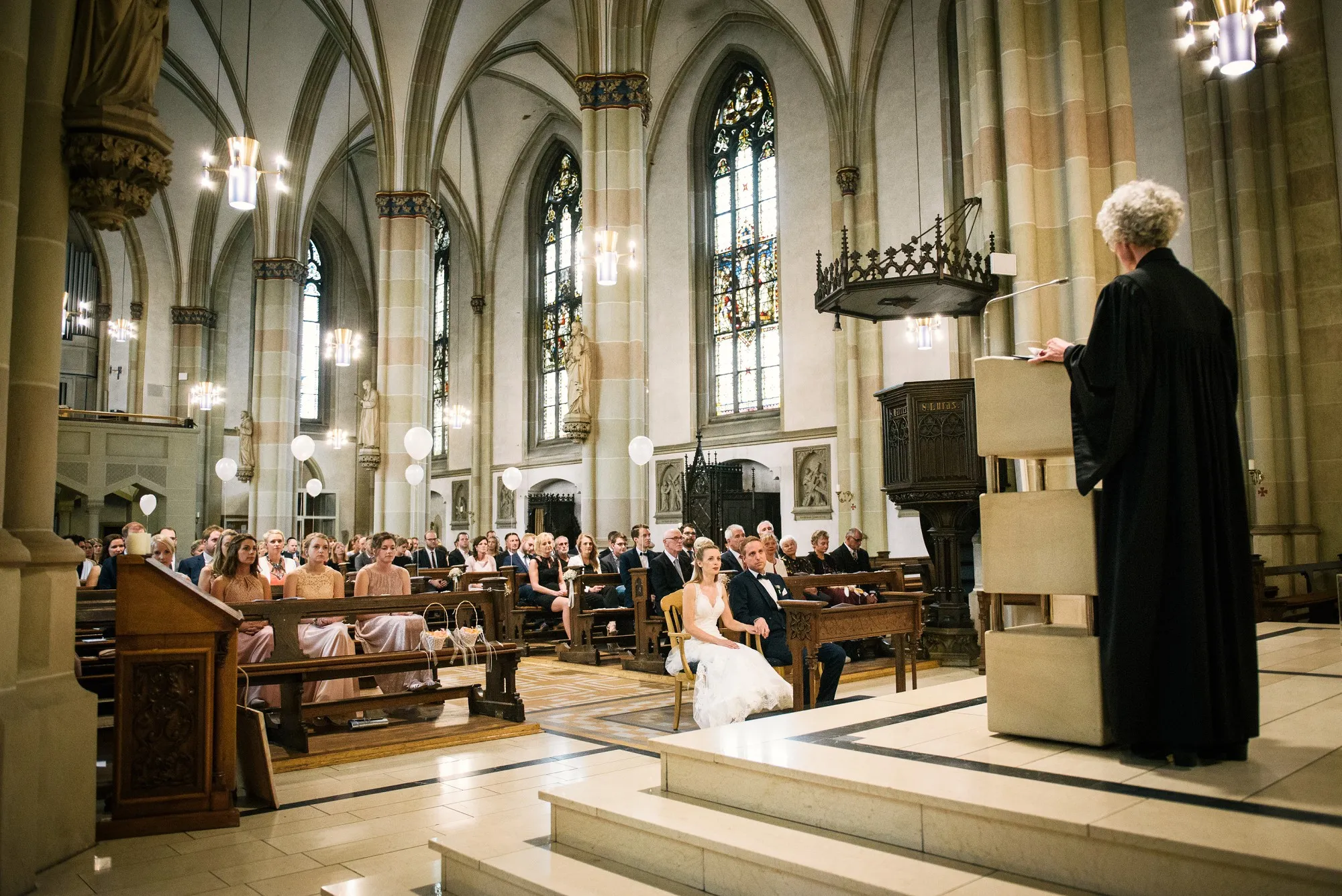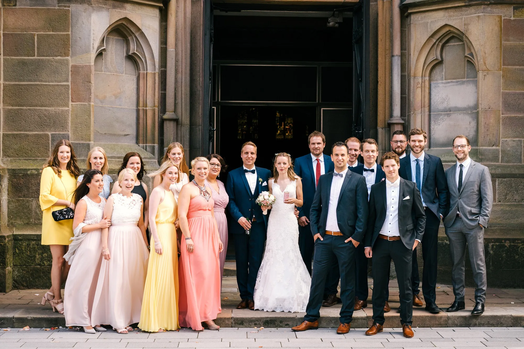 Die Trauung war in der St. Lamberti Kirche in Ochtrup. Da gibt es dieses eine Bild kurz nach der Trauung. Er schaut den Pastor an und fragt: Darf ich sie jetzt küssen? Und dreht sich zu seiner Braut. Beide Pastöre lachen und wissen erst nicht so richtig zu antworten. Aber dann: Das müsst ihr entscheiden. Alle lachen noch herzlicher und es kommt der Hochzeitskuss. Wunderbar. Ich werde da immer dran denken, wenn ich das Bild sehe.