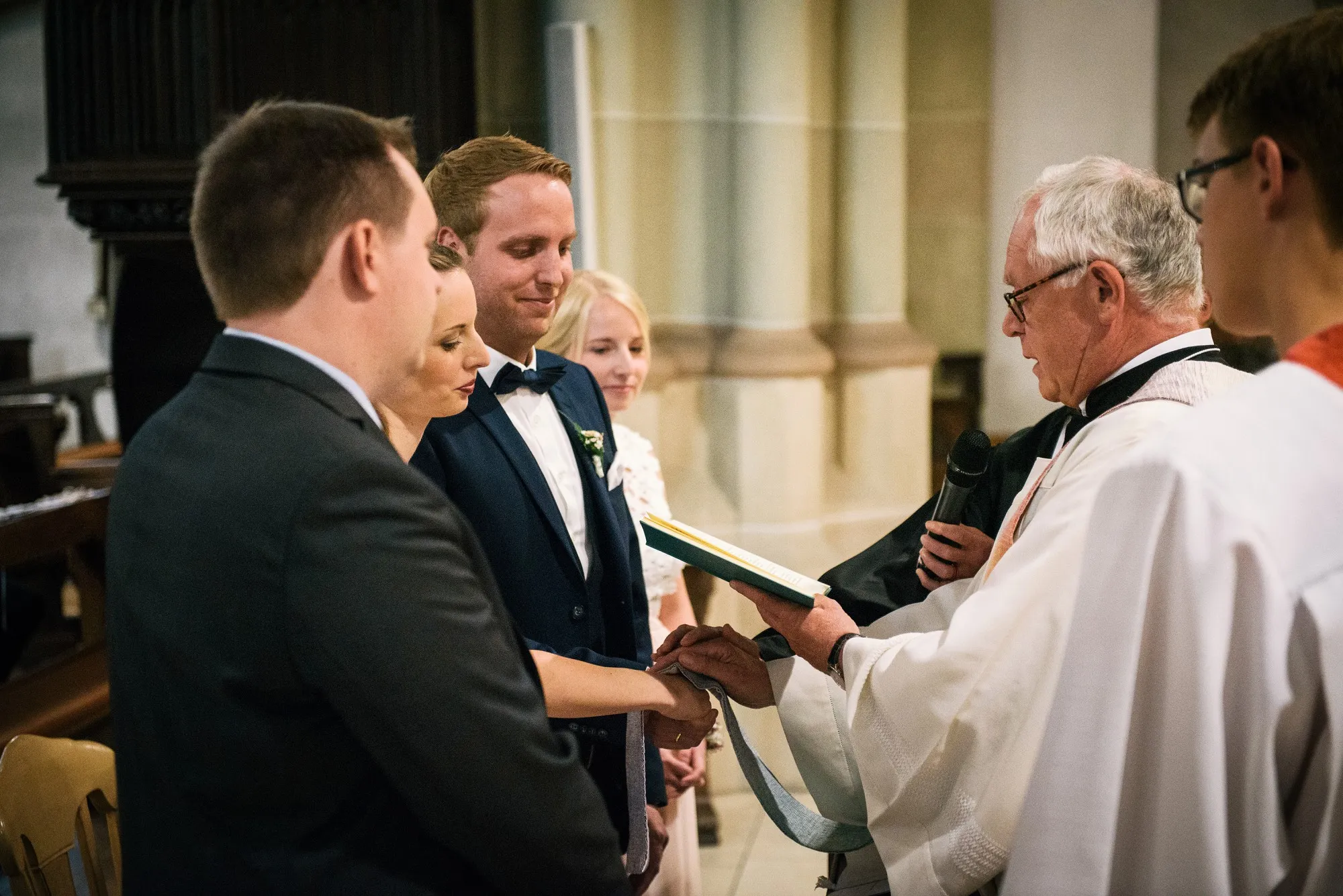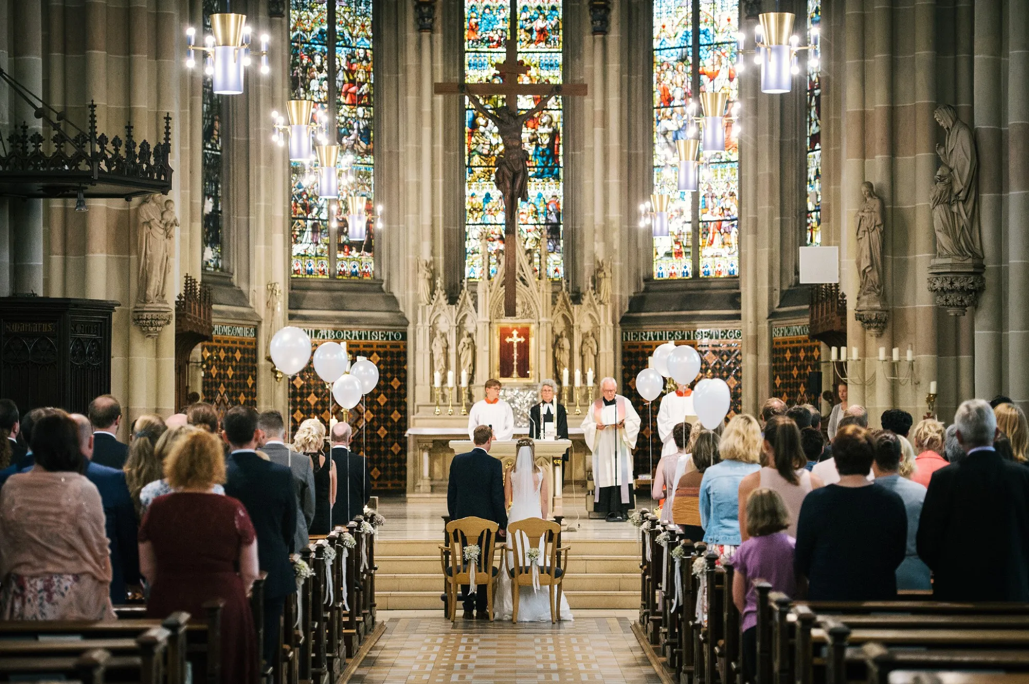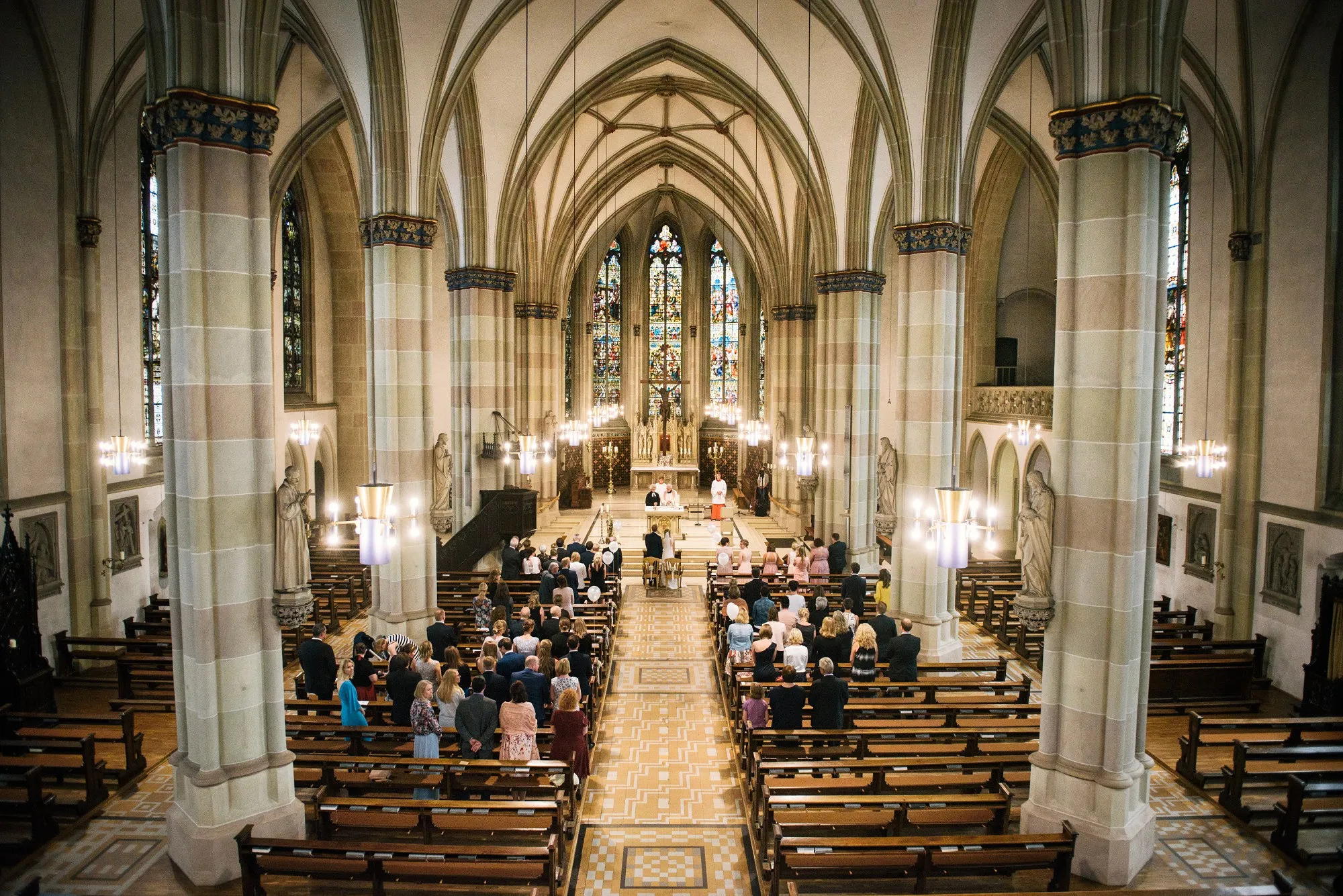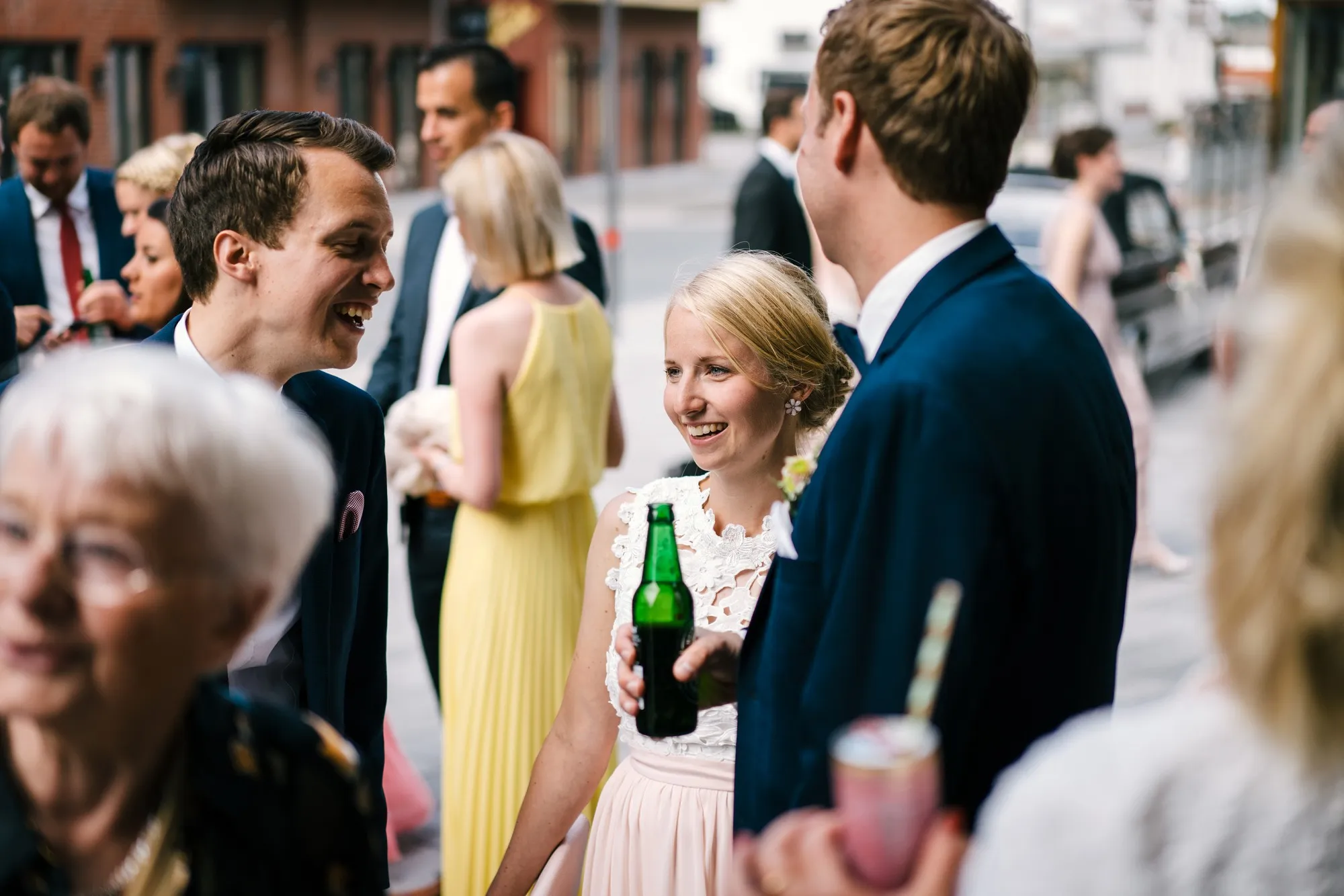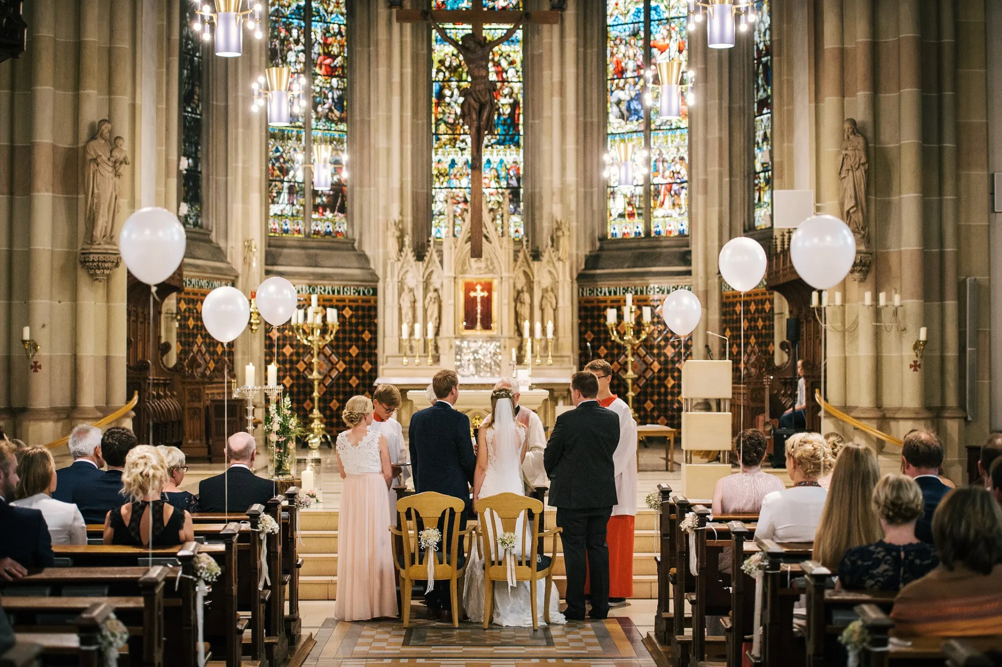 Die Trauung war in der St. Lamberti Kirche in Ochtrup. Da gibt es dieses eine Bild kurz nach der Trauung. Er schaut den Pastor an und fragt: Darf ich sie jetzt küssen? Und dreht sich zu seiner Braut. Beide Pastöre lachen und wissen erst nicht so richtig zu antworten. Aber dann: Das müsst ihr entscheiden. Alle lachen noch herzlicher und es kommt der Hochzeitskuss. Wunderbar. Ich werde da immer dran denken, wenn ich das Bild sehe.