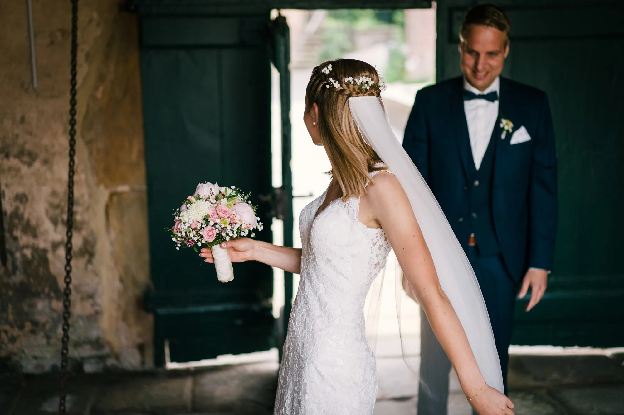 Das Brautpaar hat sich zum ersten Sehen an ihrem Hochzeitstag am Haus Welbergen verabredet. Wunderbare Bilder mit ganz viel echten Emotionen entstanden. Haus Welbergen ist eine Wasserburg am Rande von Ochtrup. Auch hier können sich Brautpaare das JA Wort geben. Ein Erholung bringender Ort ganz nah in meiner Nachbarschaft. Weitere Infos: VWO Ochtrup und wenn ihr auf Haus Welbergen heiraten möchtet: Standesamt Ochtrup.