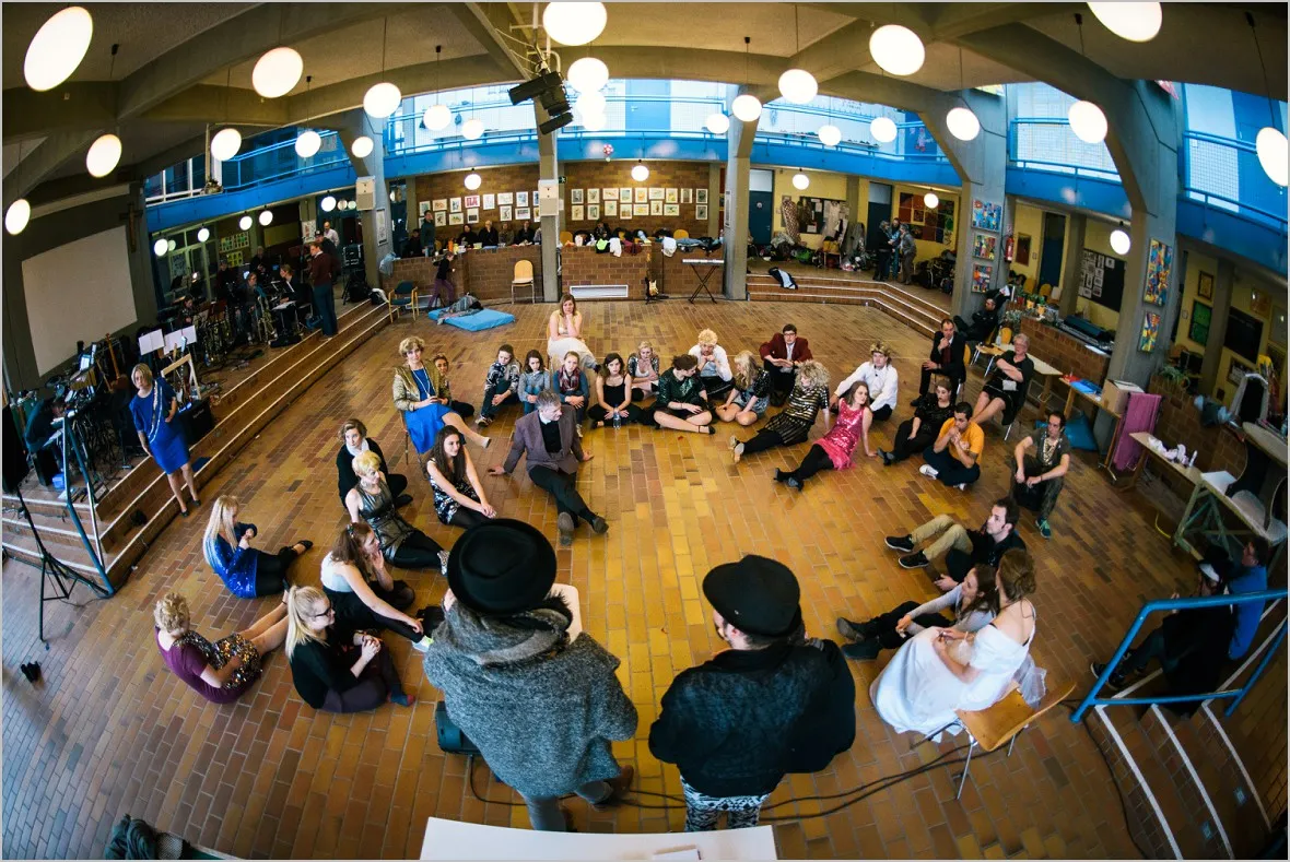 Hier schon mal ein paar Bilder aus der Probe in der Schule: